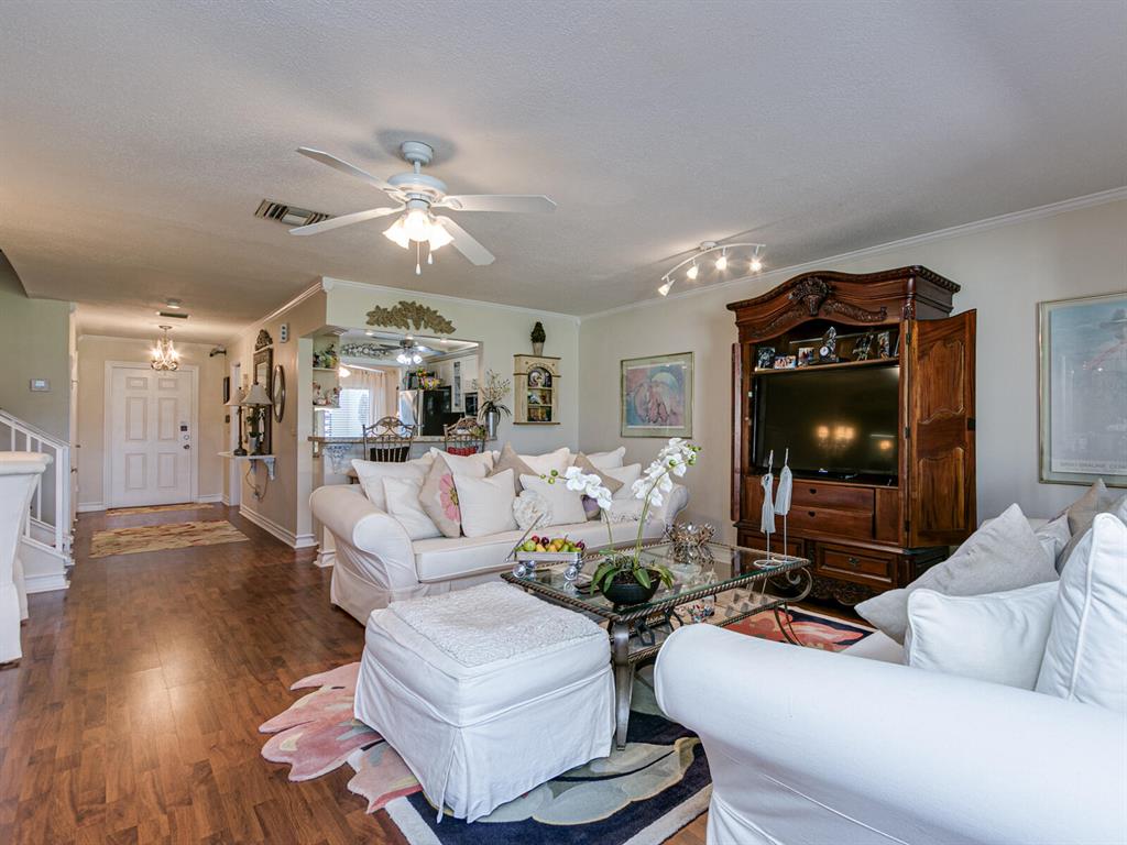 look no further than this magnificently remodeled townhome with 2 beds plus den (downstairs) and 3 full baths . (one downstairs)Enjoy beautiful lake view from your glass enclosed patio. Open concept kitchen with granite countertops and seemless backsplash. Patio has been leveled out, so no step down. Air conditioner has been updated as well as the HWH. Total square footage with the living space is approx 1850 sq st. Crown molding..wet bar laminate flooring ( no carpet)in the living area are just some of the many features in this townhouse. Don't miss it.