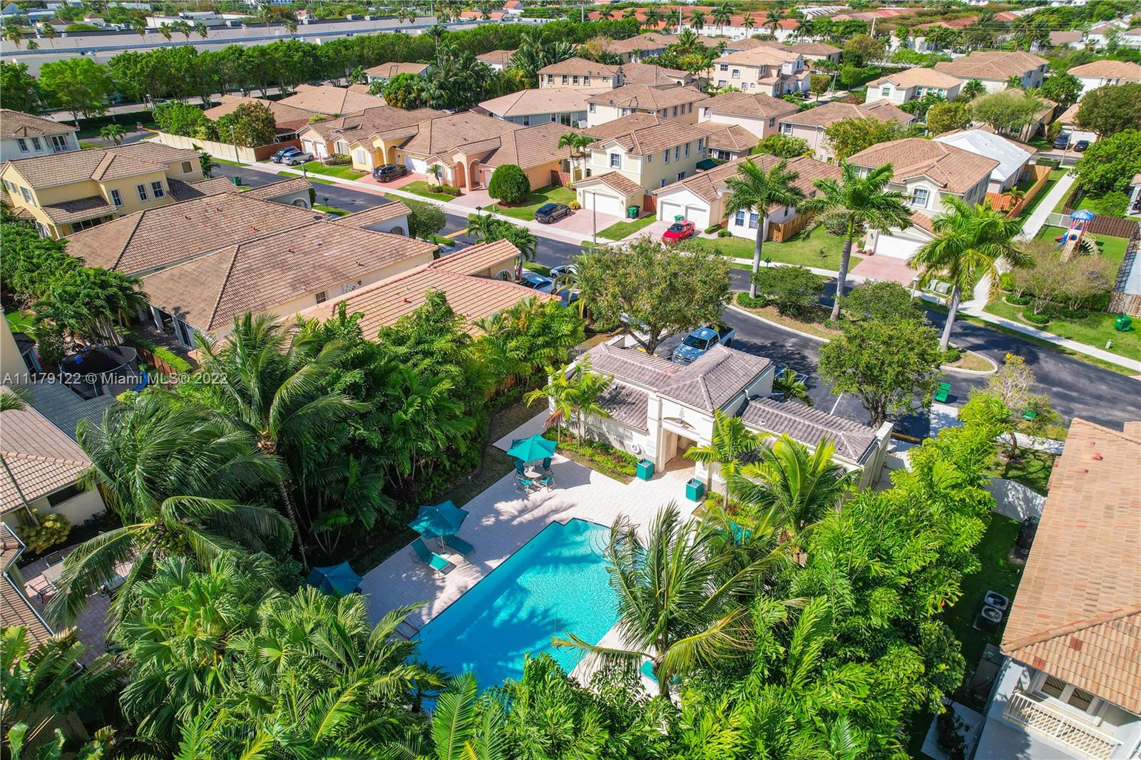 DEN/OFFICE 12FTX10FTX8FT EASY TO CONVERT TO A 4TH BEDROOM. Doral at it's best. Rarely available 2 story single family home located in exclusive gated Goldvue Estates. Property features Volume ceilings throughout living areas and kitchen. Master bedroom boasts spacious built in closets, with Roman tub, double vanities. Laundry room with cabinets & lots of storage space, two car Garage with Tesla car charging outlet outside. Accordion shutters throughout. Tankless water heater. Top of the line washer & dryer. Backyard Patio faces golf course. Gate guard and 24hr security, community pool, kids' playground, walking distance to school, Publix, Walgreens and close to major highways.