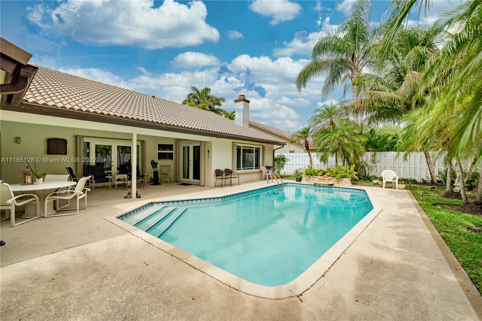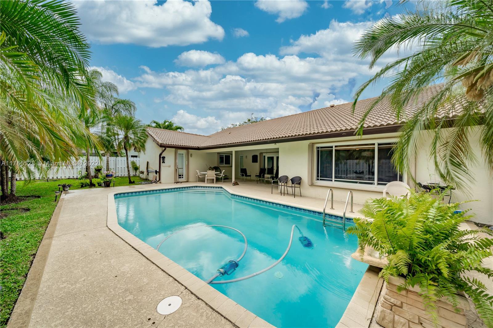SERENITY IN JACARANDA LAKES, ONCE HOME YOU WILL NOT WANT TO LEAVE! THIS WONDERFUL RESIDENCE IS GREAT FOR ENTERTAINING, IT HAS A BEAUTIFUL POOL AND PATIO AREA, JUST WAITING FOR A BARBEQUE PARTY. COMPLETE WITH VAULTED CEILINGS, TILE FLOORS, FIREPLACE, HURRICANE IMPACT WINDOWS AND SHUTTERS. THE LARGE 2 CAR GARAGE HAS PLENTY OF ROOM FOR STORAGE. THE MAIN BEDROOM HAS DUAL SINKS, A JACUZZI AND SPACE FOR A SEATING AREA. RELAX IN THE MANICURED GARDEN WITH MANGO, LEMON AND GUAVA TREES. THIS LOCATION HAS EASY ACCESS TO MAJOR ROADS, MALLS, AND SCHOOLS.