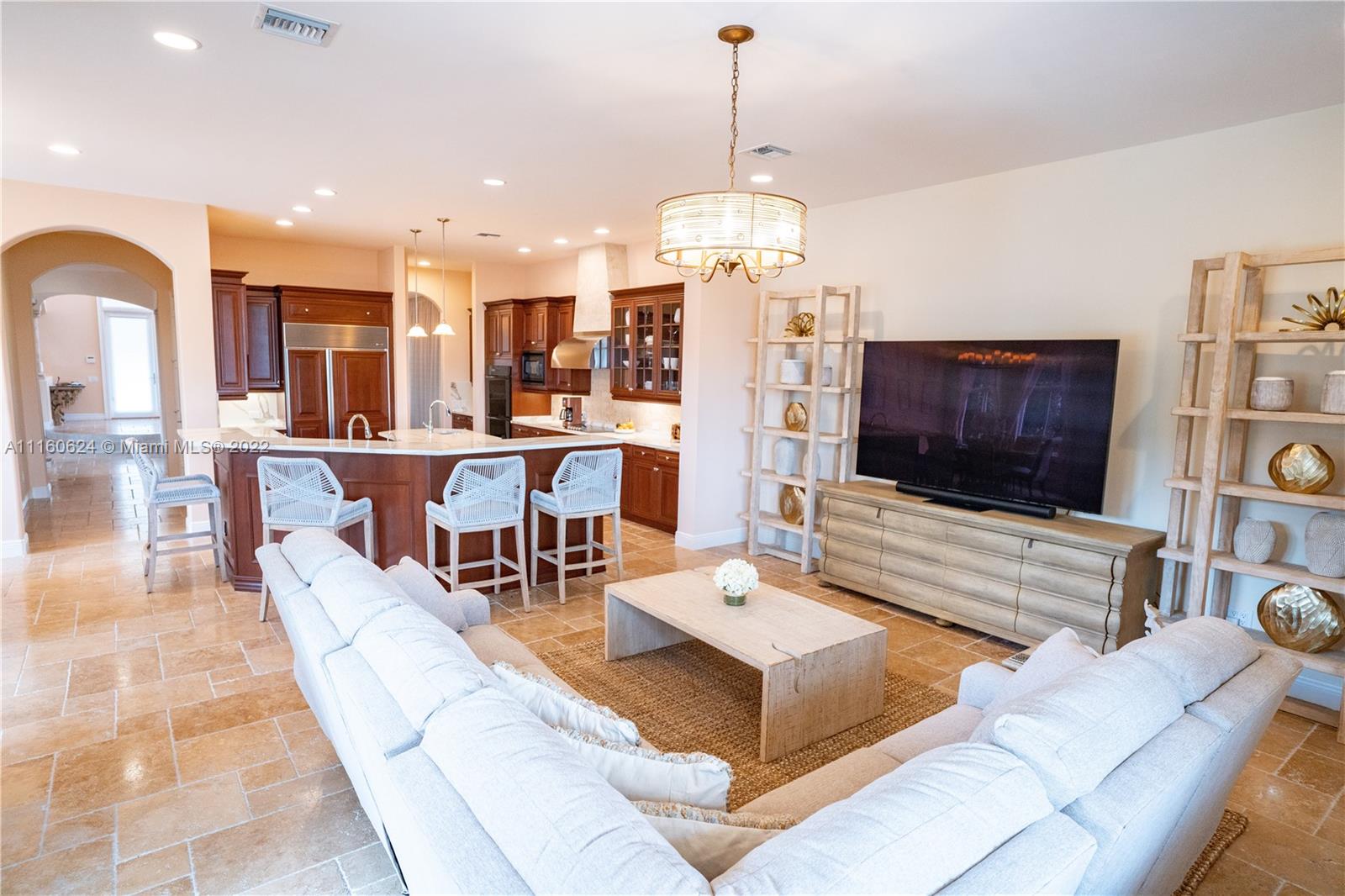 Pristine private estate located within the gated community of Harbor Pointe. This two-story home features 7000+ plus square feet of indoor/outdoor living area. Impact windows throughout, 28 foot ceilings upon entry, remodeled gourmet kitchen with quartz countertops and high end appliances. Den with wet bar. Primary bedroom features his/hers bathrooms and walk in closets in addition to a large office/sitting area. Three car garage. New AC units throughout. Outdoor space features a large covered sitting area with a built-in barbecue and wet bar. New pool heater. Community offers tennis, large gym, pool, lakes and parks. 24 hour security. Perfect home for a boater that wants to utilize marina located within this gated community.