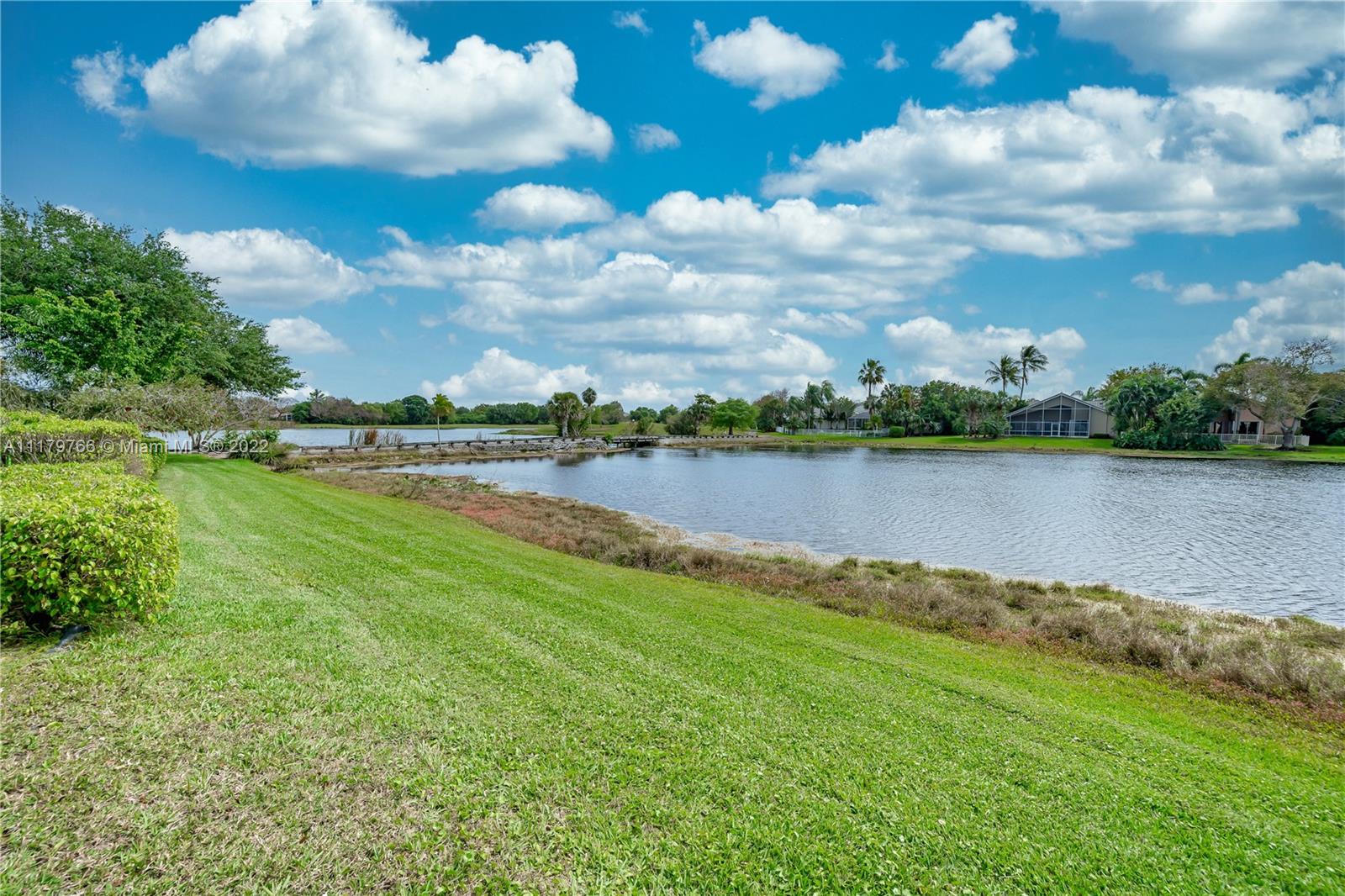 A remarkable piece of property in a very well sought, desirable area of Grand Palms and Country Club. Magnificent 2/2 home with exquisite views of the lake & the pool area. The house features: beautiful wood kitchen cabinets & granite countertops, stainless steel appliances, window hurricane shutters. All tiled bathrooms. Tranquil patio surrounded by lush plants could be turned into a great reading or meditation spot. Enjoy some of the amenities the community has to offer. Conveniently located, close to major highways, shopping and dining areas. HOA covers: lawn maintenance, roof and sidewalks pressure cleaning, house painting, basic cable, ADT home security, gate and neighborhood security. Original roof, carpeted bedroom floors.