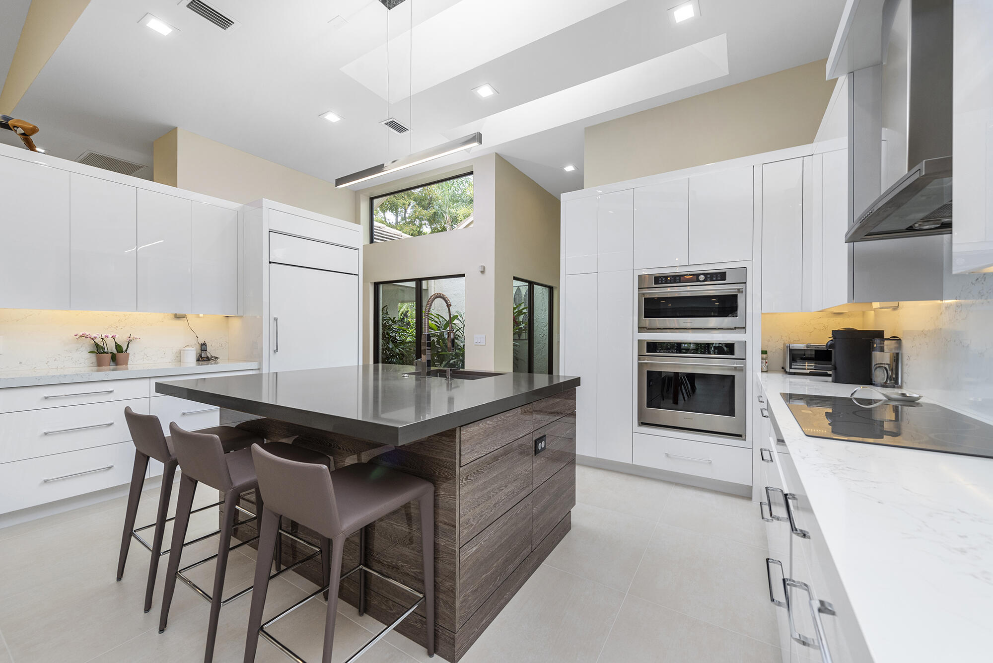 Presenting the Boca West residence that exudes contemporary elegance. The stellar interior of this renovated and professionally designed 3 bedroom 2.5 bathroom home will impress even the most discerning eye. Outstanding features: impact windows throughout, brand new high-end appliances and light fixtures, a well-lit interior, high ceilings and skylights, built-in closets, 2 car garage, lush landscaping, portable generator, luxury-brand furnishings, an enlarged driveway and walkway, an elegant travertine patio, open-concept kitchen and a reconstructed additional living room. Situated on a beautiful corner lot, the private backyard offers stellar views overlooking the serene lake.This is the perfect move-in ready home in Boca West. Call today before this exquisite home is sold.