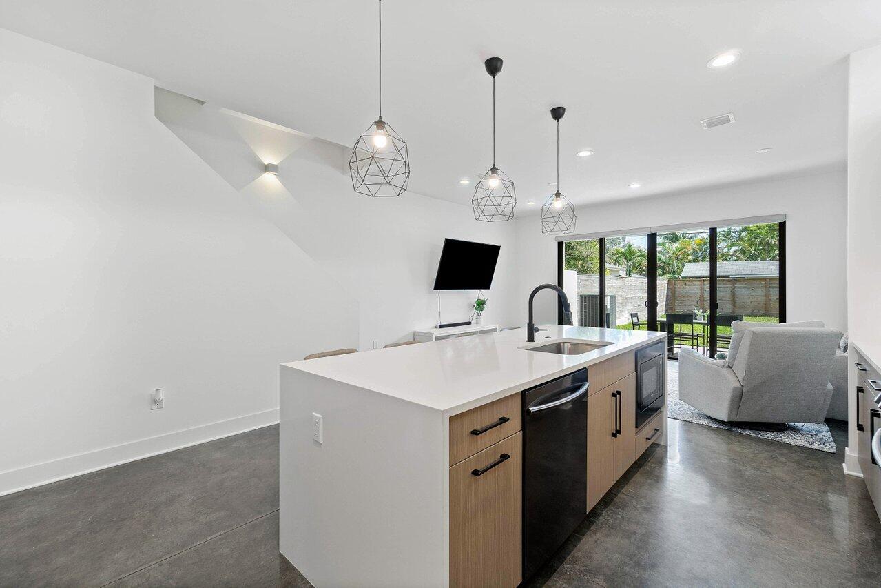 Welcome to this modern contemporary townhome completed in 2019 in Fort Lauderdale's sought out neighborhood, Lake Ridge. This private 3 bed and 3 full bath townhome offers just under 2,000 sq ft under air with an open concept and concrete polished floors throughout the first floor living space. The living room leads right out to your oversized backyard which can easily accommodate a swimming pool. There is also full impact glass windows and doors as well as electric blinds and is wired for smart home automation. The 2nd floor has 3 bedrooms and 2 full bathrooms along with a nice size laundry room. The master bedroom has a LARGE walk-in closet and a balcony overlooking the backyard.