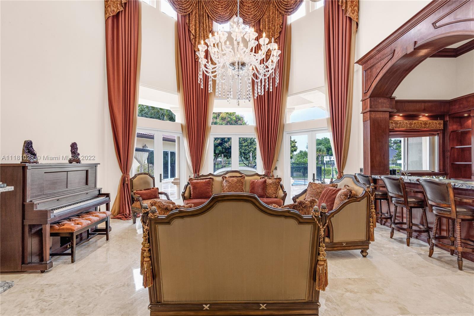 Best Price in Windmill Ranch! Spectacular custom estate in a prestigious gated community, home sits on an exquisite lake front 1 acre lot on a private cut-the-sac lot, with 10+ parking spaces, marble floors, volume ceilings, luxury chandeliers, costume made high end drapes, fireplace with lights, crown molding, Kitchen, bar and bathrooms features stunning imported Quartz countertops, custom made library with mahogany wood and security door, main entrance includes a semiprecious gold medallion valued $15k +, each bedroom has private bathroom, master bedroom includes two closets, private room for exercise or baby room, his and hers bathroom including two toilets, entire house contains LED lights and impact windows, salt water pool and more!