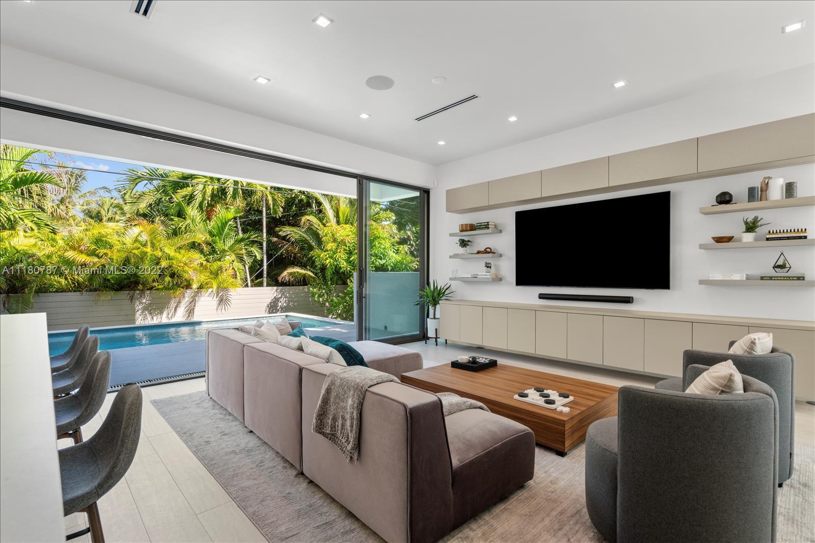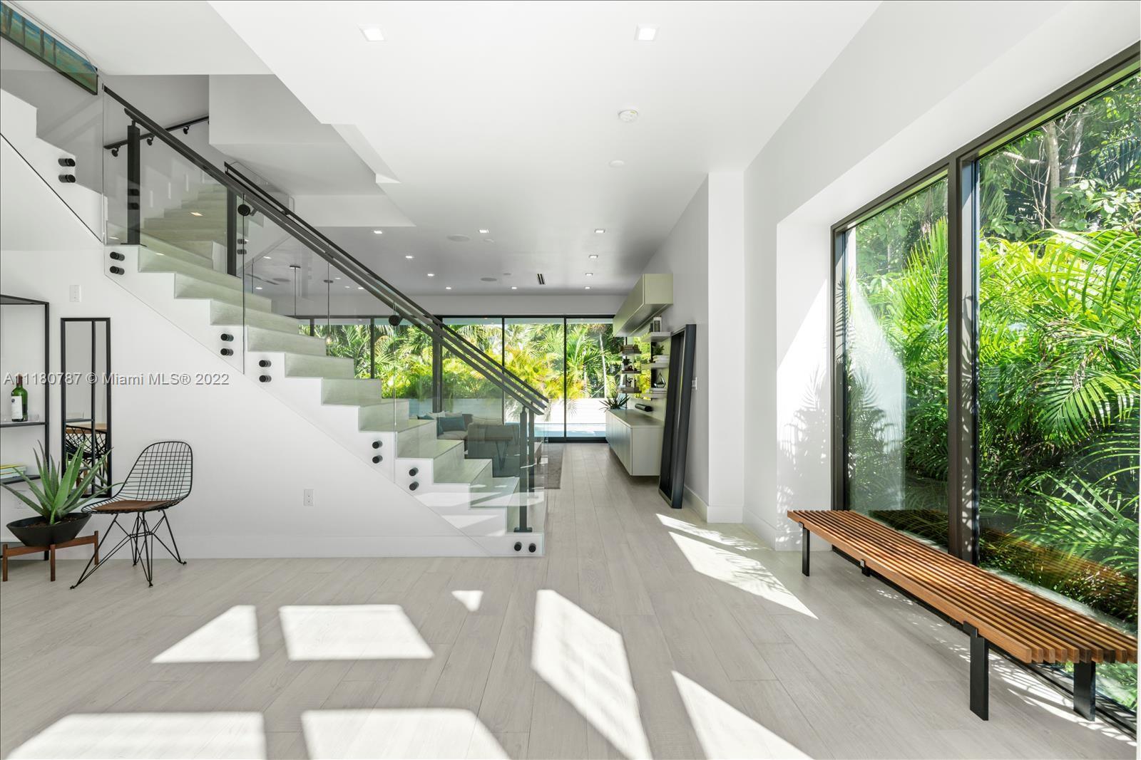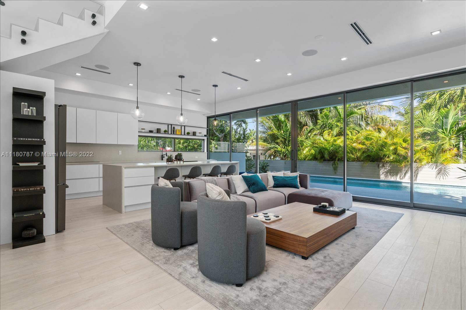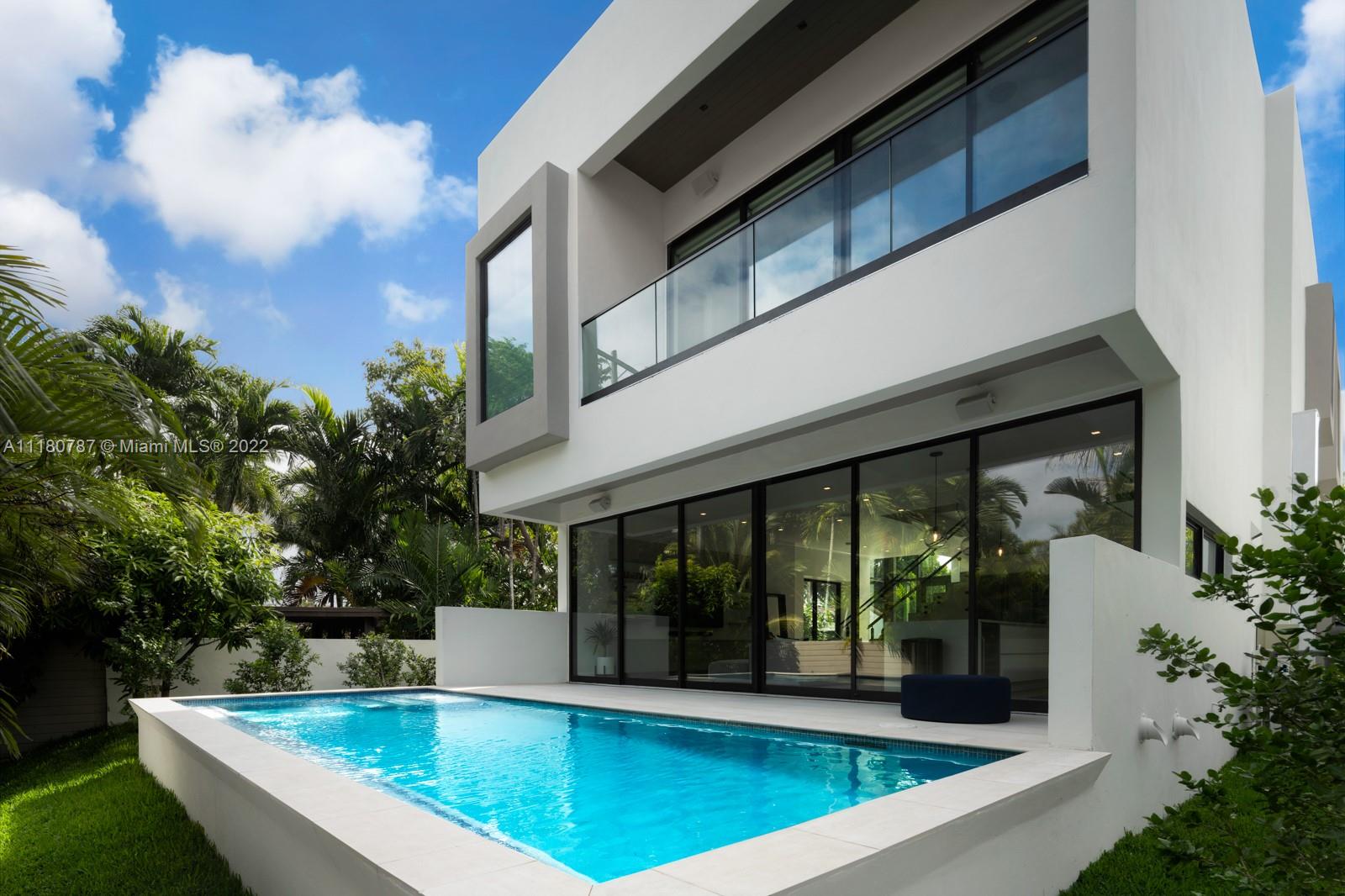 NEWLY COMPLETED 2022 Miami Beach masterpiece nestled on prestigious Bay Dr. No expenses spared, with 5 beds & 5.5 baths of seamless living, spread across 2 stories. Loaded w/energy efficient & sustainable features such as high elevation, double-pane impact windows, high-efficiency AC, LED lighting, induction cooktop & more. Great for car aficionados, the 11' height garage can accommodate lifts to park 4 cars. This fully automated smart home has state of the art security, technology & finishes including: Sonos indoor-outdoor entertainment, security & surveillance, Bosch appliances, Italian doors & kitchen by Nobilia. An entertainer's dream home with infinity pool on ground level & expansive terrace on 2nd level. Fully furnished allowing for turnkey experience, just bring your toothbrush!