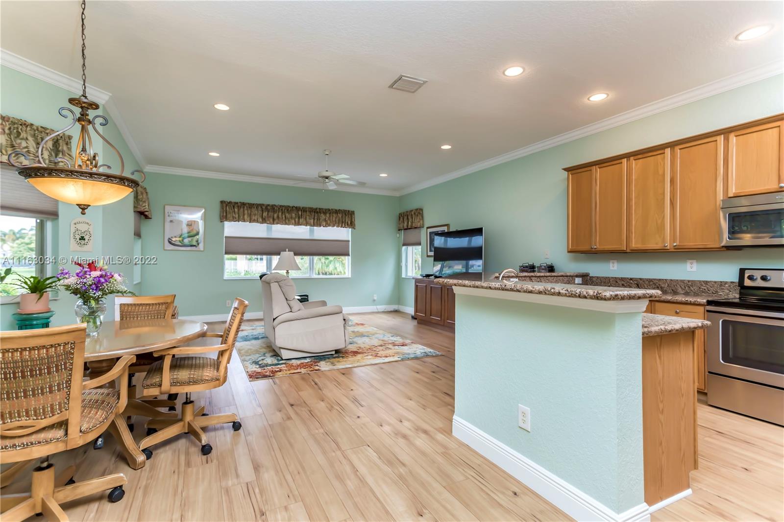 Single-story home in desired community of Isles at Weston. Pride in ownership shows w/ beautifully landscaped yard. Enter into this freshly painted home with its warm neutral tones, high-hat lighting, crown molding & all new base boards. All new beautiful vinyl wood floors. Master bedroom features his and her closets as well as sliding doors that lead to the patio. Master bathroom completely remodeled w/ quartz countertops, an aroma therapy step-in tub w/ bubble jets. Large kitchen and family room perfect for entertaining. French doors in formal Livingroom also lead to the patio. Relax out in your extended patio which is screened in w/ 2 ceiling fans. Amazing views of the lake & garden. Very peaceful & private. HOA includes Internet basic TV, hotwire, clubhouse, gym & pool.