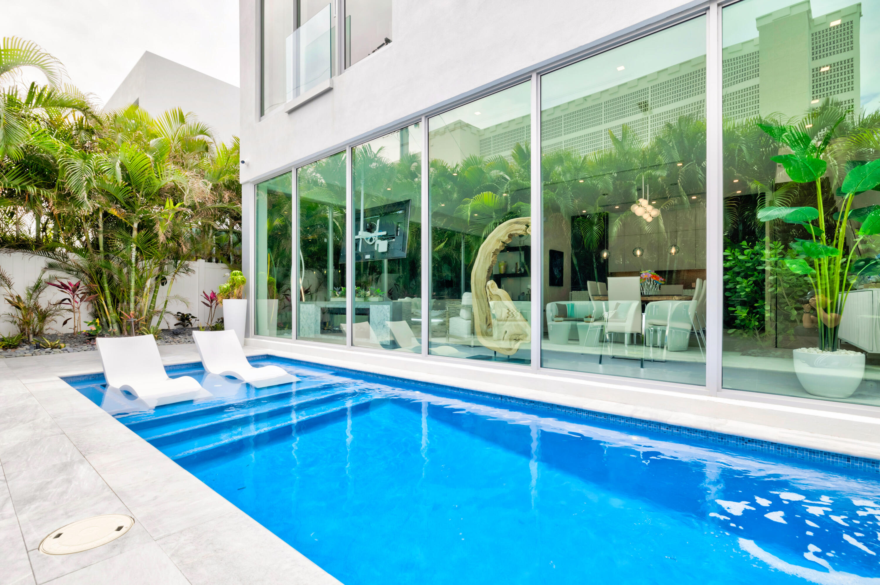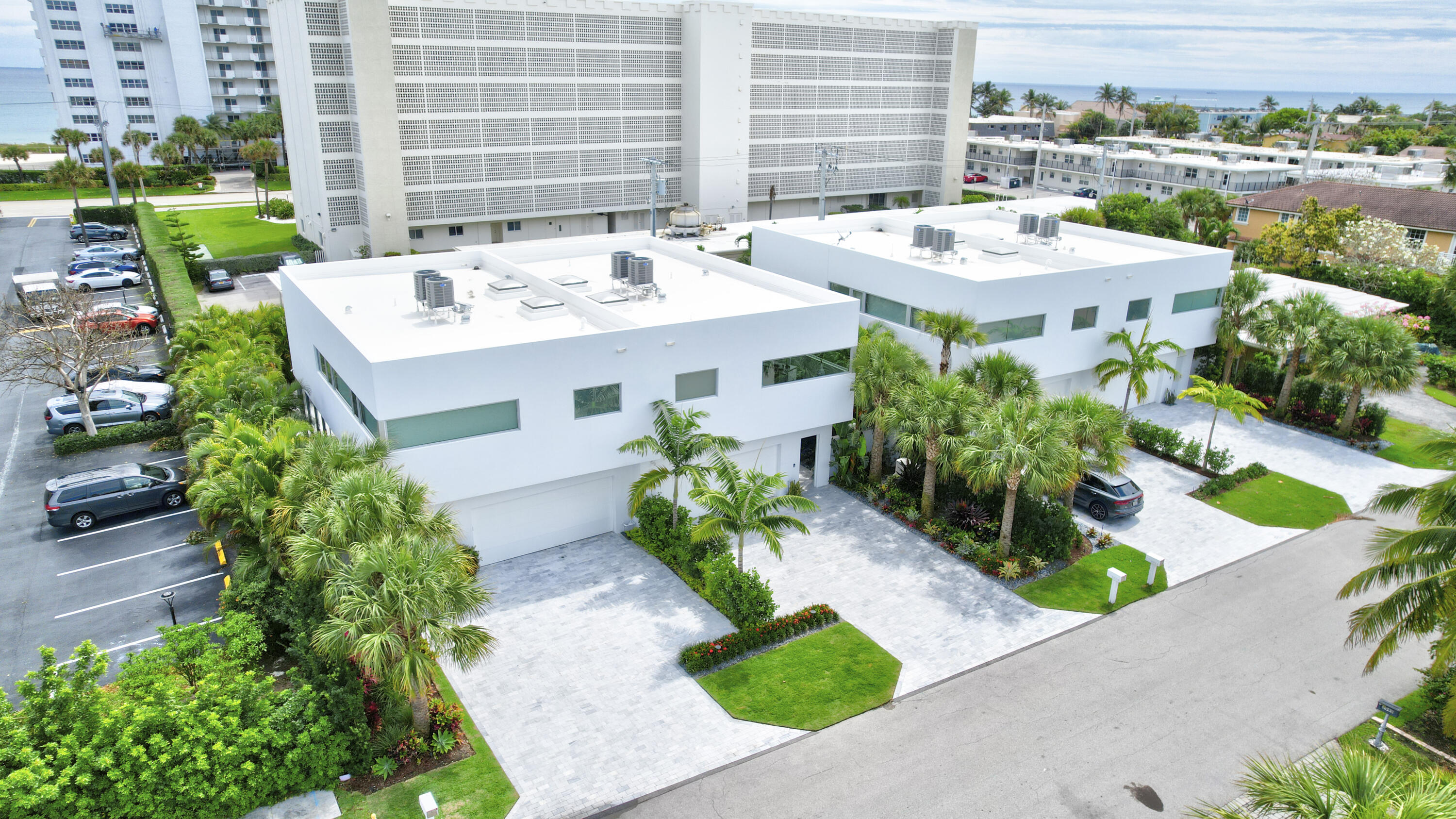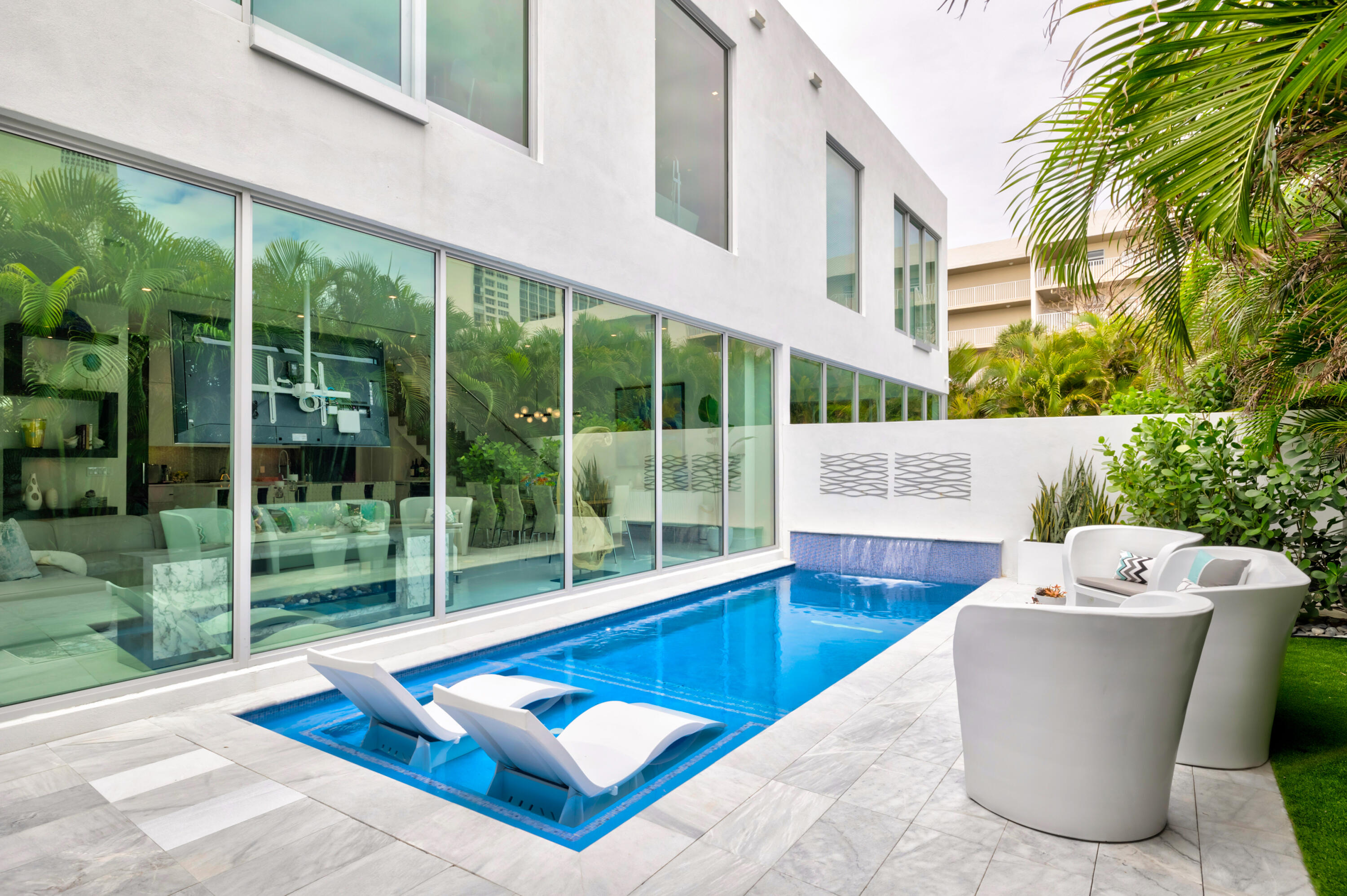Absolutely Stunning Modern Beachside Townhouse with an Open Floorplan and Floor to Ceiling Windows offering an abundance of natural light and views of your private pool, loggia and lush landscaping...all giving the feel of bringing the outside in, Features include a Gorgeous Kitchen with Sub Zero appliances, Natural Gas Cooktop, Walk-in Pantry and custom wood soft close cabinetry. All of the Bedrooms are En Suite and oversized, the master has 2 large built out closets and a spa like master bath-both with ocean views. The loggia features a great stone covered BBQ area and pool with a waterfall. The 2 car garage has custom built in cabinetry and there is a gas generator. All of this and a block to the beach and a short stroll to the fun restaurants, bars and shops of the Deerfield Curve.