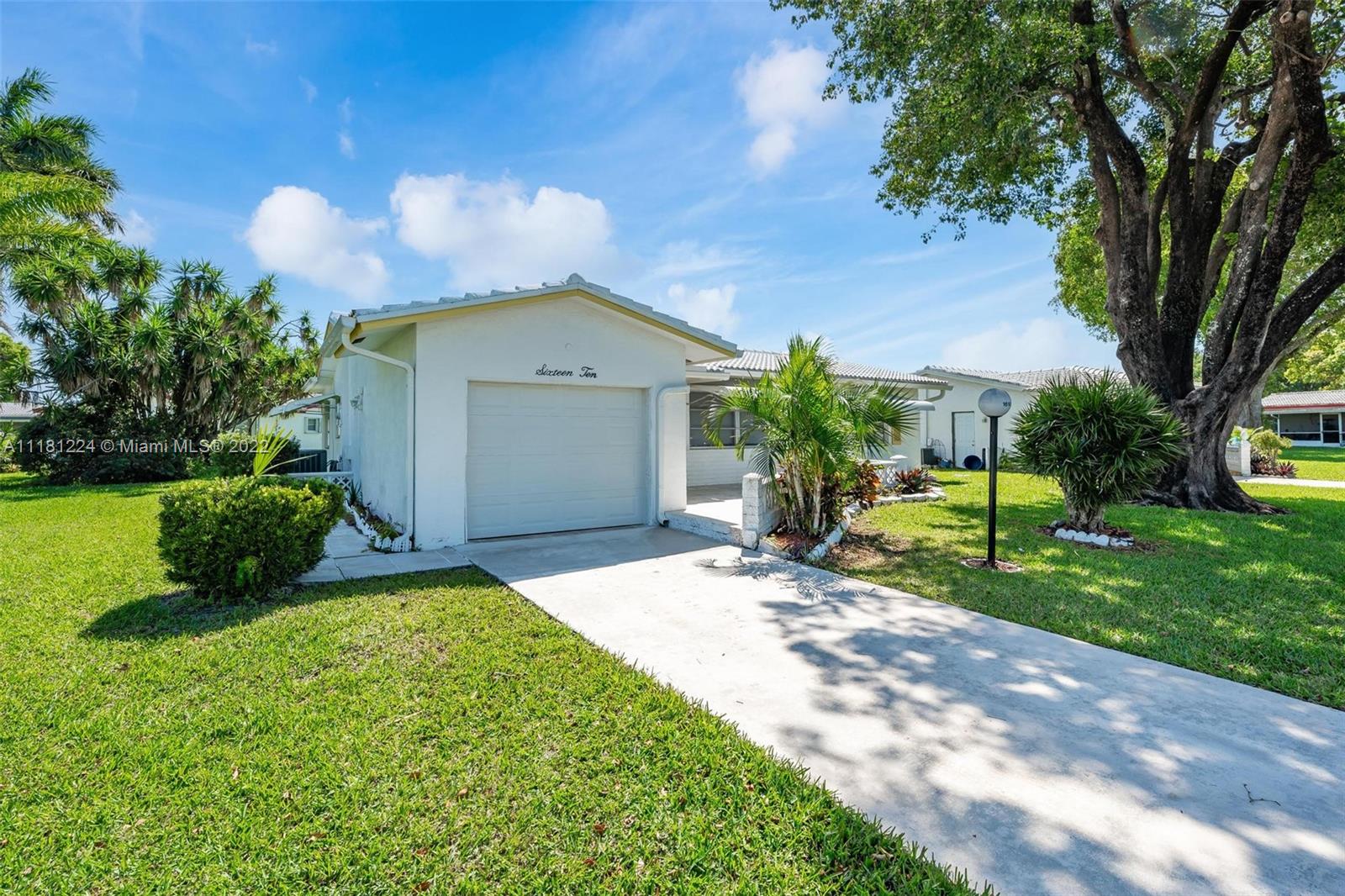 Stunning, turnkey two-bedroom two bath garage home waiting for you! Featuring an open spacious floor plan with 100% waterproof luxury plank flooring throughout the house. Beautiful kitchen with quartz countertops and Carrara Marble accents. New stainless-steel appliances and solid wood cabinets with soft close hardware! Master bedroom features a walk-in closet and luxury tile shower. LED light fixtures throughout, freshly painted interior, washer and dryer in garage. Highly efficient Trane AC unit, new roof in 2019, hurricane shutters on windows. Exterior to be painted in June. Quiet street with beautiful tree for shade and curb appeal. Maintenace includes roof, lawn maintenance, pest control, wifi, cable.55+ community with clubhouse, pools, tennis courts, shuttle, fitness center & more.