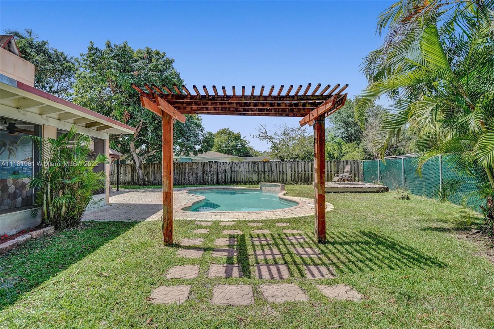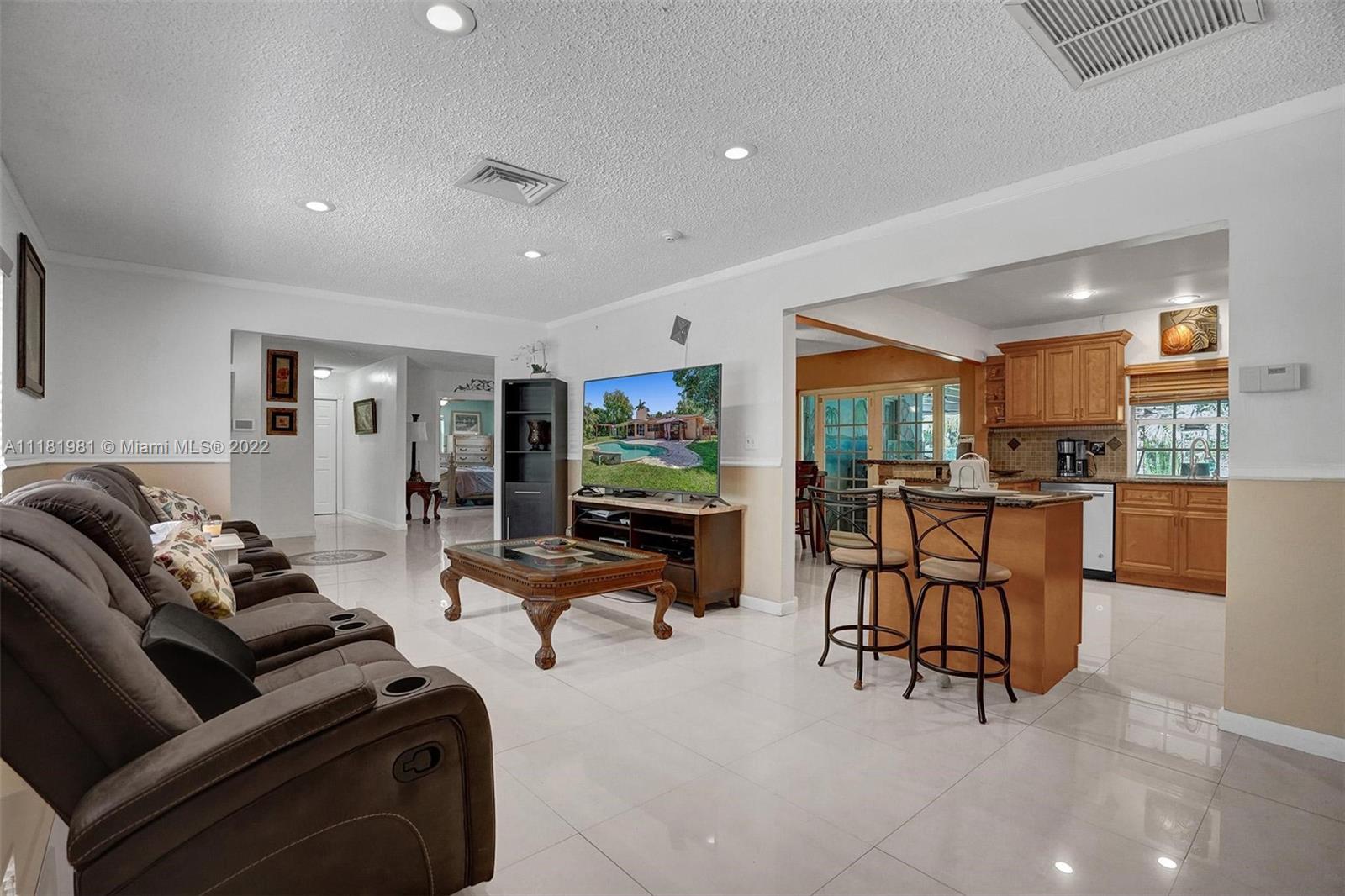 Beautiful Pool Home 3be 2ba plus Garage Converted in in-law suite with private bathroom in the desired Plantation Gardens, nestled in a huge lot (over 16,000 sf) with a nice pool and ton of space for entertainment, ample driveway and big porch with projector great for all your family gatherings, spacious and remodeled kitchen, porcelain tiles throughout, very good size bedrooms with large closets, lots of space and lot of natural light, energy-efficient HVAC system and appliances, NO HOA centrally located close to parks, restaurants, shopping center and main highways, this house is ready for a new owner. Definitely is a MUST SEE!