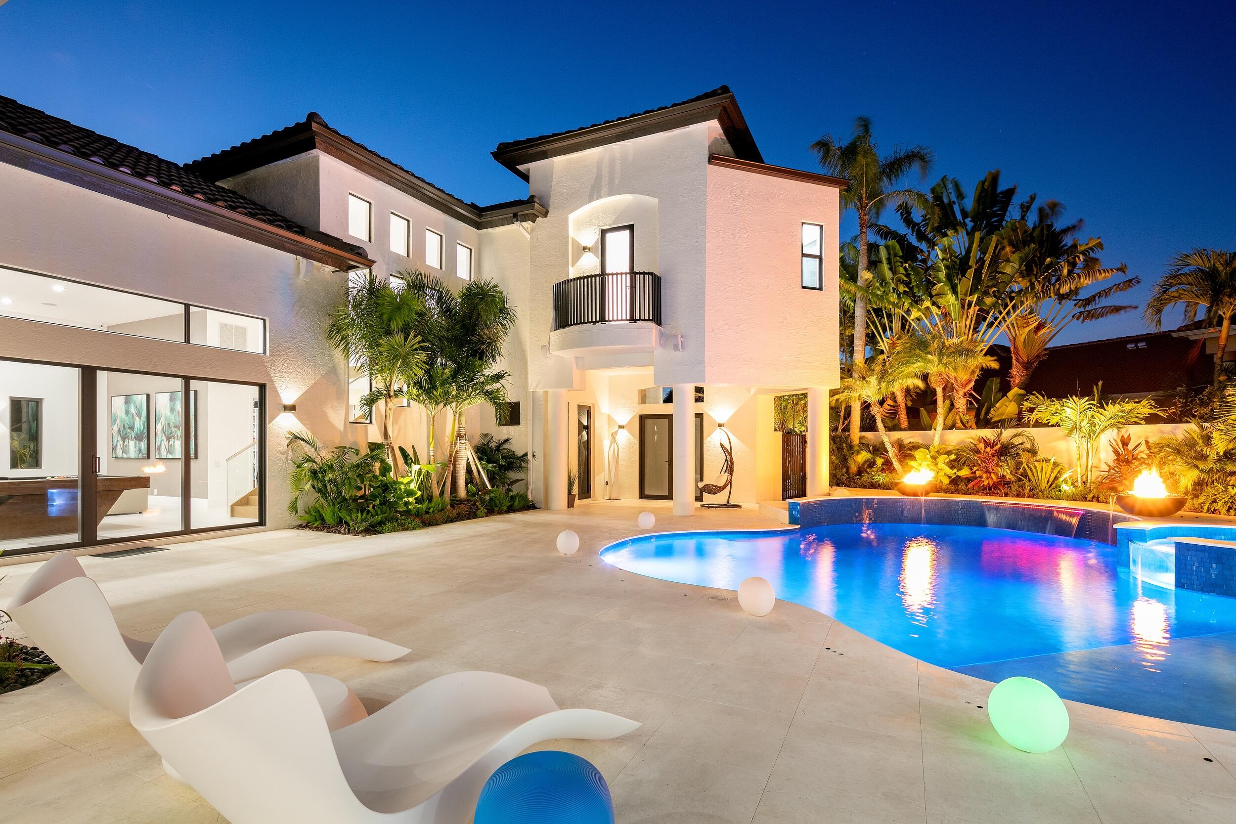 Spectacular one of a kind custom courtyard estate.Unique large Corner lot with double entry, golf course views, and a resort style tropical pool with fire bowls & spa.Soaring 14ft ceilings throughout with natural light from every direction.Top of the line European finishes, Italian kitchen & Miele appliances.5 en-suite bedrooms, 5,000 sq ft of living area & private guest house.Full Smart home technology, 40 built in speakers, impact windows & doors, fire pit seating area, gym, fully equipped summer kitchen.House completed 2022, Everything is brand new including roof.Professionally Designed & shows like a model house. Sold fully furnished.Excellent location with A+ schools, shops, restaurants, & walking distance to places of worship Boca Point is a non mandatory club