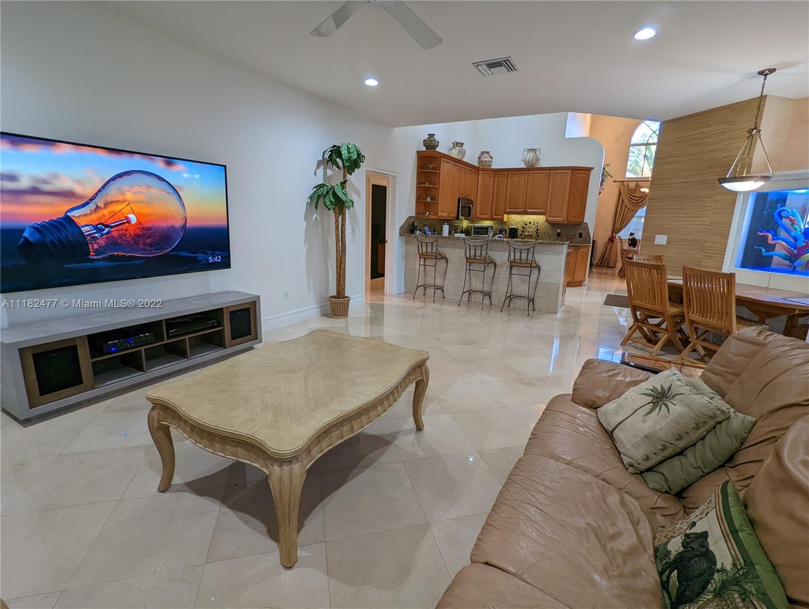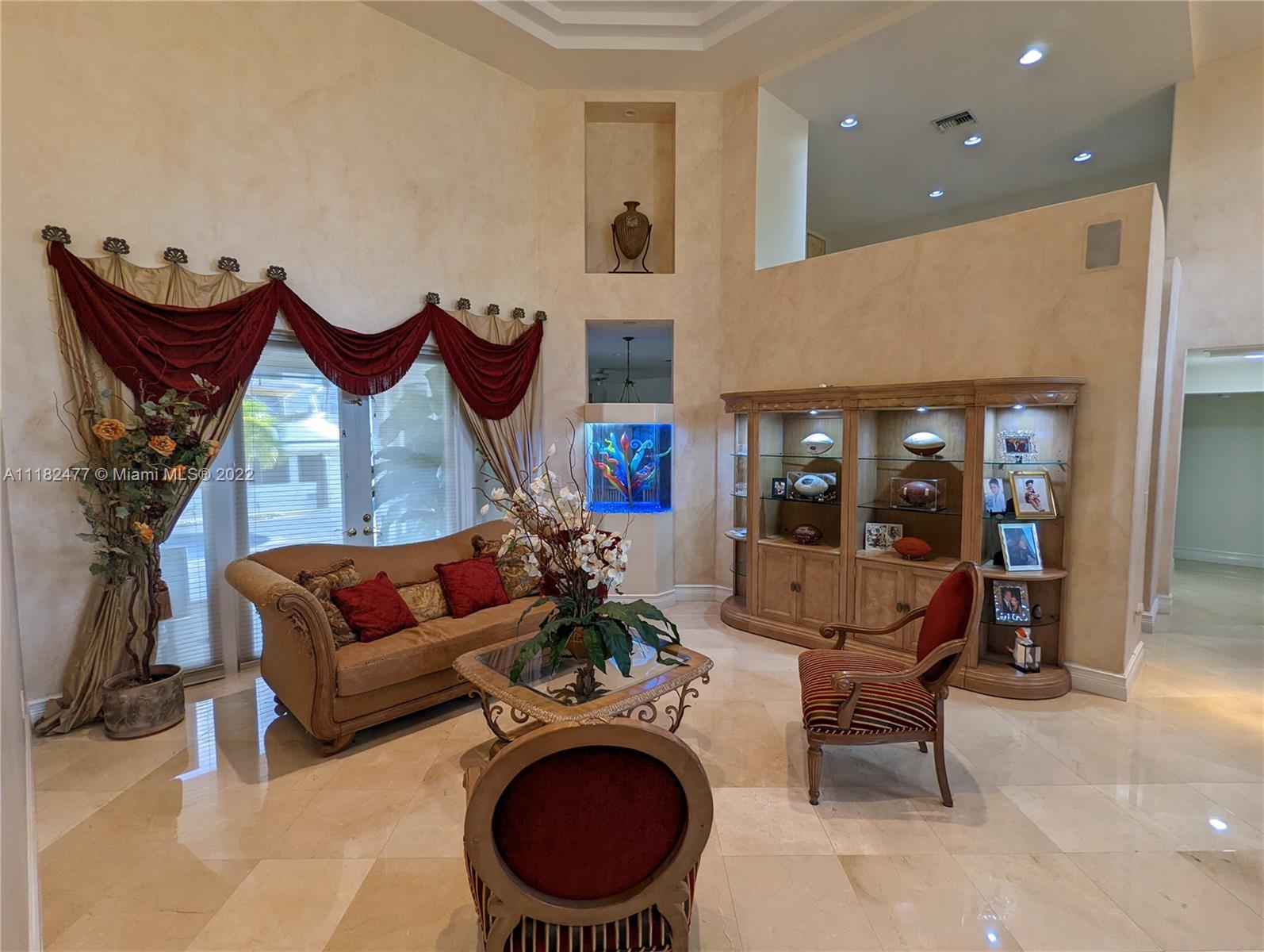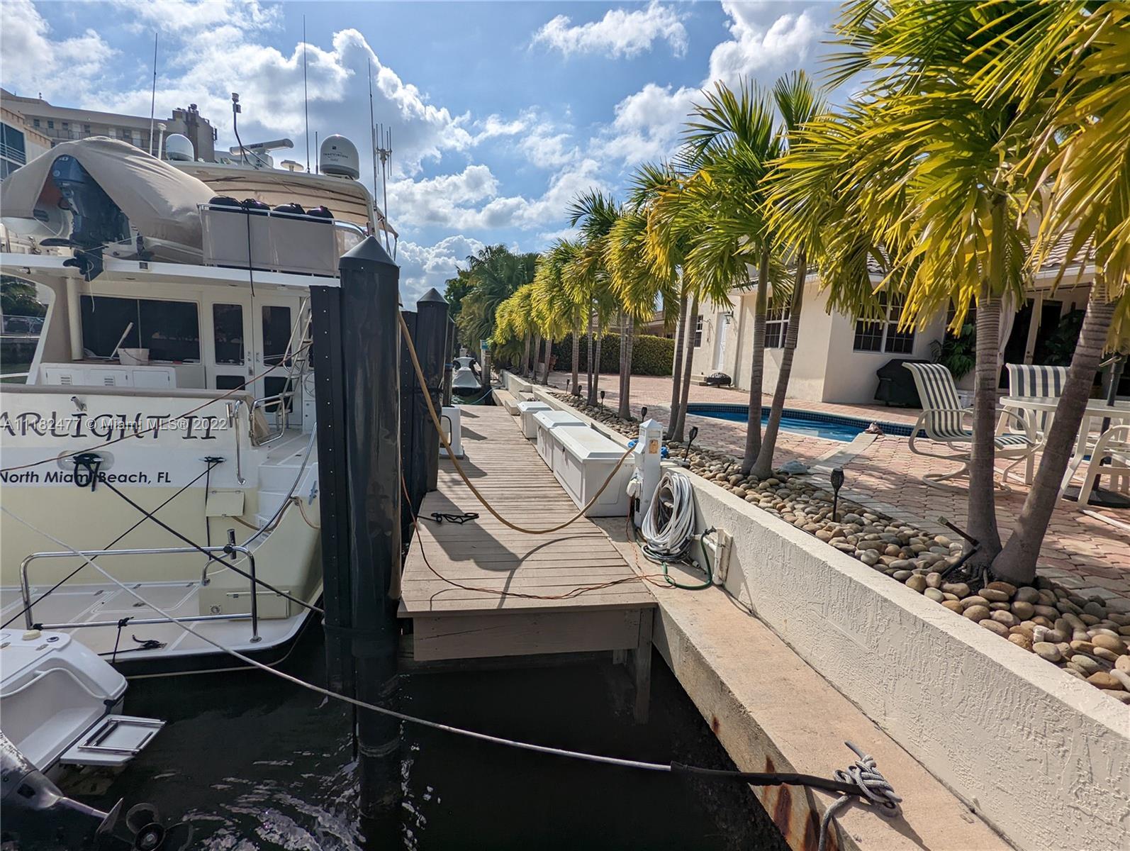 Beautiful 5/4, waterfront, ocean access home in guard-gated Eastern Shores. Dock for 80 foot yacht. Modern home with luxurious high ceilings, marble floors, granite counters, 100% hurricane impact windows, 4 AC zones, heated pool, spa, Google smart home & so much more. This house was built to modern hurricane standards with high strength roof system. The master suite is downstairs, with 2 more bedrooms downstairs and 2 more bedrooms upstairs. No fixed bridges to the ocean and this location is a very secure spot for your yacht. Includes a Waverunner elevator lift. This home is located at the private cul-de-sac at the end of 164th ST. There are only 128 homes inside this guard gate so it is a very private and secure home for your family.