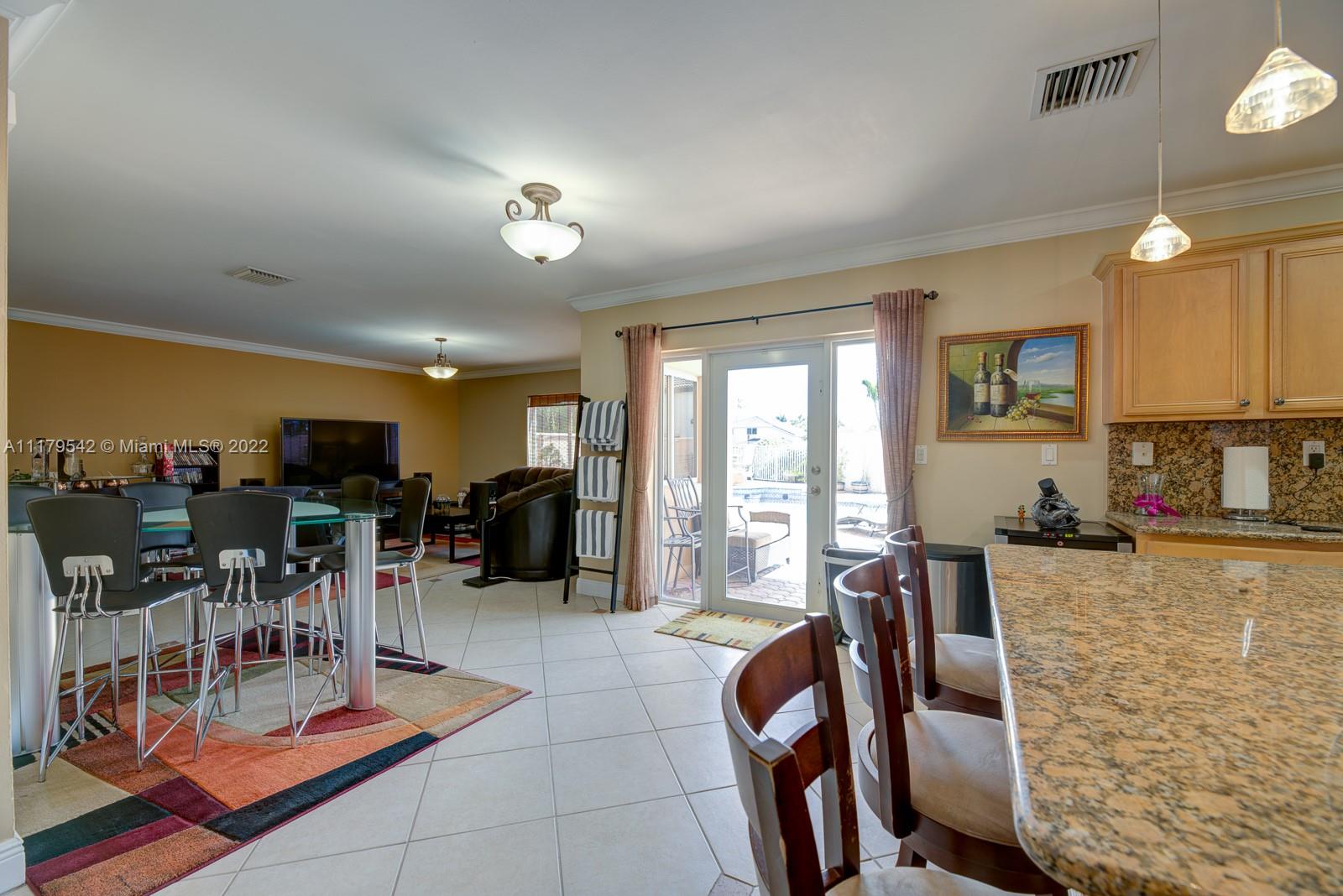 If you haven’t found your home in this current market, look no further. Situated in one of the sought-after communities in Doral, rarely available 5 bedroom/3.5 bath home in Doral Gardens does not disappoint. This two-story home boasts many upgrades — honey-colored wood kitchen cabinets and granite counters, newer appliances; multiple remodeled bathrooms. Ample-sized Master ensuite contains roman tub w/ whirlpool jets, separate roomy shower, his & her sinks; spacious closets. Tiled on first floor; real wood floors upstairs. 2-car garage has plenty of storage w/ custom cabinets. The most remarkable feature - back patio w/ inviting pool, lake view, and enormous custom grill. Generous in size, tranquil, close proximity to all local necessities and desires; this find exceeds expectations.