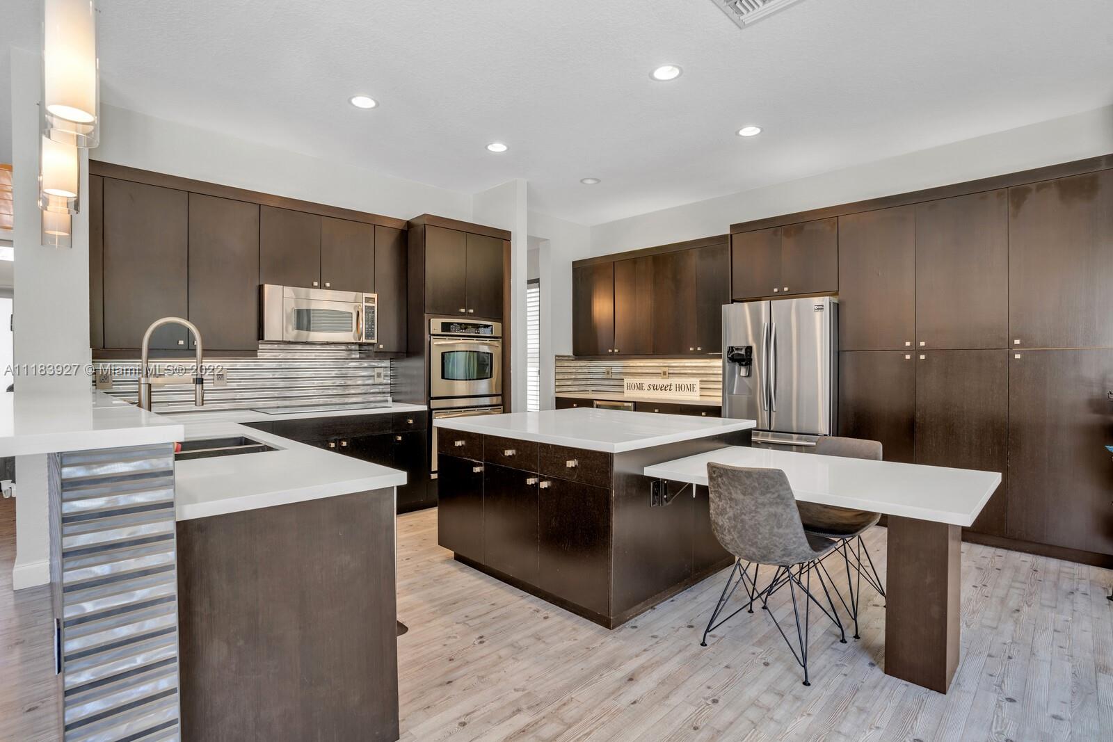 Welcome to this impressive Luxurious Modern Pool Home that has been exquisitely finished with a contemporary flare. This home boast 5bed/3baths/ 3 Car Garage with large open floor plan, an expansive flow through living and dining room space, upgraded kitchen with a large island Kitchen. Smart home equipped, nest, ring security, new led lighting, freshly painted inside and outside upgraded bathrooms. Outdoor entertaining is enjoyed at the pool and patio with extreme privacy surrounded by mature lush tropical greenery exterior lighting. Community features include an Olympic size pool, Clubhouse, Gym, three Tot-lot areas, and 24hr guarded visitor entrance. Sunset Falls is centrally located to all Schools, Highways, Shopping, and Dinning