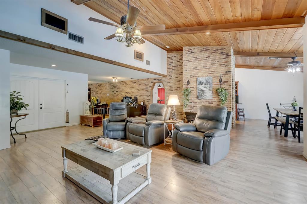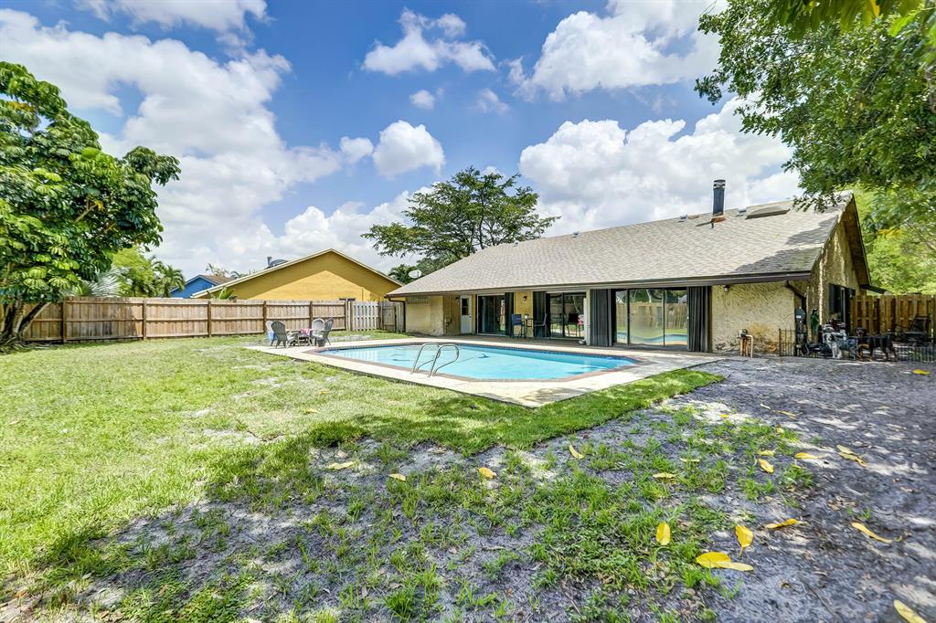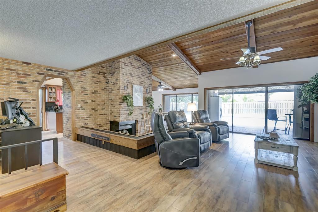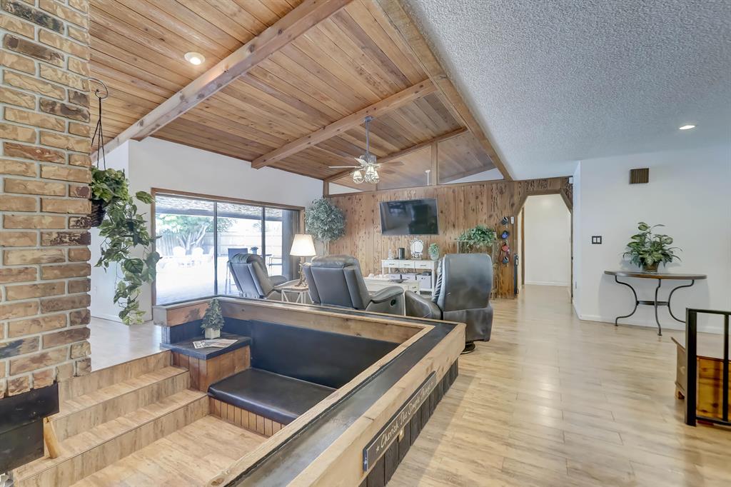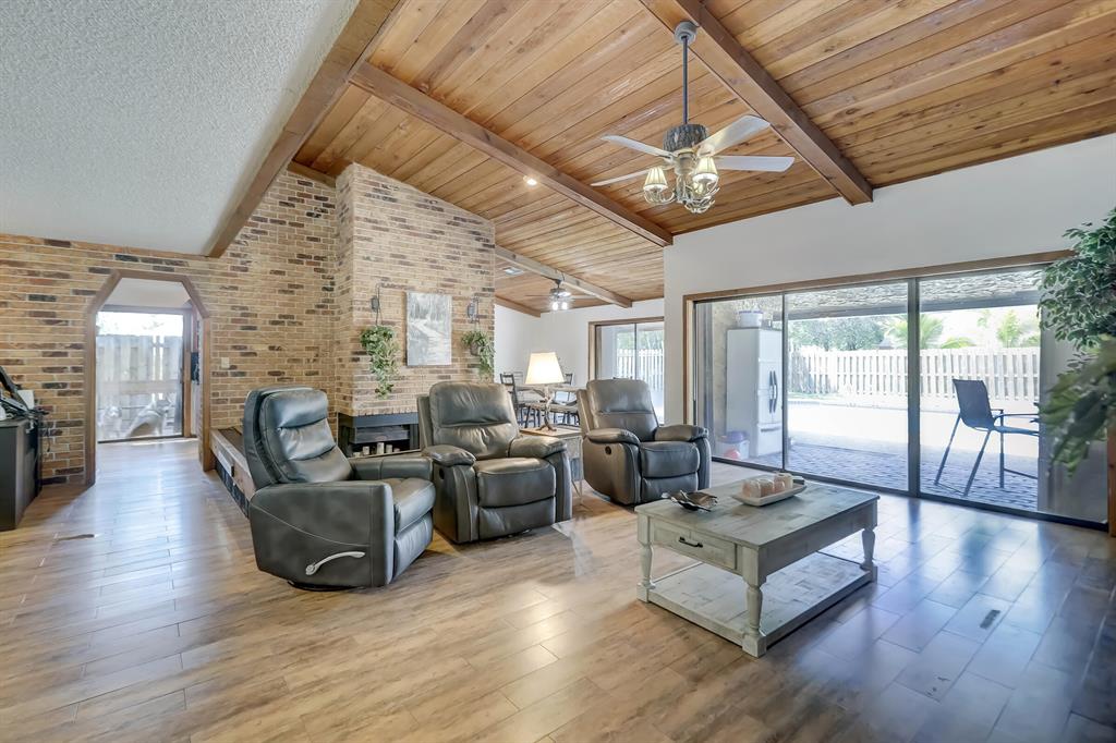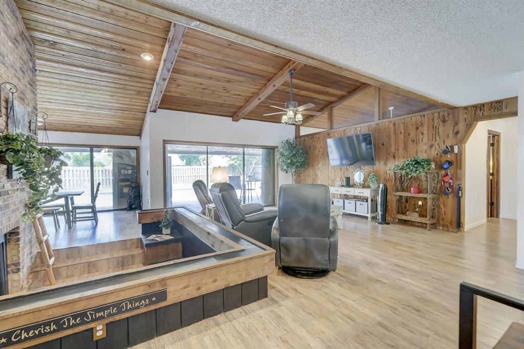 Centrally located, this 4 bedroom 2 bathroom pool home features a rustic flair that brings country living into the city. From the moment you enter, you will appreciate the many updates of this meticulously maintained home. Greeted by soaring ceilings, tile wood-look floors, a cozy fireplace & a separate sitting area. The sliding glass doors allow for nature to shine through so you can watch the sunset from your open living space. The Kitchen has granite countertops, newer appliances with an impact skylight recently installed along with the roof that was replaced in 2020. The Master Suite has a shower system & a Jacuzzi Tub. Enjoy entertaining outdoors chilling & grilling on your pool deck. This private corner Lot has over 12,000 sq ft. of a pet friendly fenced in yard & best of all No HOA.