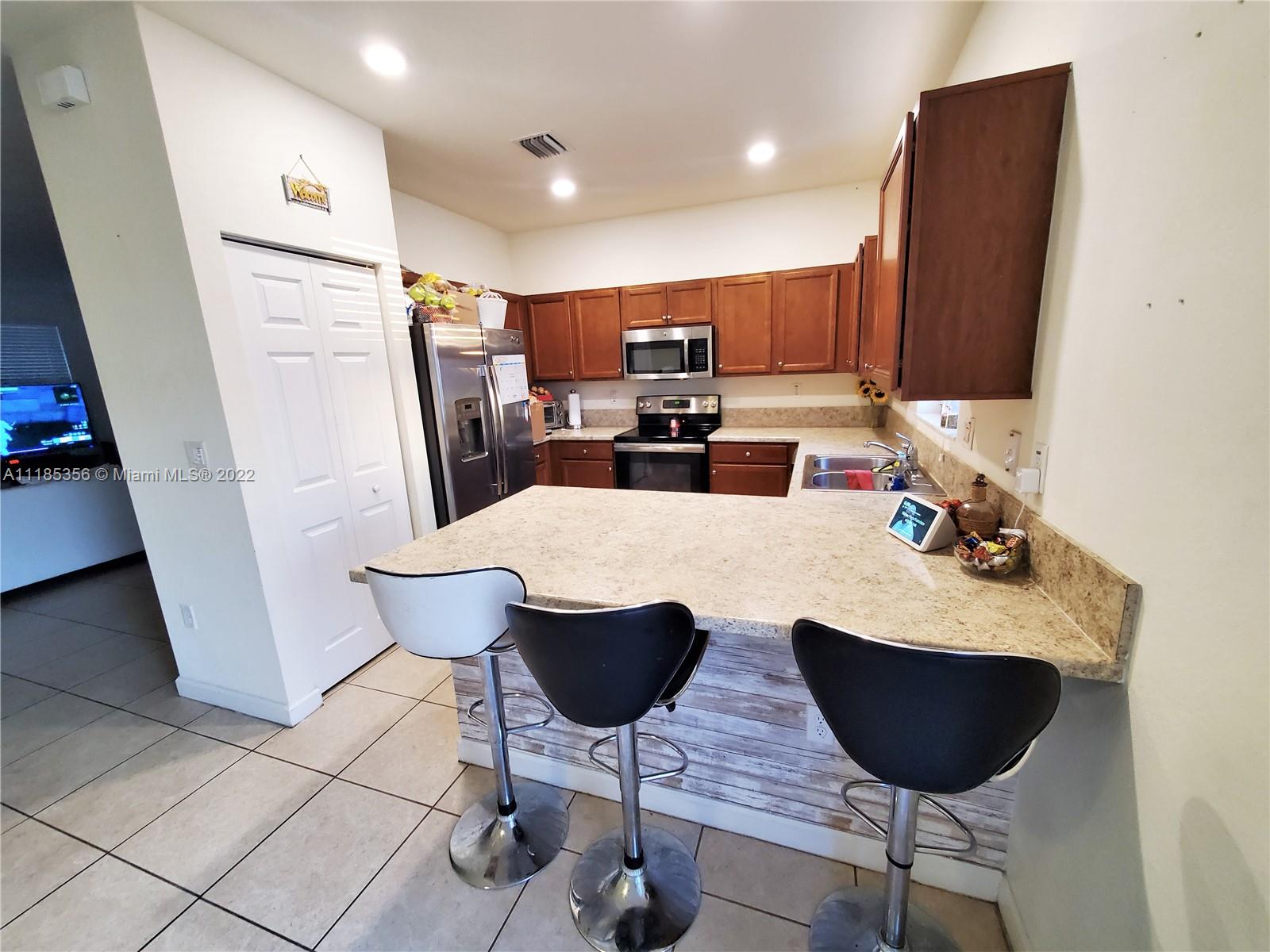 Beautiful home on the lake in the gated community of Bonterra. Come live in this 3 bed 2 1/2 townhouse with peaceful view of the lake and breath taking sunsets. Entertain and enjoy the fenced backyard, ideal for kids to play, gatherings, relaxation and more! The house has very elegant and modern features including, SS appliances, wood cabinets, washer and dryer on the second floor for your convenience. Master bedroom features double walking closets, dual sinks on master bath. Spacious second bedroom with walking closet. It has an attached garage, and driveway for 2 additional cars. The state of the art club house, has a full gym which include spinning room, a kids playroom, expansive pool, lounge chairs, a party room and more. Community with 24hour guard on gate.
