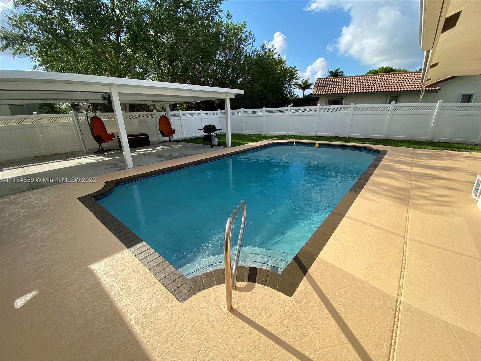 Beautiful and stately Coral Spring home, 8,999 sq ft lot. Wood kitchen cabinets and stainless steel appliances, granite countertop. Two car garage, terrace, pool, master bedroom with two walking closets. Custom bathrooms, sprinkler system, House painted with neutral colors. No HOA, This house is very close to parks, highways, churches, and schools. A wide and new driveway made of pavers, a new PVC fence, Air conditioning installed two years ago, bright and clean house with a beautiful view of the pool and the backyard. You must look at it and do not miss the opportunity to visit your possible home.