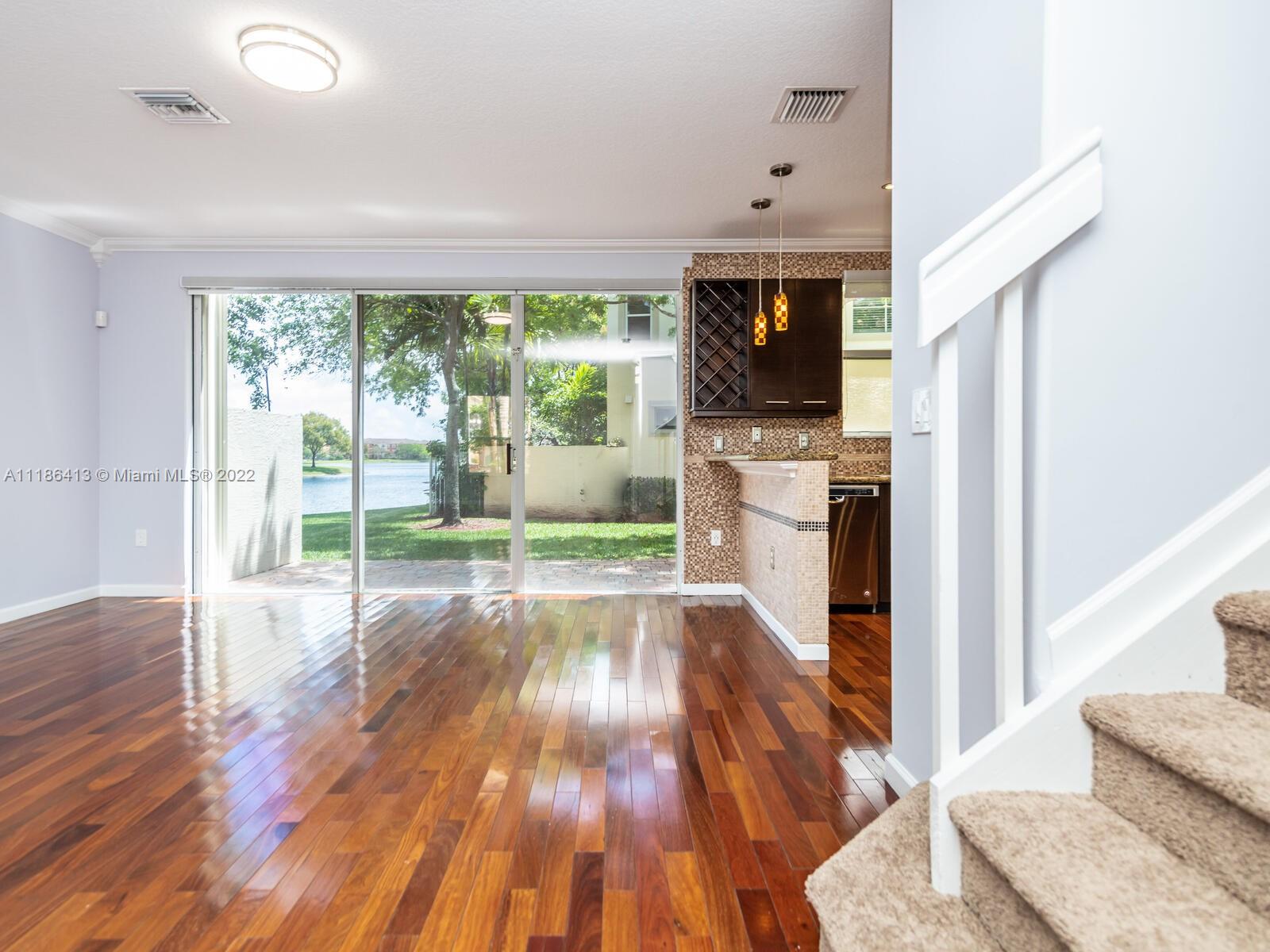 Rare Opportunity! Come and fall in love with this Luxurious Townhome, featuring 3 Bedrooms, 2.5 Baths. Brand new roof, freshly painted, new oven/stove, new accordion shutters, beautiful wood floors, new carpet on second floors. Enjoy a bright and spacious floor plan. 3 large bedrooms, and a washer and dryer for convenience on the second floor. Walk in closets, 1 Car garage, nice patio area overlooking the lake.
