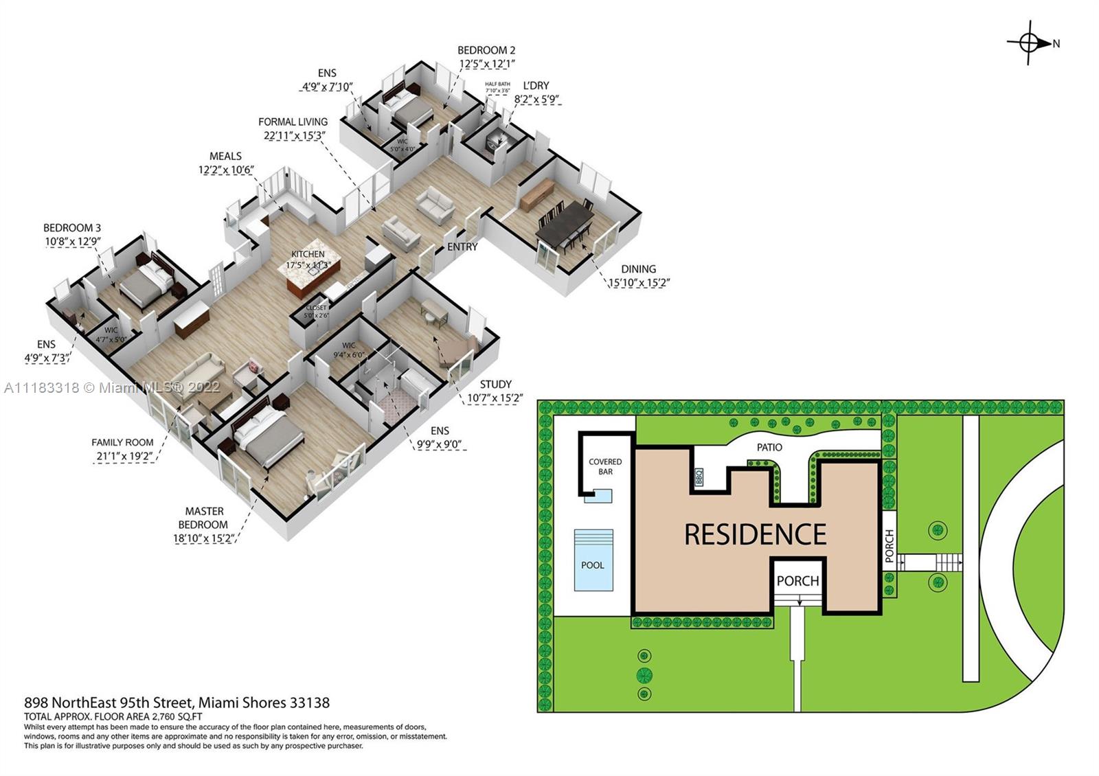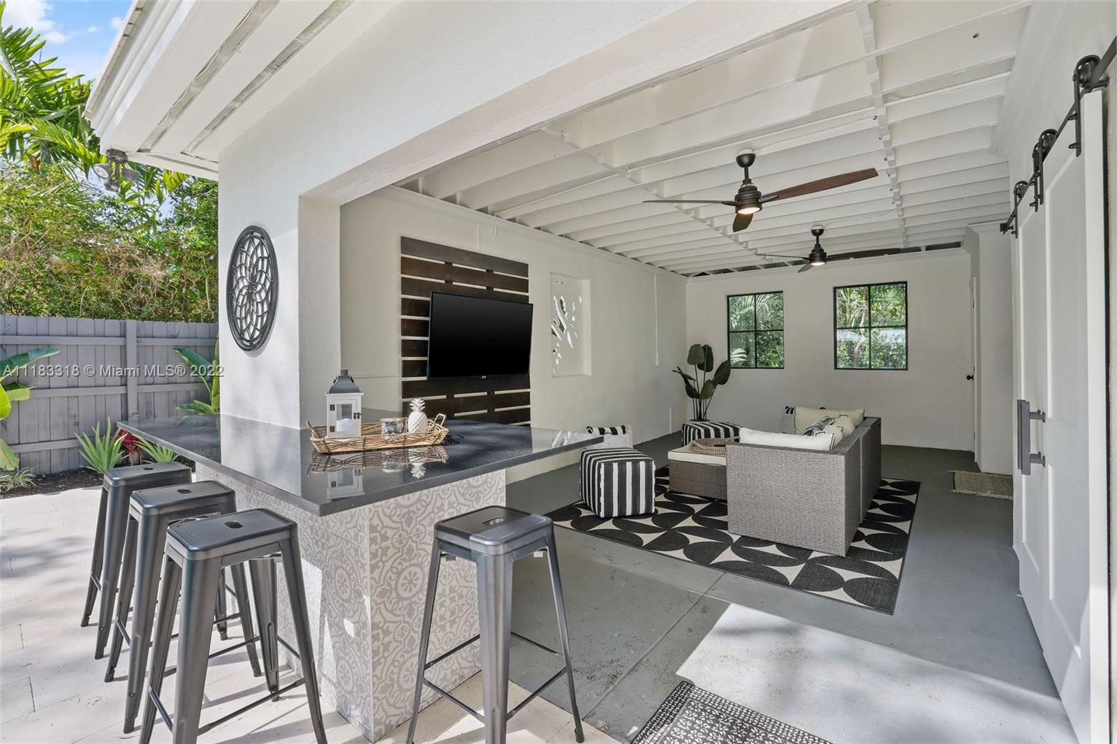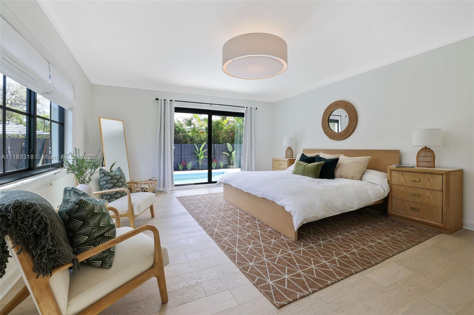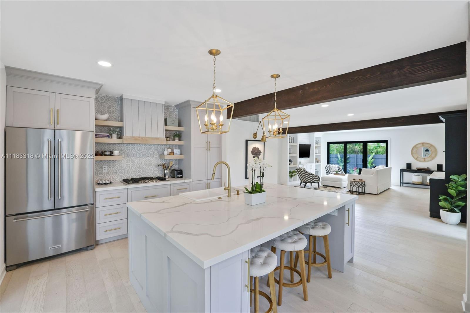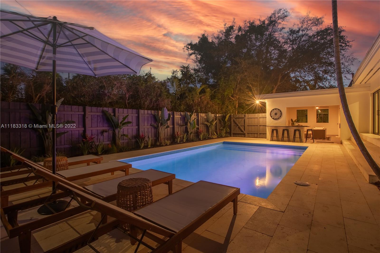Fall in love with this stunning 4 BD 3.5 BA, 2757 SF home east of Biscayne Boulevard in exclusive Miami Shores. Completely renovated, thoughtfully curated & impeccably furnished, with furniture included in price! Amazing open floor plan with high ceilings & very spacious living areas with multiple built-in features. The beautiful kitchen is perfectly situated in the heart of the home with a massive calacatta island & custom built-in breakfast nook. Enjoy views to your brand new pool from your resort style Master Suite with custom walk-in closet. The Master Spa-Bath has a curbless shower & a his and hers sink vanity. Sip your mimosa & entertain poolside in your covered cabana. New impact windows, new plumbing, new AC, gas stove & water heater, custom laundry room & much more!