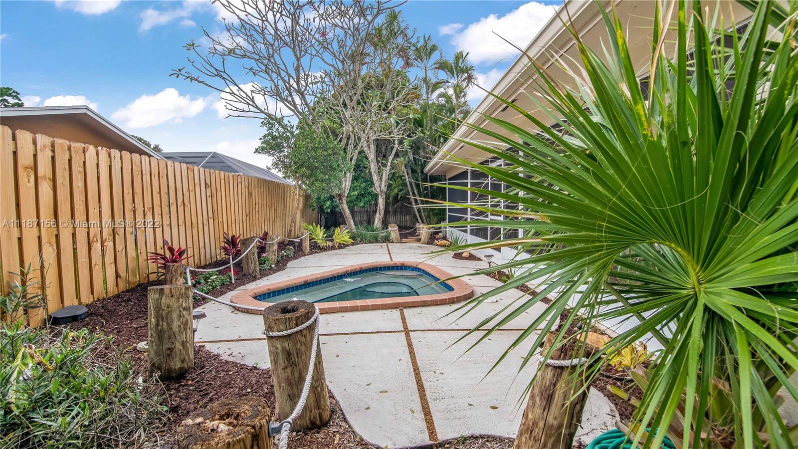 Located in the exclusive neighborhood of Plantation Hills, this oversized 3 bedrooms, 2 bathrooms, -one of which is a cabana bath- home features an upgraded kitchen with stylish custom cabinets & and stainless steel Samsung appliances. Rolled tile roof installed in 2017. Convenient hurricane rated impact windows and doors. 2021 Carrier HVAC unit. Walk-in closets in all bedrooms with satisfying space perfect for storage. Spacious screened patio lania overlooking a jacuzzi and deck, surrounded with lush landscaping ideal for your quiet evenings. Spacious laundry room off the kitchen. Large wood workbench & metal shelving in the garage are included on the sale. No HOA. Minutes to Central Park, Broward Mall with its amenities & highways. 20-minute drive to FLL International Airport.