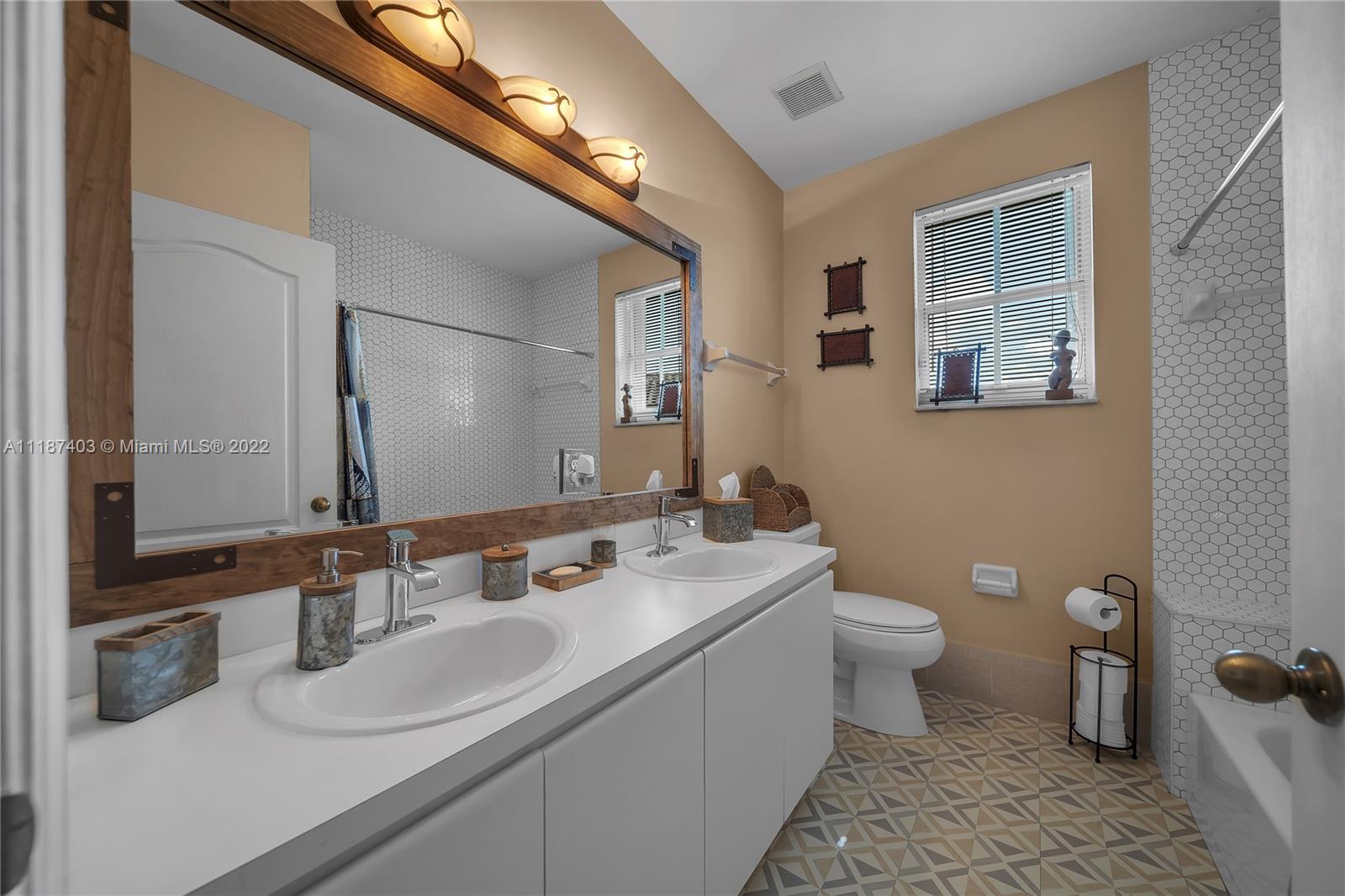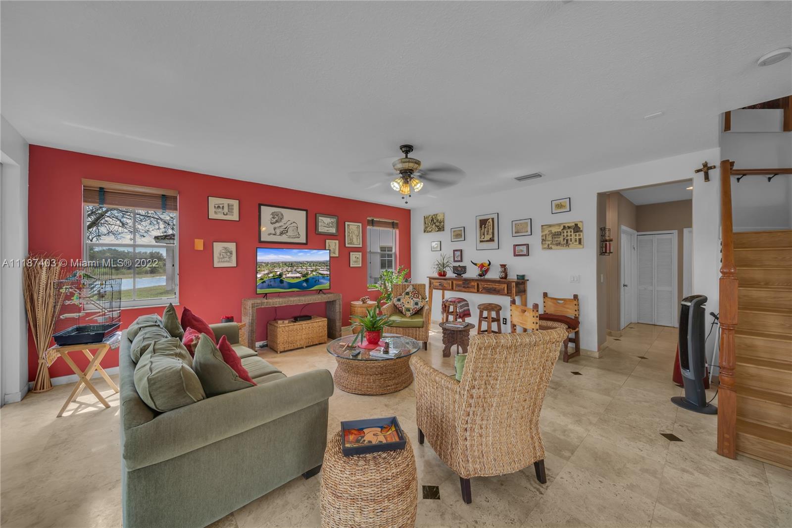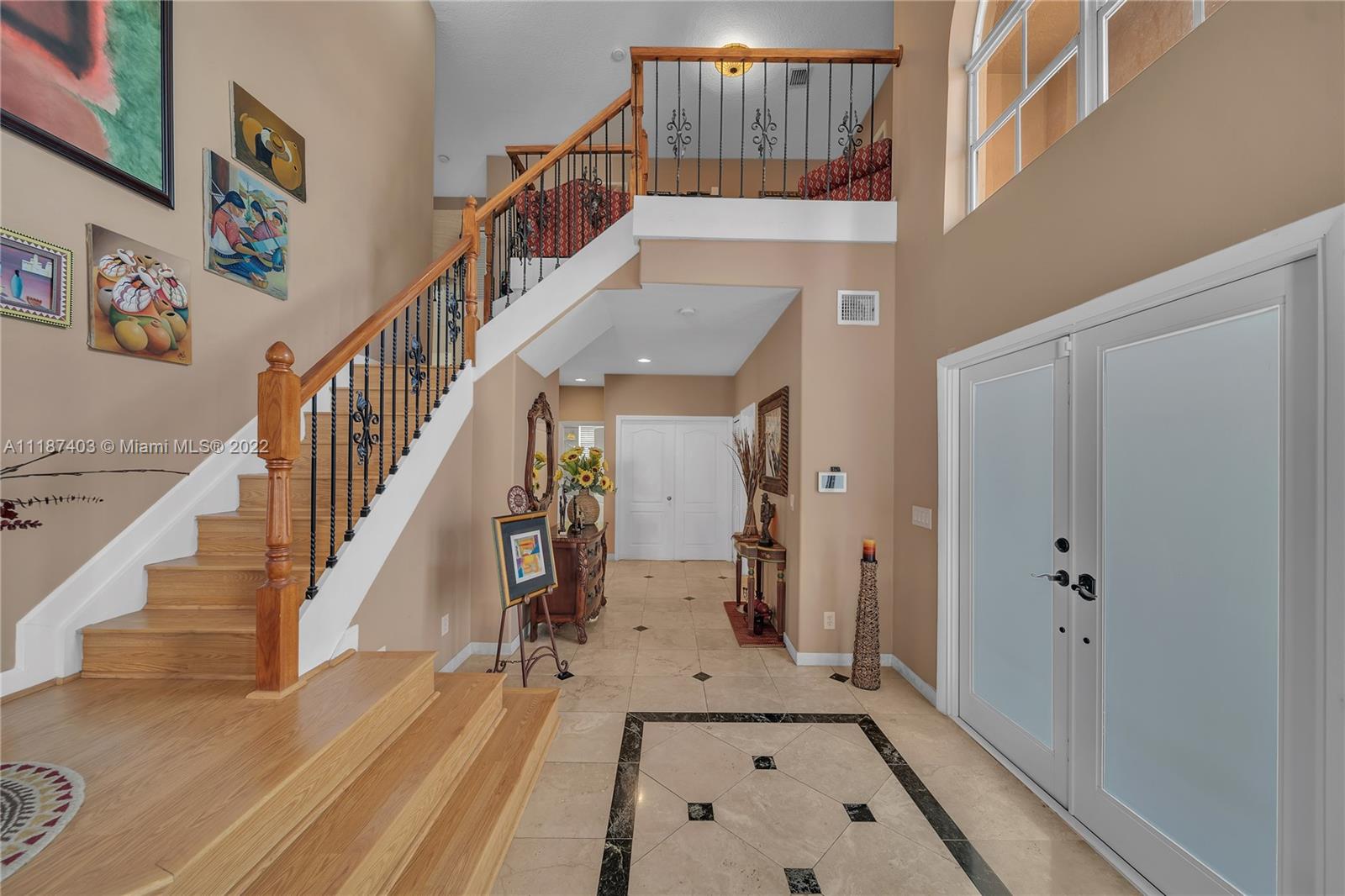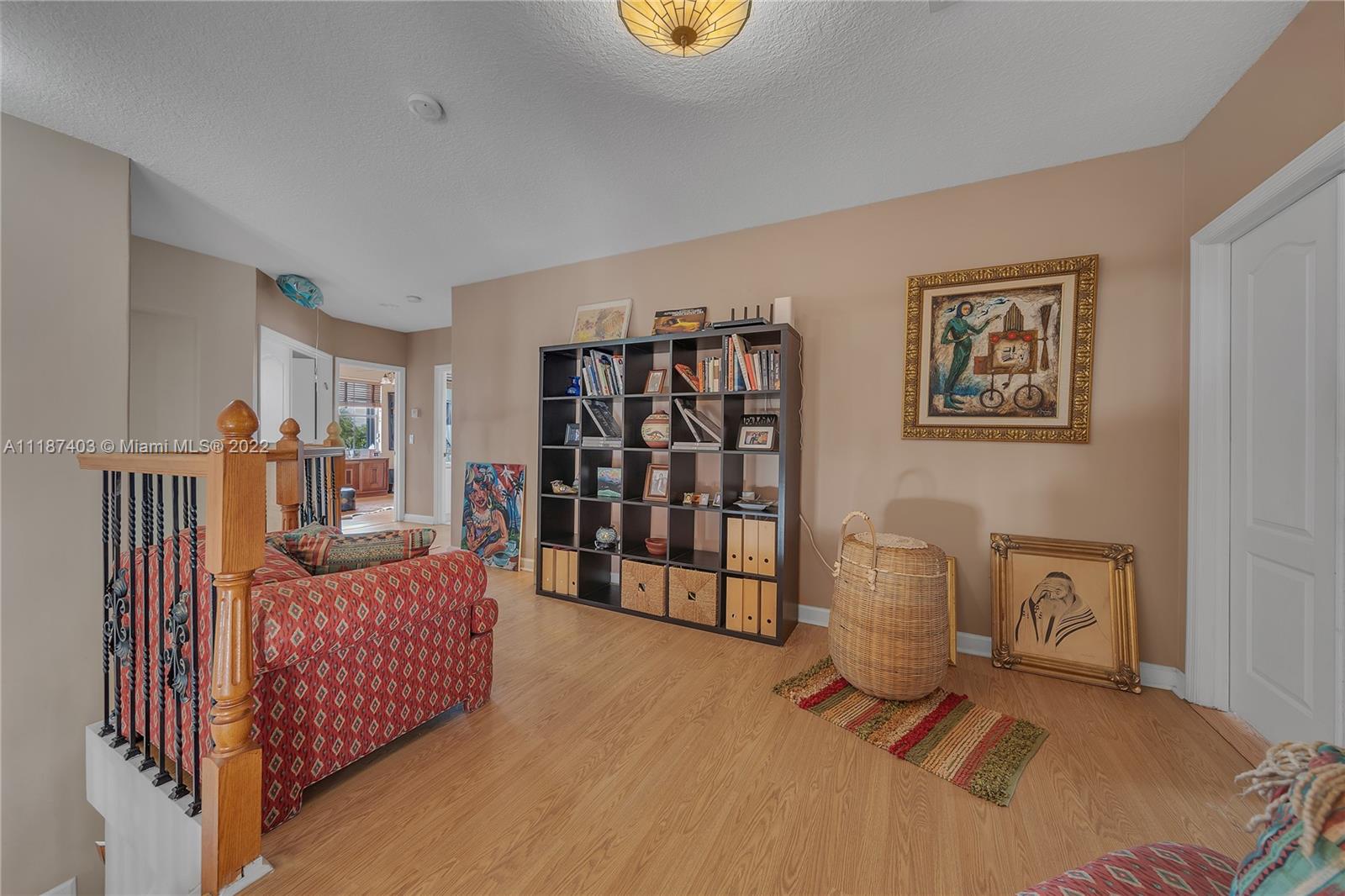A large tropical oasis located in the center of Miramar, this sizable single-family home is located in the beautifully manicured and quiet neighborhood of Tahiti Isle at Nautica. Built in 2000 with two floors of 3,670 livable sq. ft., this home boasts 5 large bedrooms with 4 full baths, tons of closet space, beautiful stone tiles on the ground floor, and laminate wood in the bedrooms, and has wide-open spaces for entertaining. Hurricane accordian shutters throughout, modern interior with dramatic vaulted ceilings, bright and open living room and kitchen. A quaint breakfast nook leads to an open-air porch overlooking a scenic waterway, and is surrounded by greenery facing a protected bird sanctuary. The neighborhood features 24/7 gated security, gym, tennis & basketball courts, & more!