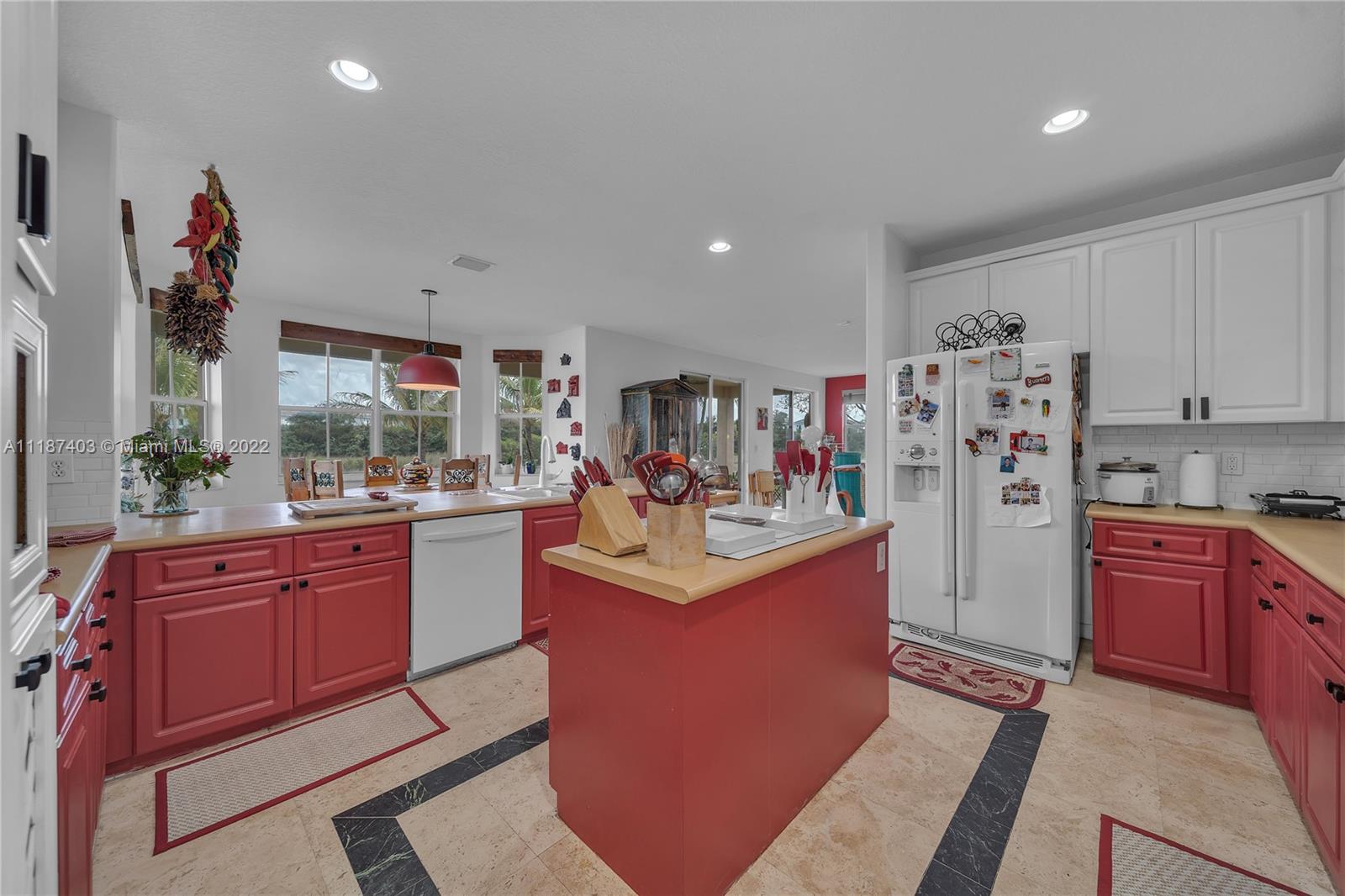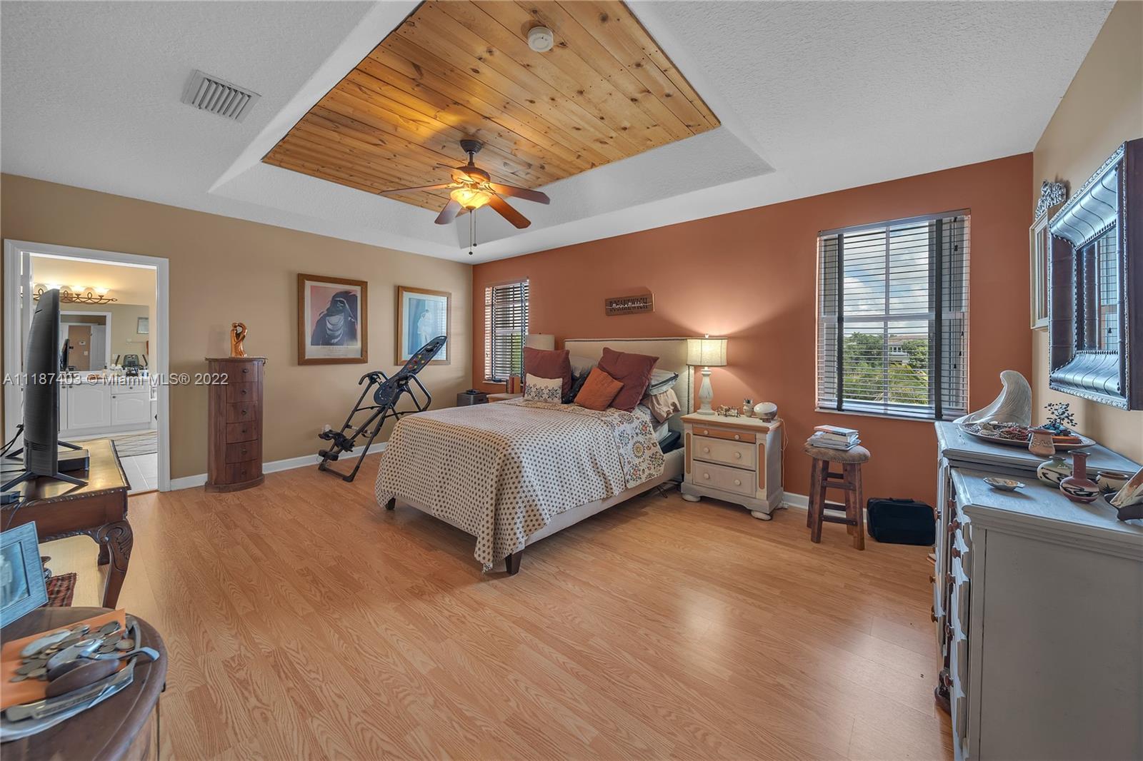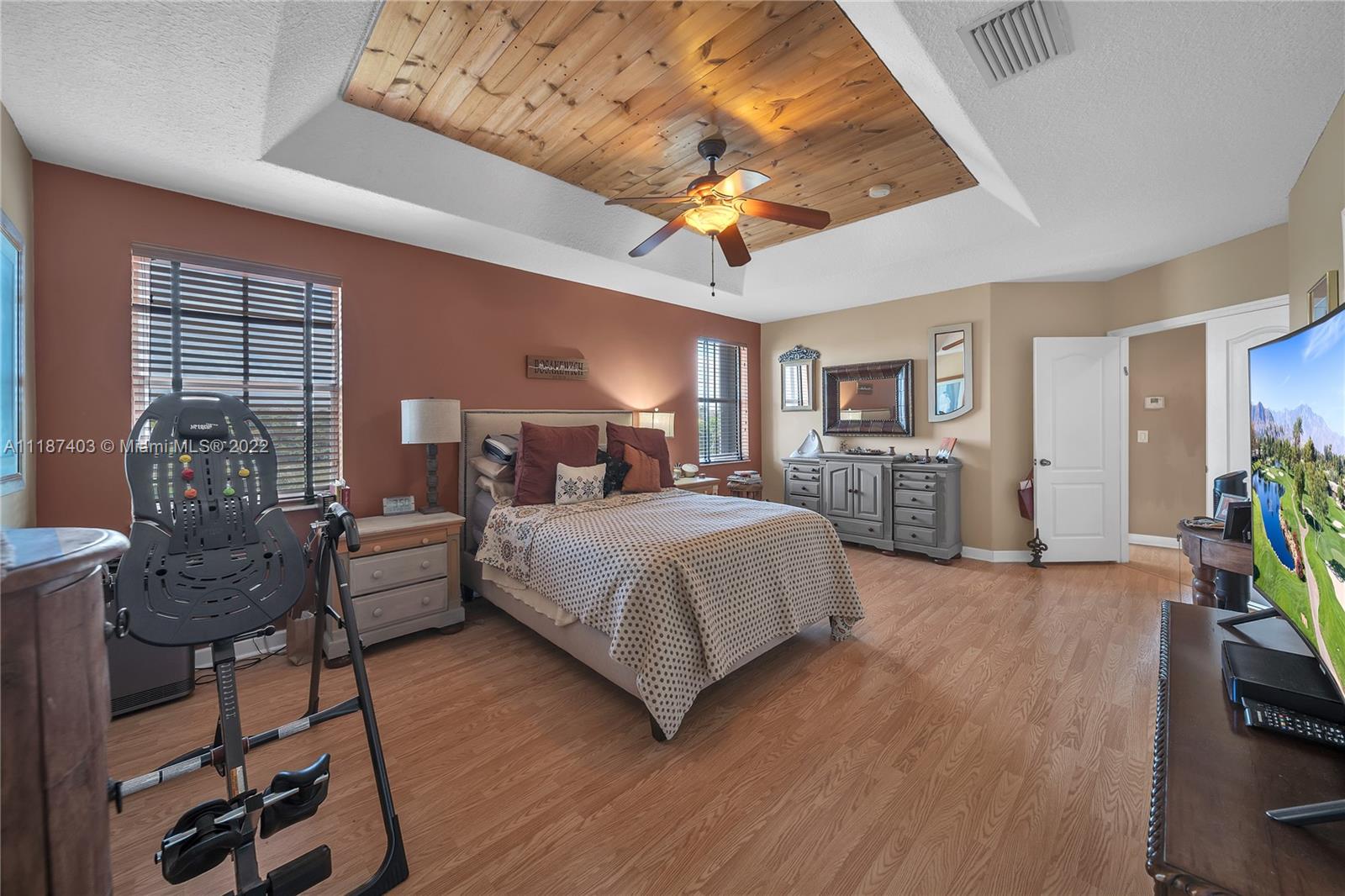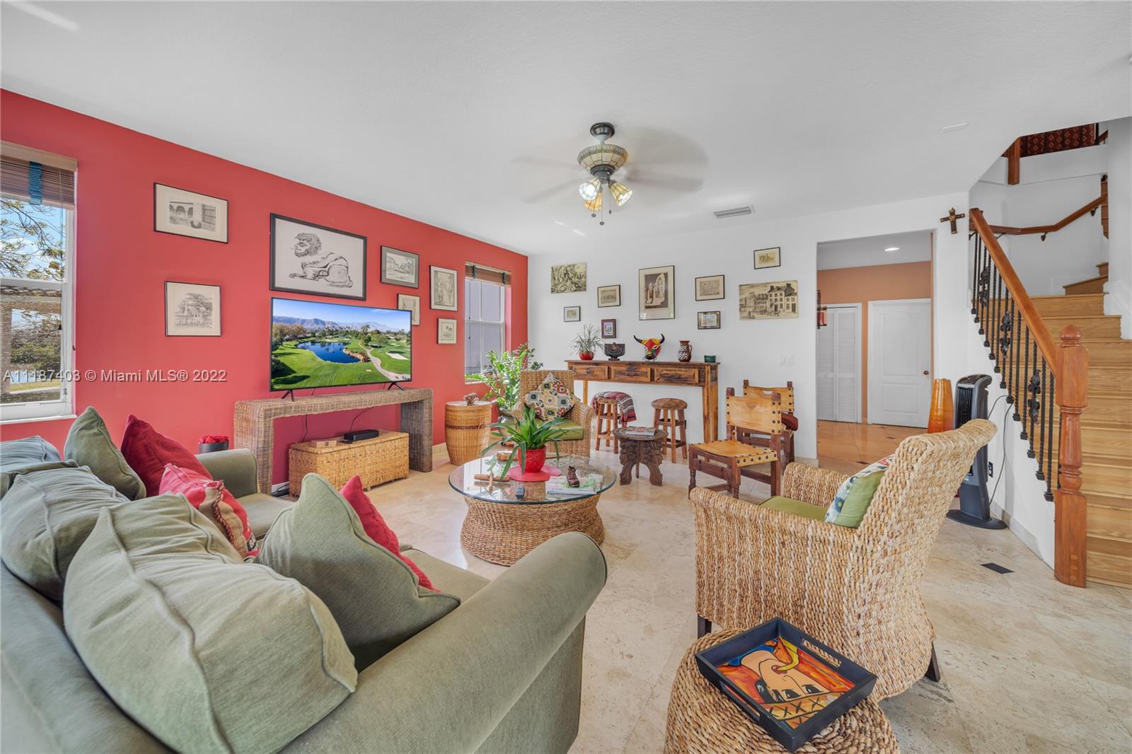 A large tropical oasis located in the center of Miramar, this sizable single-family home is located in the beautifully manicured and quiet neighborhood of Tahiti Isle at Nautica. Built in 2000 with two floors of 3,670 livable sq. ft., this home boasts 5 large bedrooms with 4 full baths, tons of closet space, beautiful stone tiles on the ground floor, and laminate wood in the bedrooms, and has wide-open spaces for entertaining. Hurricane accordian shutters throughout, modern interior with dramatic vaulted ceilings, bright and open living room and kitchen. A quaint breakfast nook leads to an open-air porch overlooking a scenic waterway, and is surrounded by greenery facing a protected bird sanctuary. The neighborhood features 24/7 gated security, gym, tennis & basketball courts, & more!