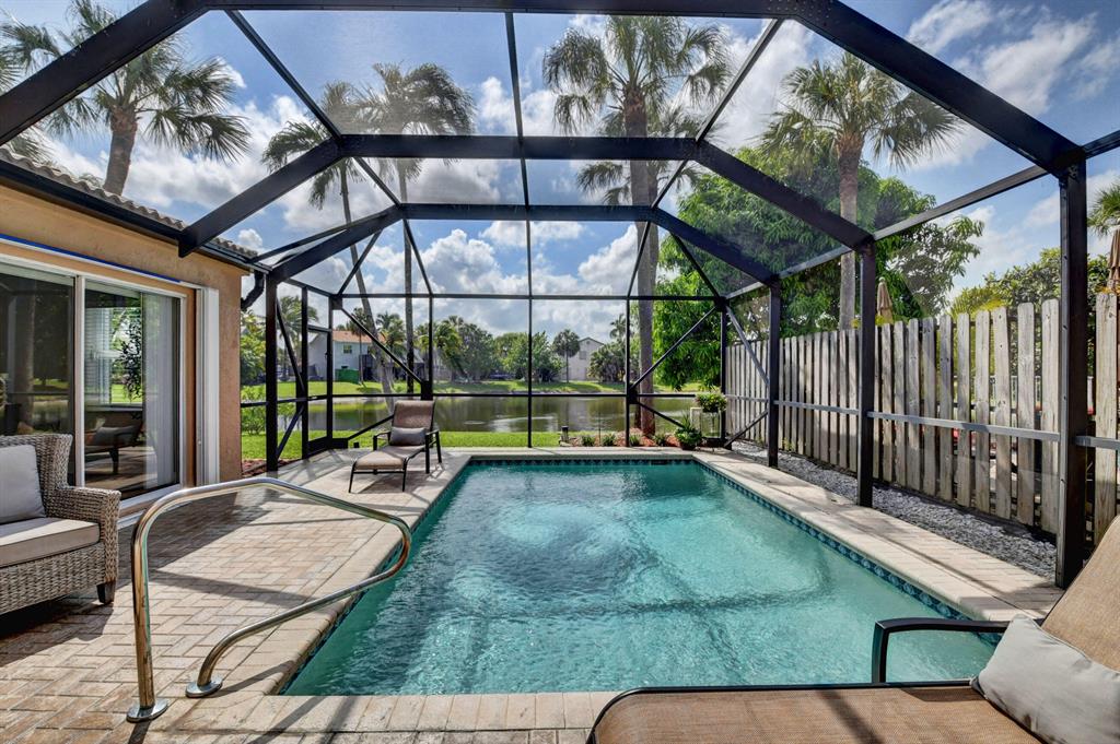 Live life more luxuriously in this fabulous renovated home with private pool located in the desirable Boca Chase community. Enjoy sunset views from the lakeside screened lanai with heated pool and sundeck. Design details include cathedral ceilings, new flooring throughout plus newer (2019) 2-zone AC, newer (2008) roof, accordion shutters plus impact doors and windows for added storm protection. Eat-in kitchen features granite counters, stainless steel appliances, and large seated peninsula bar. Spectacular owner's suite includes newly renovated en suite bath with dual vanities, vessel tub, and large step-in shower with frameless glass door. Boca Chase amenities include basketball court, clubhouse with pool and tennis. Excellent location close to schools and local parks and recreation.