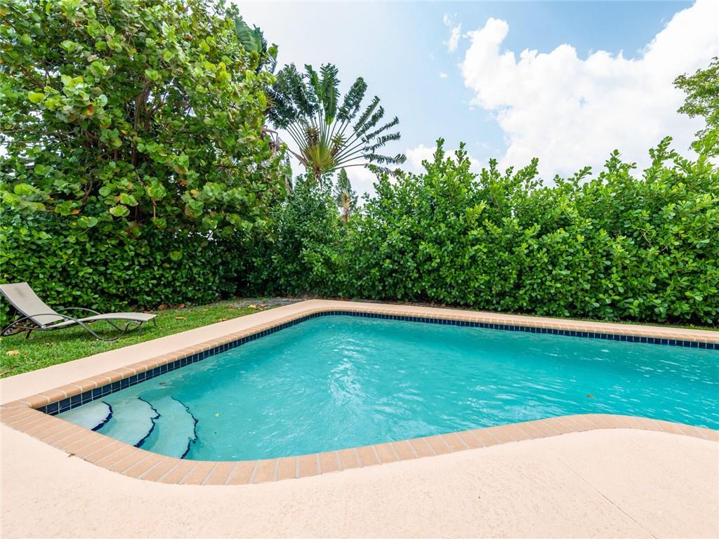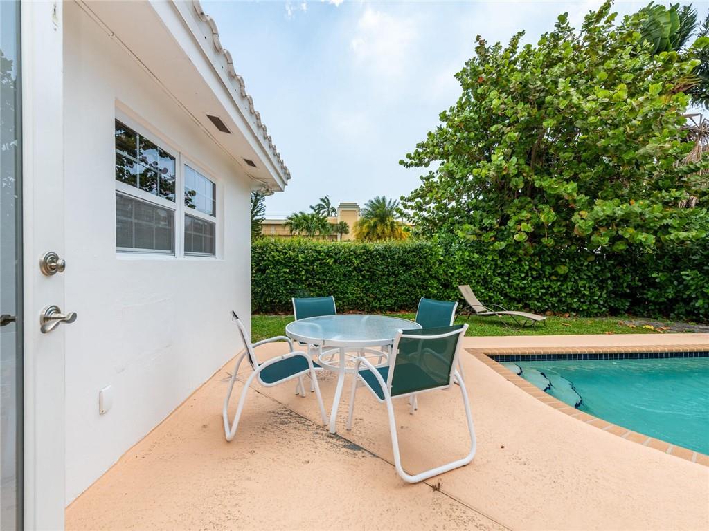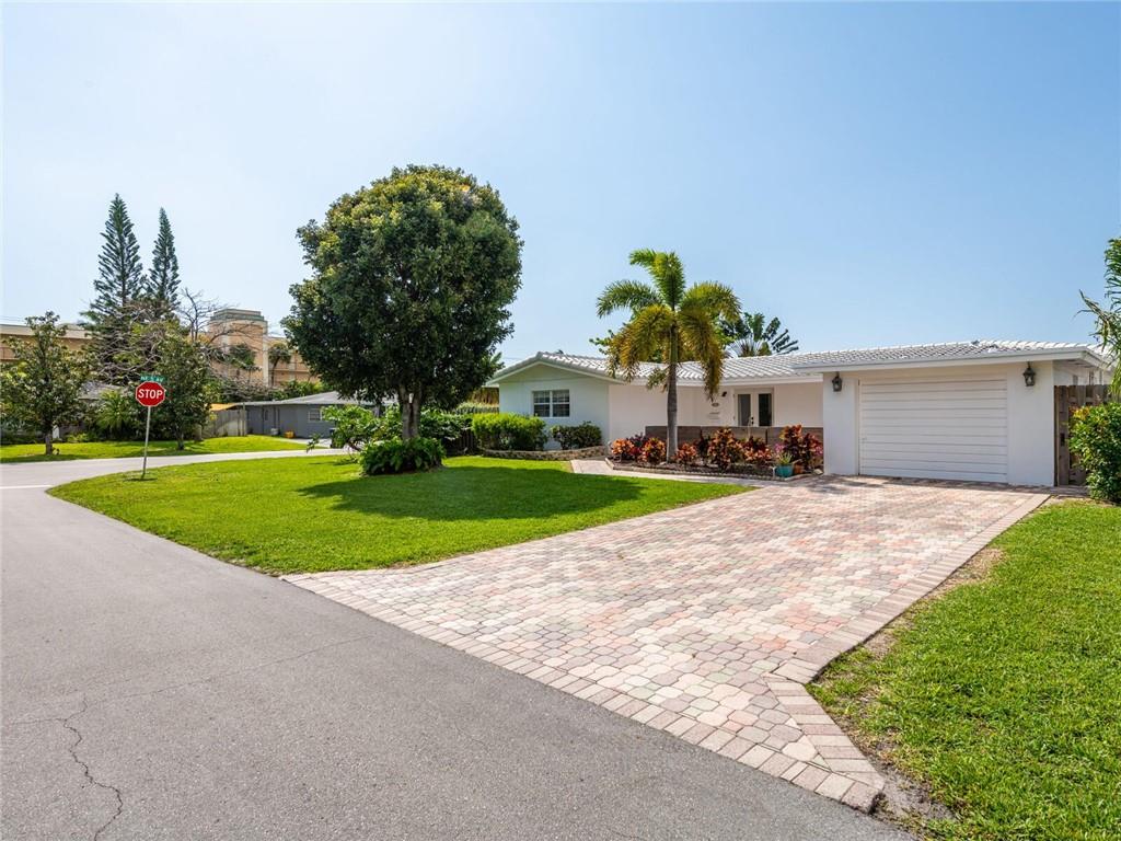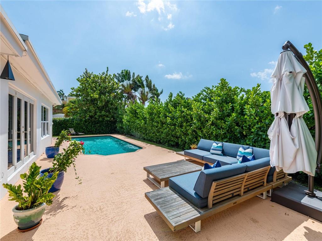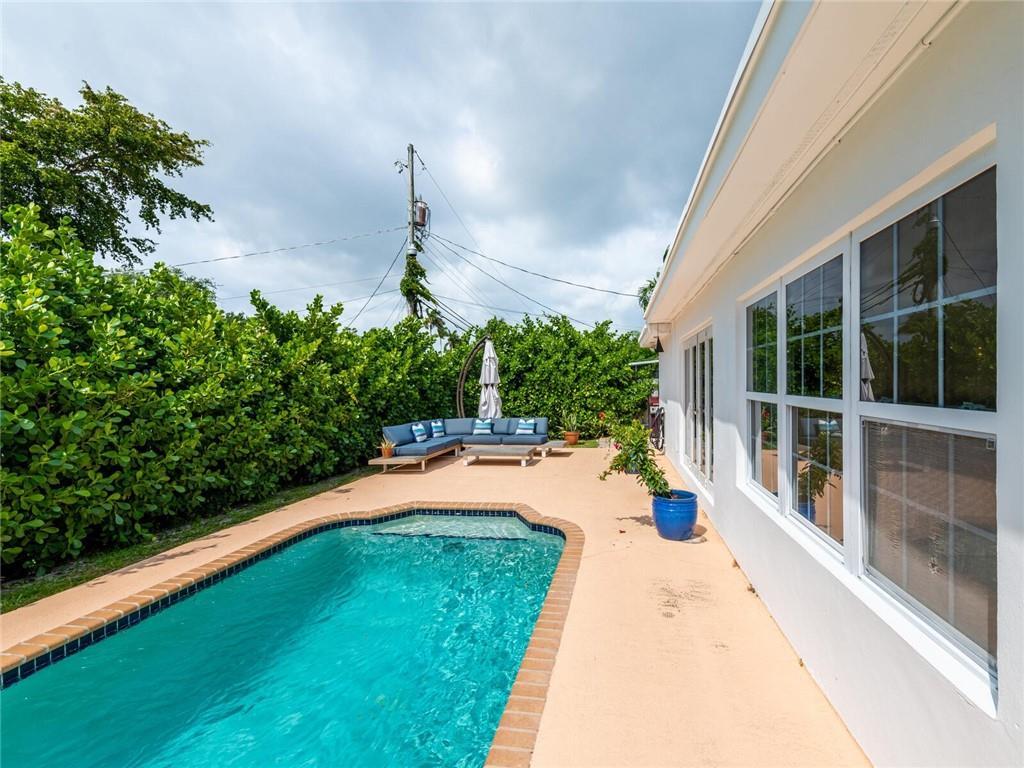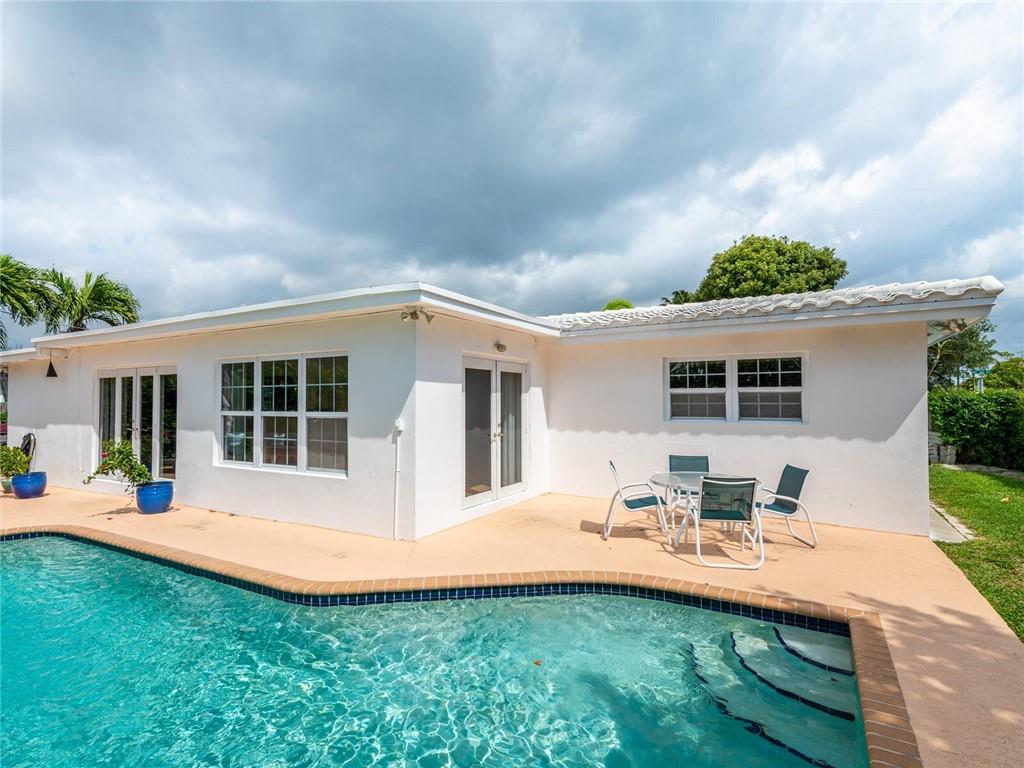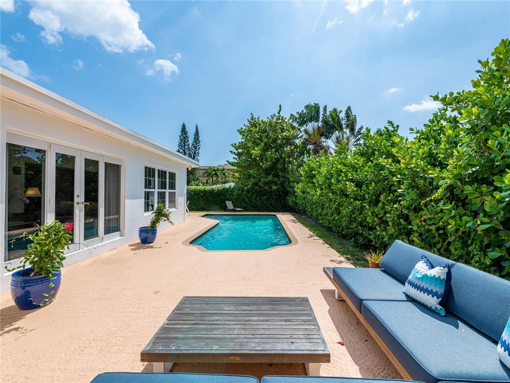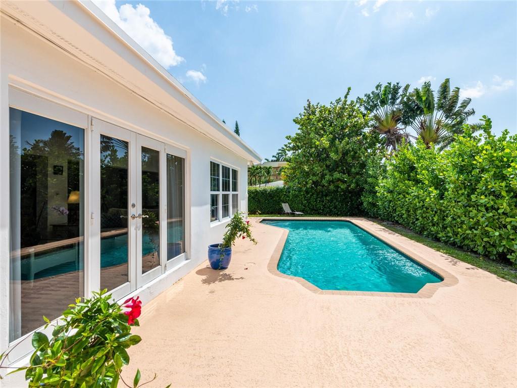 This lovely, updated home sits on a corner-lot just a mile from the beach & features an open floor plan, lots of natural light, terrazzo floors, a beautiful, updated kitchen w/white cabinetry, white quartz counter tops, eat at counter, & stainless-steel appliances. This home also boast a tile roof (4 years new), updated electrical panel (4 years new), swimming pool, large patio & private fenced tropical backyard, tankless hot water heater (1 year new), laundry room w/ washer, dryer & laundry sink, impact-rated glass front doors. The primary suite is spacious, bright & open with a en-suite bath w/ a lovely white vanity & shower. The 1 car garage was partially converted & being used as a gym & storage room. Great location in East Boca, walk or bike to the beach and Mizner Park.