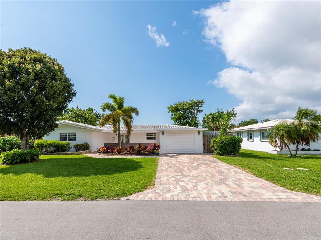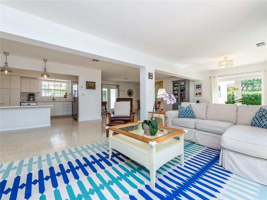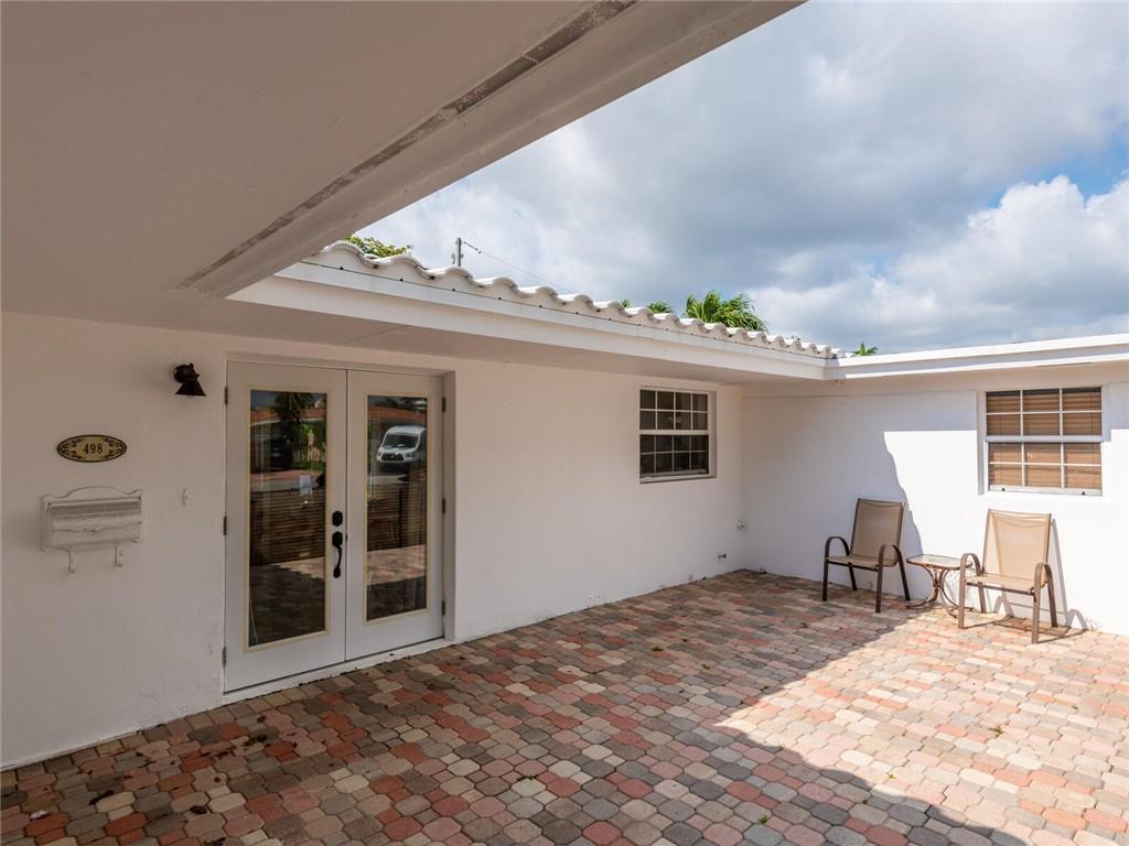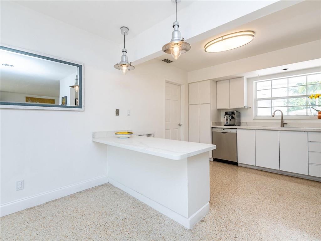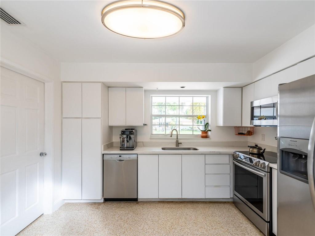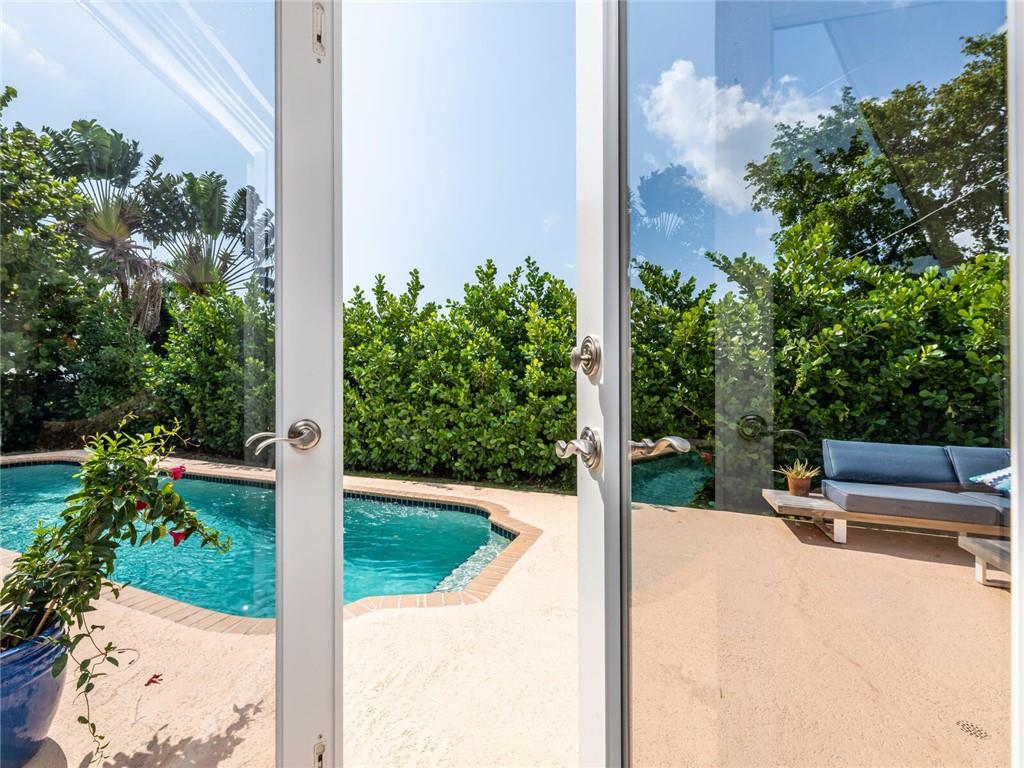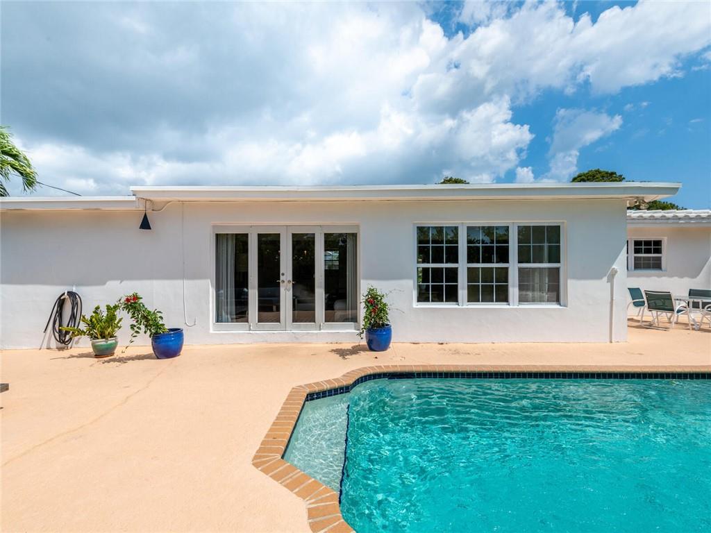 This lovely, updated home sits on a corner-lot just a mile from the beach & features an open floor plan, lots of natural light, terrazzo floors, a beautiful, updated kitchen w/white cabinetry, white quartz counter tops, eat at counter, & stainless-steel appliances. This home also boast a tile roof (4 years new), updated electrical panel (4 years new), swimming pool, large patio & private fenced tropical backyard, tankless hot water heater (1 year new), laundry room w/ washer, dryer & laundry sink, impact-rated glass front doors. The primary suite is spacious, bright & open with a en-suite bath w/ a lovely white vanity & shower. The 1 car garage was partially converted & being used as a gym & storage room. Great location in East Boca, walk or bike to the beach and Mizner Park.