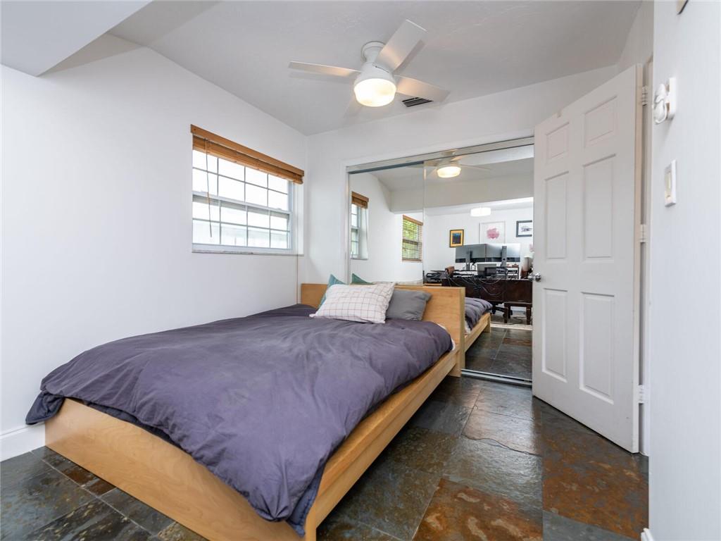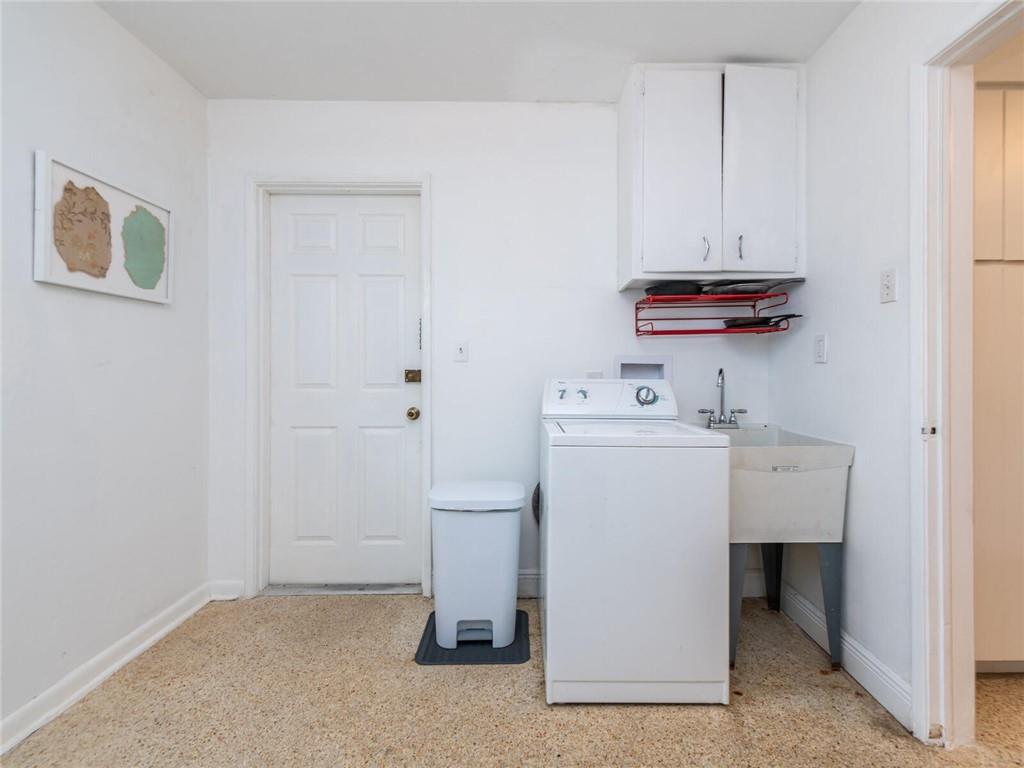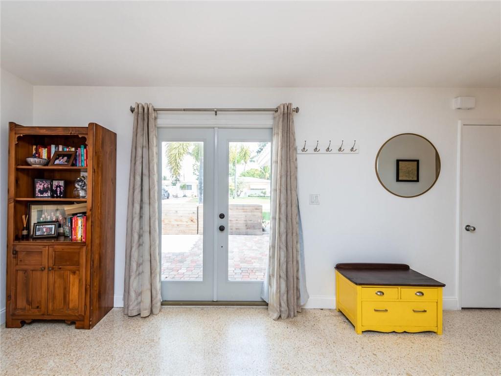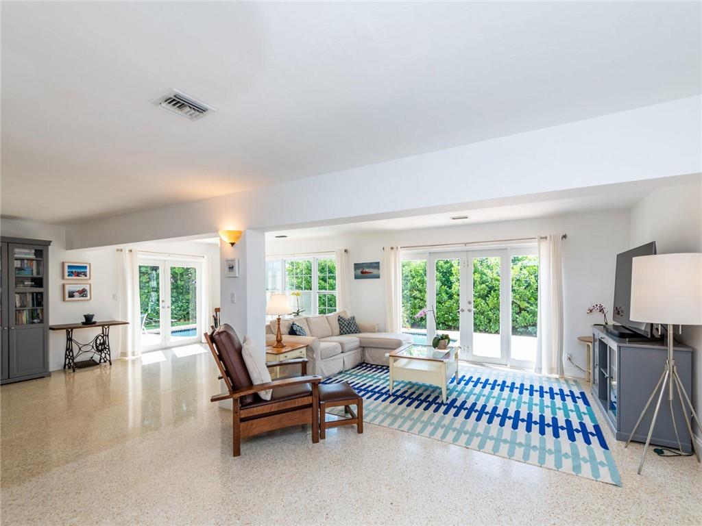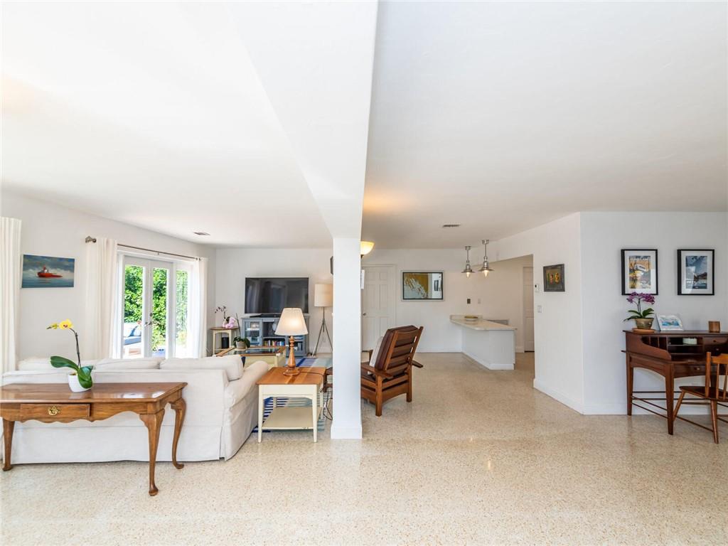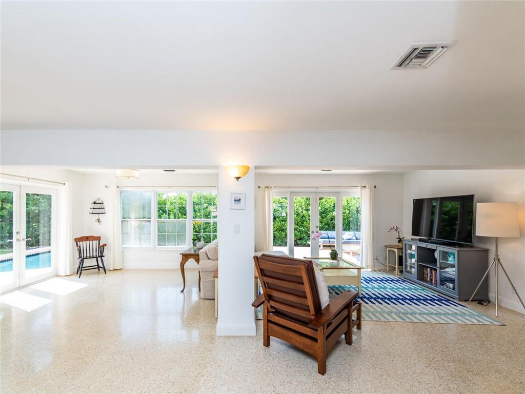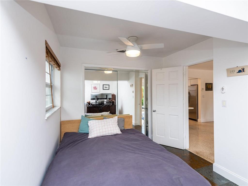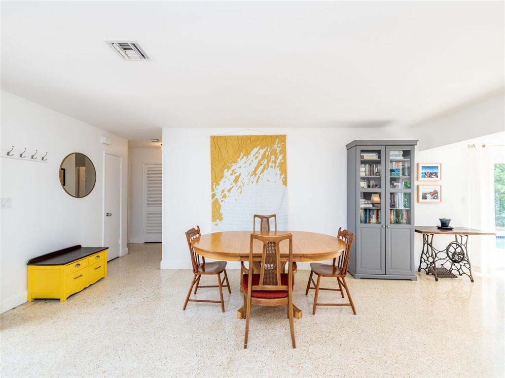This lovely, updated home sits on a corner-lot just a mile from the beach & features an open floor plan, lots of natural light, terrazzo floors, a beautiful, updated kitchen w/white cabinetry, white quartz counter tops, eat at counter, & stainless-steel appliances. This home also boast a tile roof (4 years new), updated electrical panel (4 years new), swimming pool, large patio & private fenced tropical backyard, tankless hot water heater (1 year new), laundry room w/ washer, dryer & laundry sink, impact-rated glass front doors. The primary suite is spacious, bright & open with a en-suite bath w/ a lovely white vanity & shower. The 1 car garage was partially converted & being used as a gym & storage room. Great location in East Boca, walk or bike to the beach and Mizner Park.