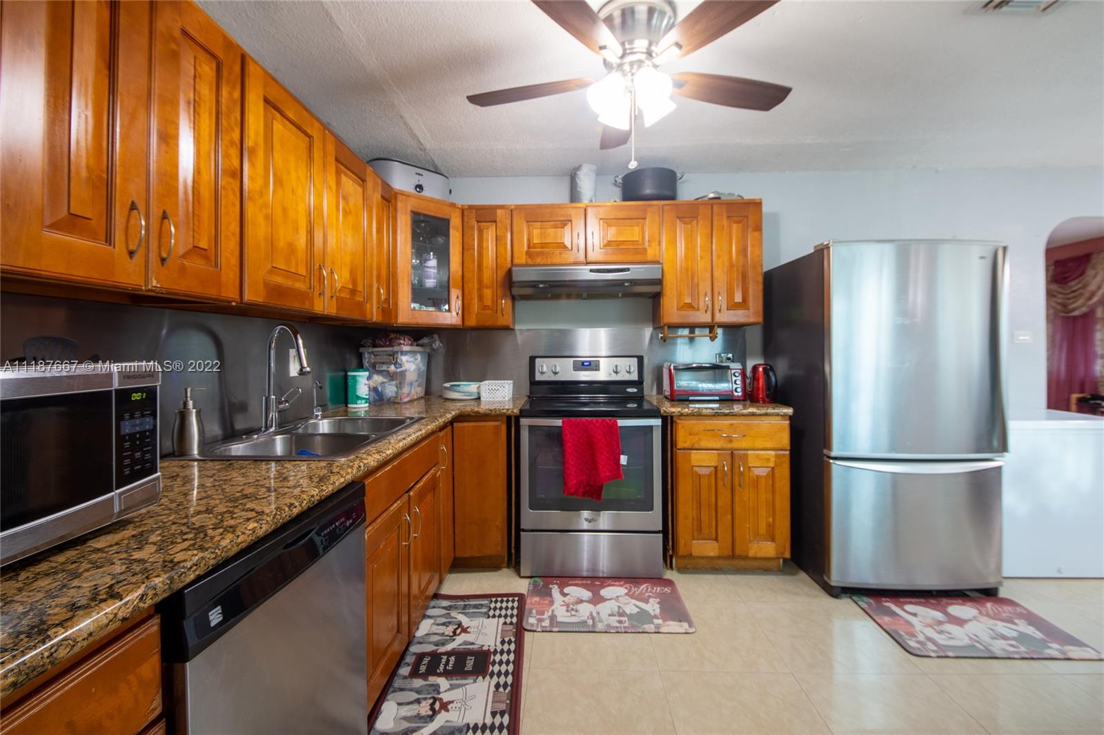 Single Family Home 3 Bedroom 2 Bathrooms in West Park featuring Solar Panels with FPL program, Hurricane Impact Windows, Stainless steel appliances, Granite counters, tankless water heater, updated bathrooms, tiles floors throughout the home, laundry room with storage cabinets, electronic gate entrance, driveway, plenty space for cars, shed in the back, fenced yard, patio roof provide shade and ready for entertainment. Located just few minutes away from I95 and Turnpike, Hard Rock Casino, Downtown Hollywood, 4 miles from the beach. This home is ready to move in!