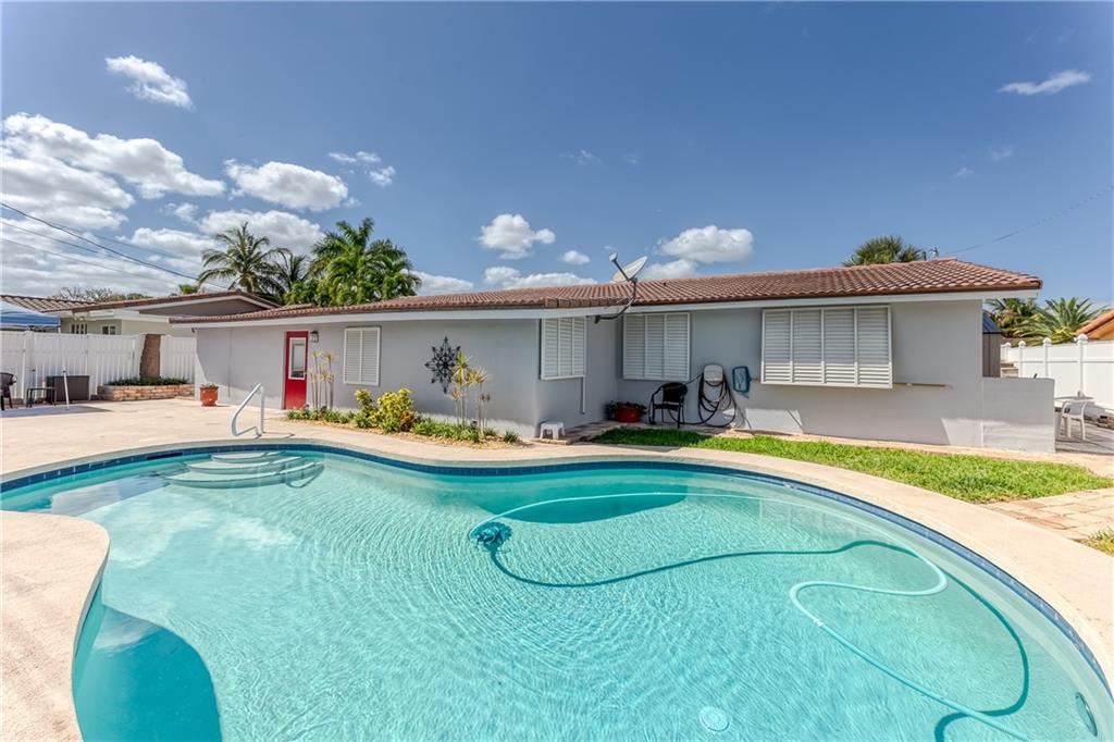 Great single family home on a quiet street of sought after Coral Ridge Isles neighborhood in Fort Lauderdale! 3 bedrooms and 3 full bathrooms, 2 car garage, circular driveway with plenty of parking. Walking distance to prestigious Pine Crest Preparatory School and just minutes away from beaches, restaurants and shopping. Easy access to major highways, and just 20 minutes to the airport. Beautiful pool area with plenty of yard space for your pets, fully fenced, and room for your dream outdoor kitchen for great entertainment. Third bedroom with private entrance. Large kitchen. Hurricane shutters. No HOA. Floranada elementary school district. Great neighborhood and excellent location. Enjoy the Florida lifestyle in this amazing backyard with a just resurfaced 8 FT deep freeform pool!!