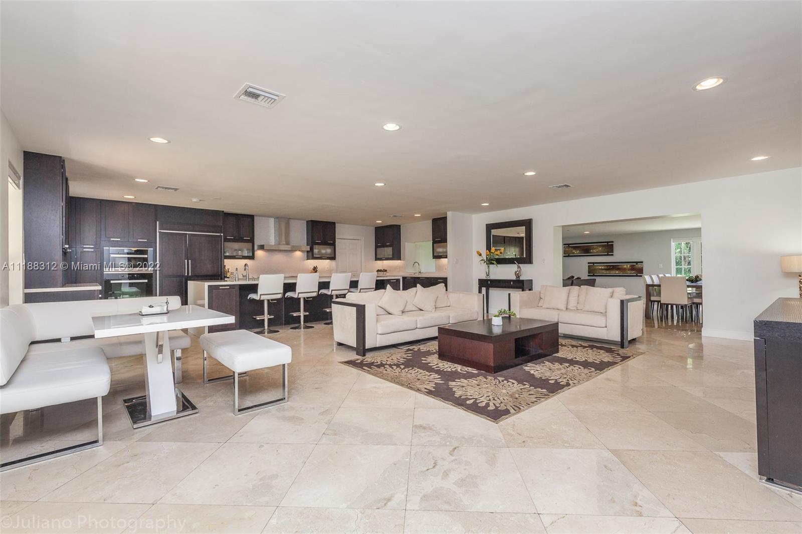 Completely renovated, and private. 4B/2B with 1.75 acres with modern aluminum electric gate. You will be amazed by the perfect kitchen design, custom made kitchen with quartz countertops, and an immense size waterfall island with prep sink. Top of the line MIELE appliances, w/Steam Oven & Indoor Hibachi Grill! Huge Custom paneled refrigerator and dishwasher, coffee/wine bar with built-in wine and beverage cooler. Open floor plan with IMPACT WINDOWS throughout the home. Beautiful marble floors and modern tile in rooms. Master bedroom suite with Jacuzzi & extra-large DOUBLE rain shower and exquisite design walk-in closet. Newer Roof & ACs.