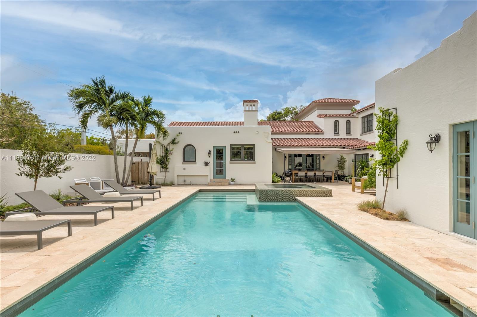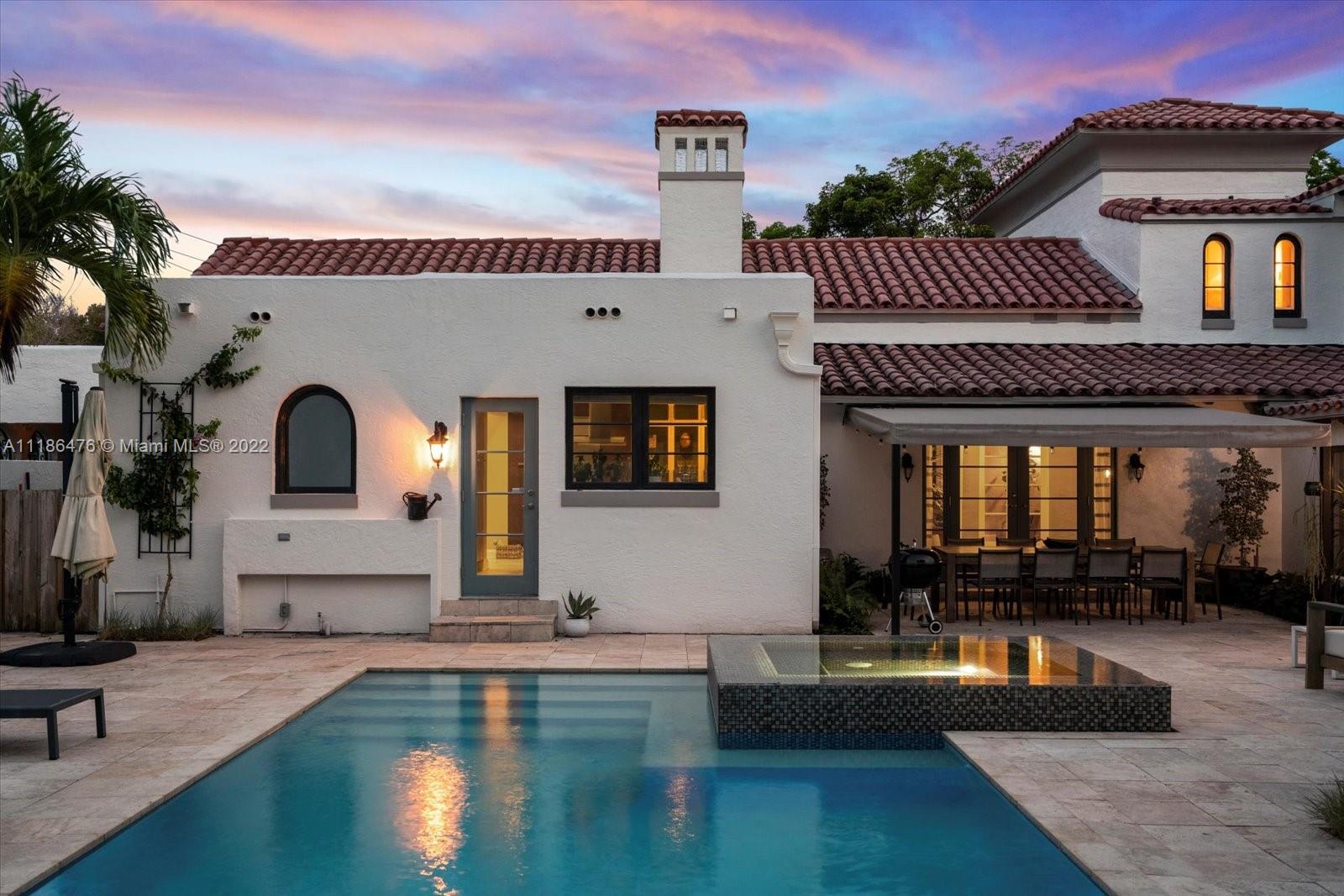 One of a Kind, Spectacular Mediterranean Estate situated on an expansive 19,200 SF corner parcel inclusive of towering oaks, a spacious main house+attached guest house. Main residence w/an impressive grand living/dining room, 6bds,5 full baths &2 halves. Custom details throughout such as the 14th pecky cypress ceiling, ironwork, French Doors & remote fireplace. Window-lined poolside loggia leads to renovated guest house w/separate kitchen, laundry, living/dining, office & 2nd master. Walled grounds w/cover terrace, porte-cochere, full impact glass, heated saltwater pool w/built-in infinity jacuzzi & full house generator. Includes plans for a detached 2 garage. A true masterpiece!!