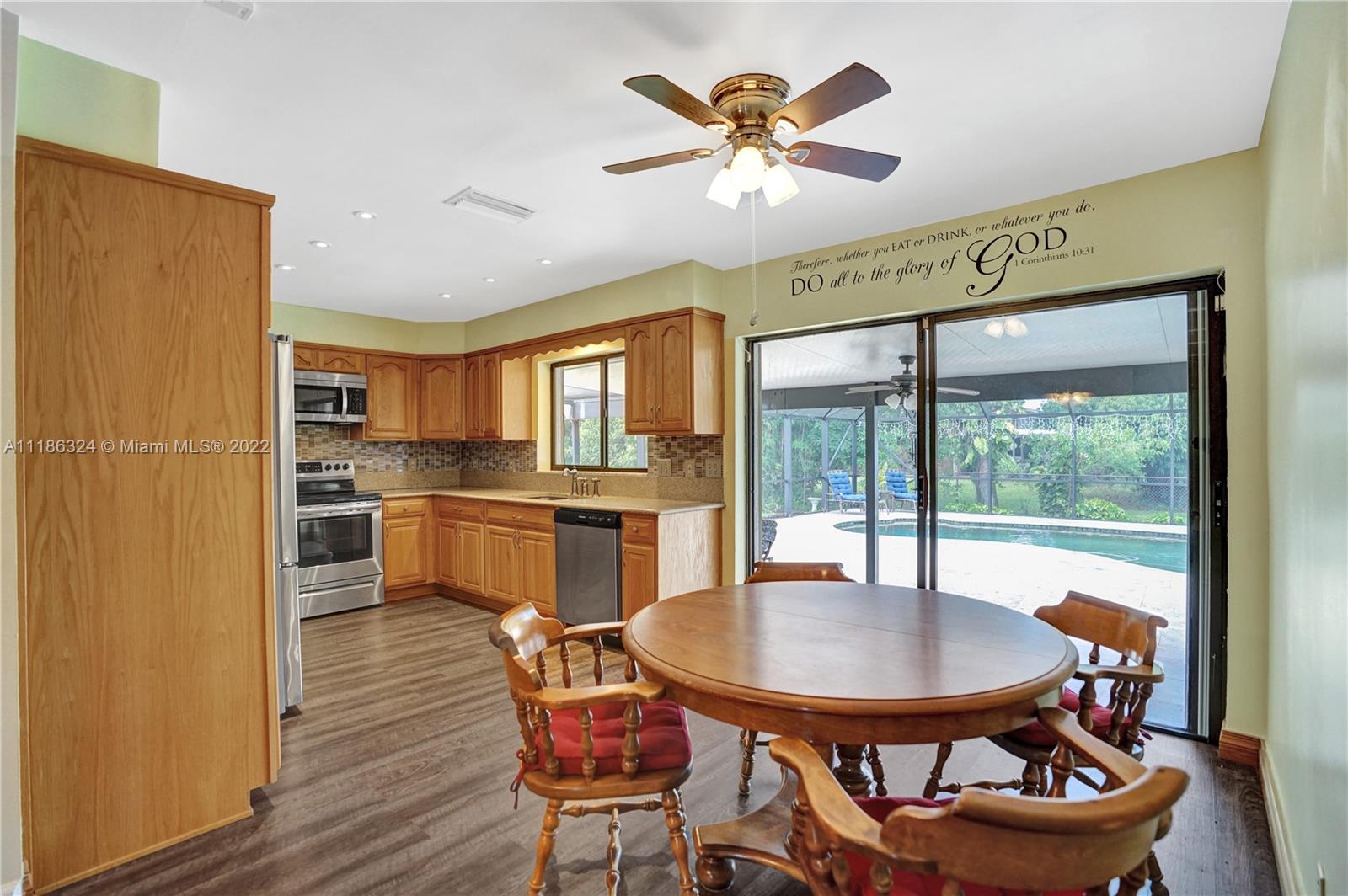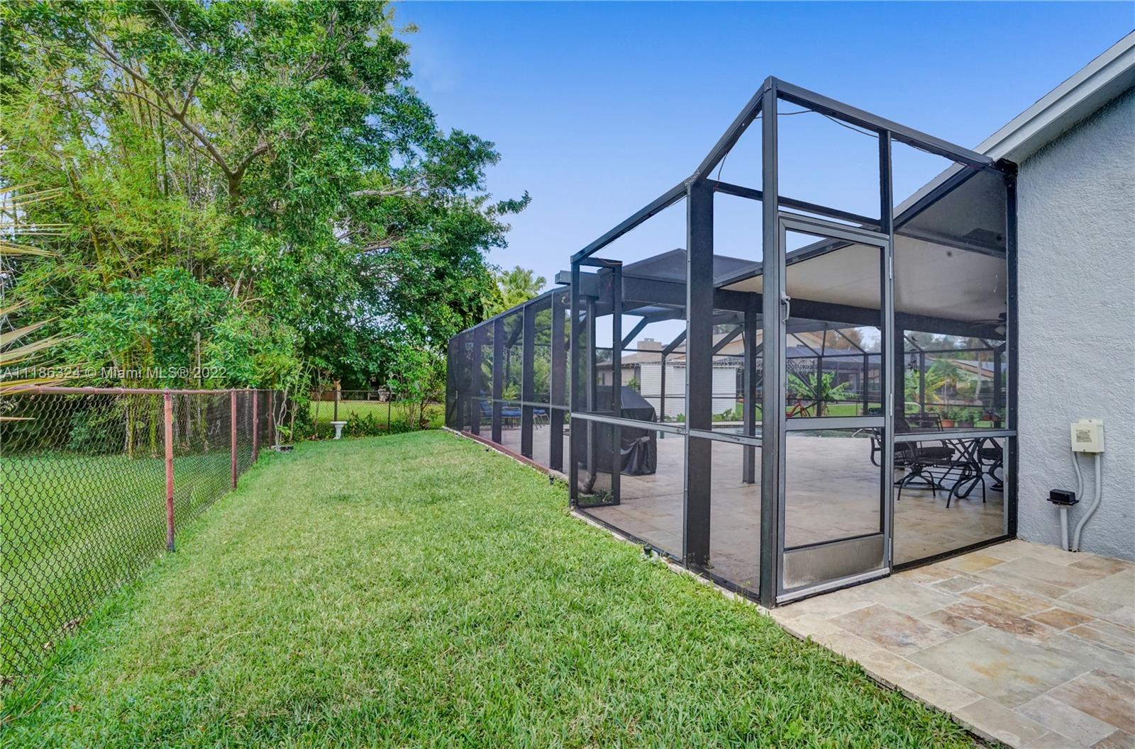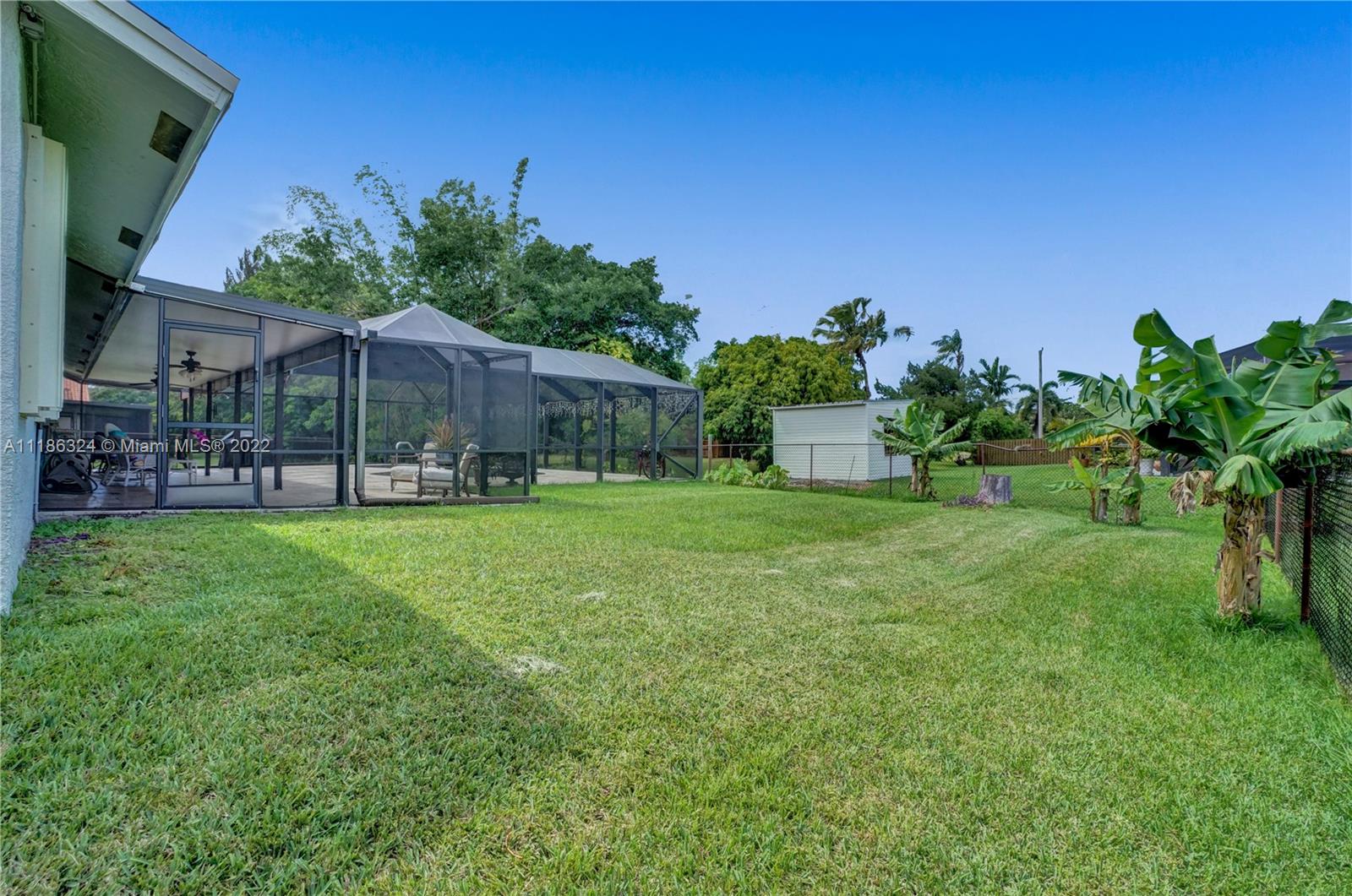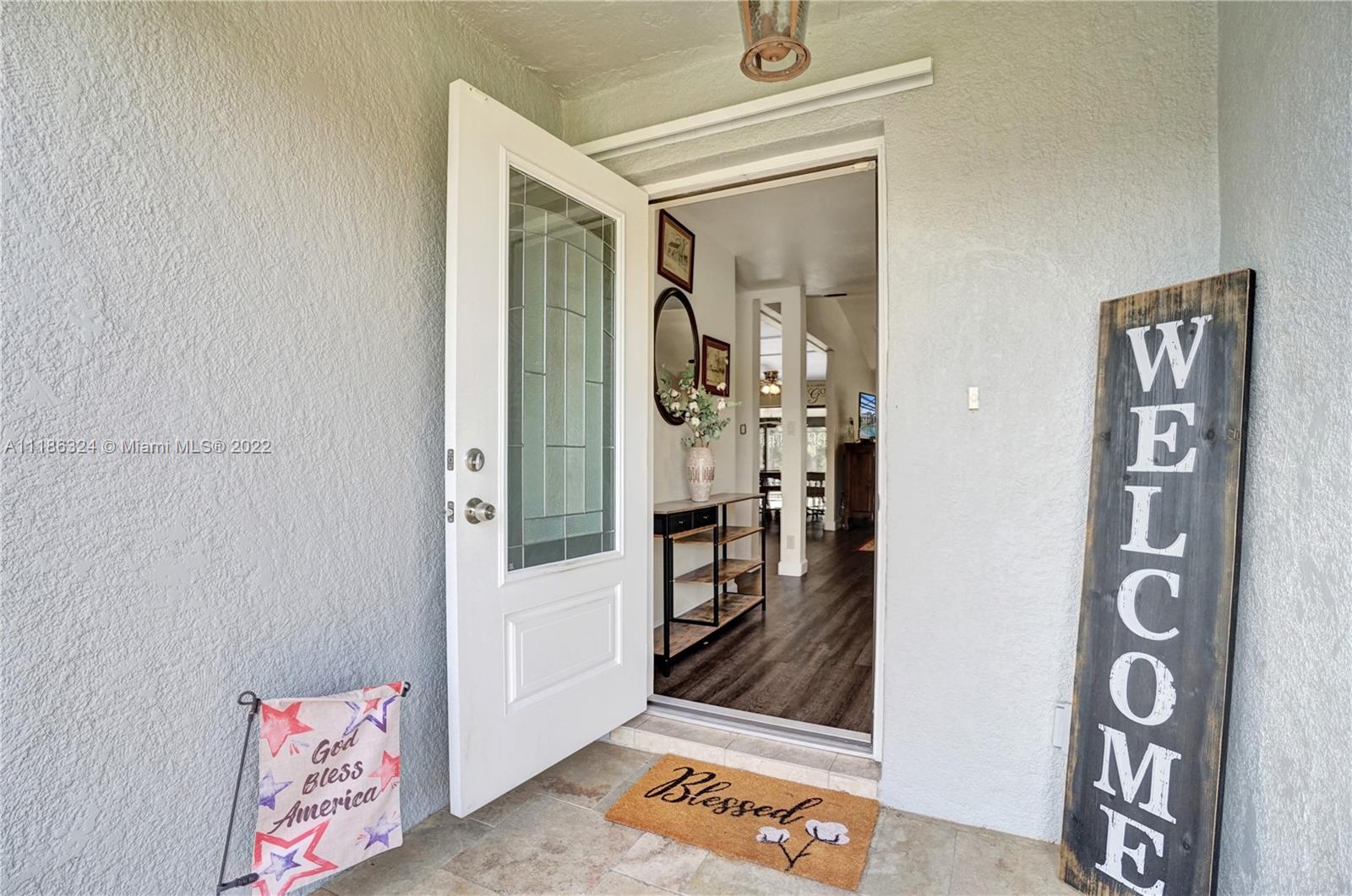 Welcome to this 4-BR/2-Bath impeccably maintained pool home on nearly 1/3 of an acre located in the sought-after equestrian neighborhood of Plantation Acres. Features include vaulted ceilings, an updated kitchen w/new appliances, breakfast area, updated bathrooms, wood laminate flooring throughout, separate formal dining and living room. The primary bedroom suite has a walk-in closet with built-ins. Hurricane shutters throughout, impact garage door, oversized two-car garage w/separate laundry area. Great for entertaining! Plenty of room to enjoy the amazing outdoor space w/expansive covered lanai, travertine patio, screened-in salt-water pool & a huge fenced backyard. Minutes to the Equestrian Center, Volunteer Park, Sawgrass Mills Mall, highways and more! NO HOA! This home is a Must See!