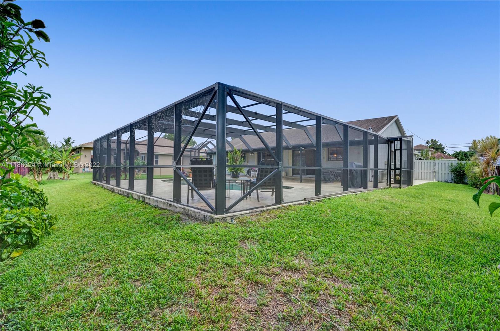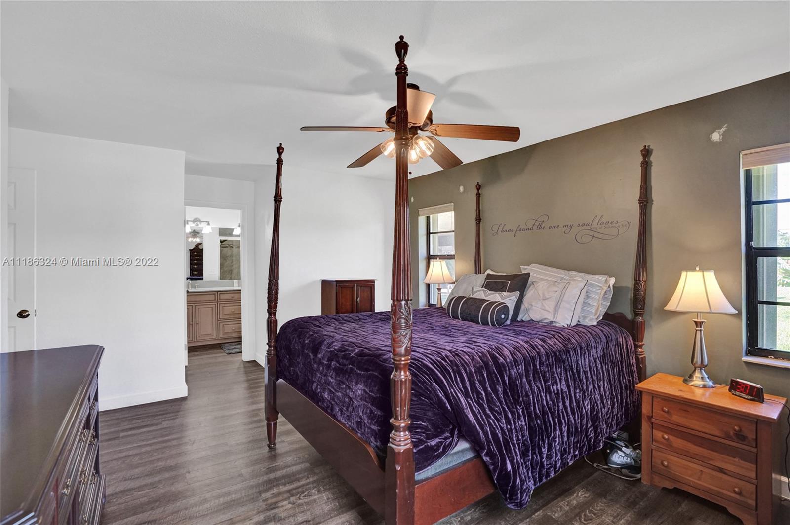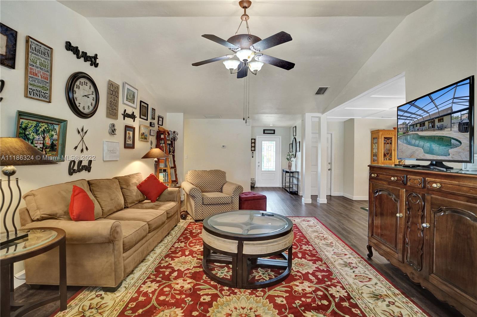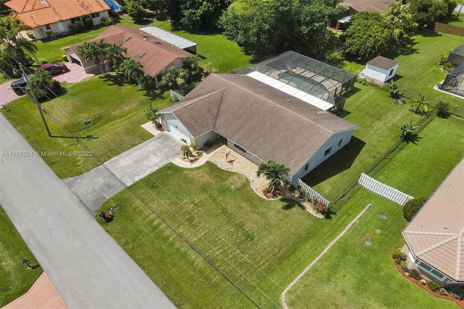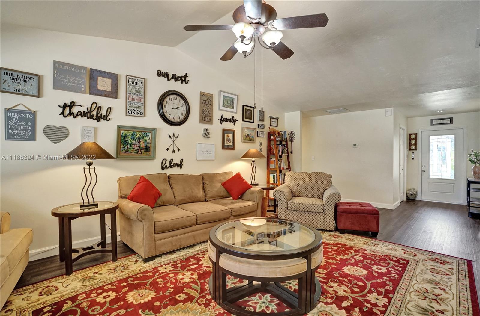 Welcome to this 4-BR/2-Bath impeccably maintained pool home on nearly 1/3 of an acre located in the sought-after equestrian neighborhood of Plantation Acres. Features include vaulted ceilings, an updated kitchen w/new appliances, breakfast area, updated bathrooms, wood laminate flooring throughout, separate formal dining and living room. The primary bedroom suite has a walk-in closet with built-ins. Hurricane shutters throughout, impact garage door, oversized two-car garage w/separate laundry area. Great for entertaining! Plenty of room to enjoy the amazing outdoor space w/expansive covered lanai, travertine patio, screened-in salt-water pool & a huge fenced backyard. Minutes to the Equestrian Center, Volunteer Park, Sawgrass Mills Mall, highways and more! NO HOA! This home is a Must See!