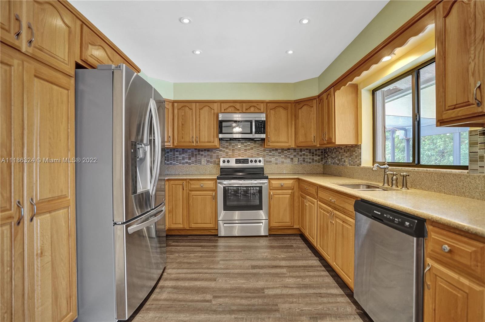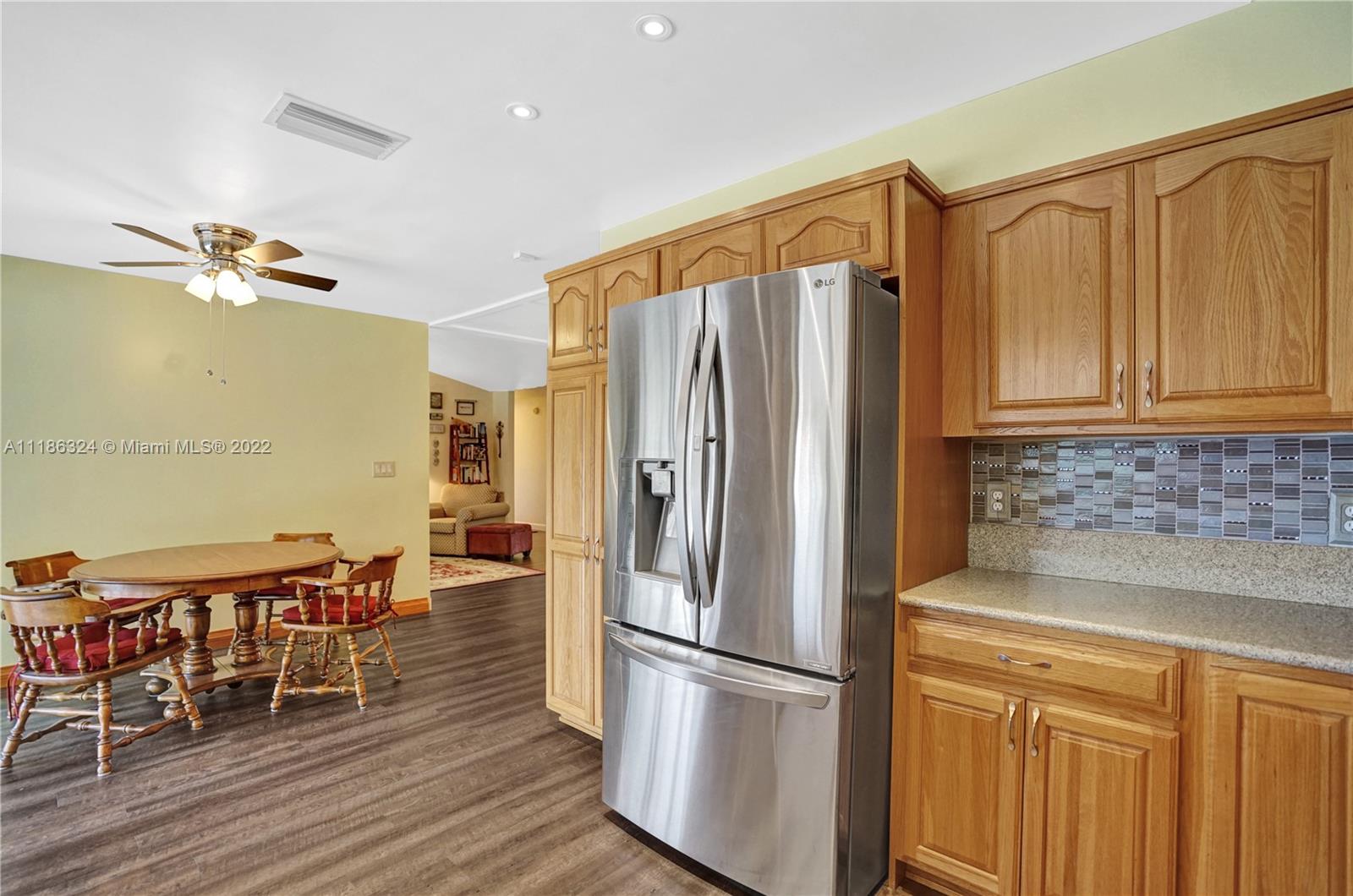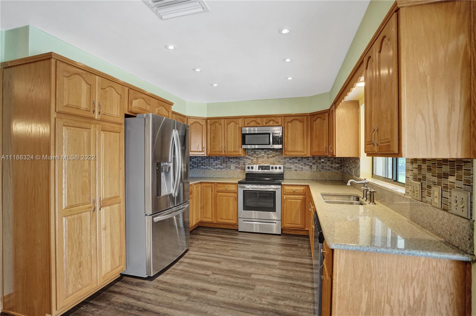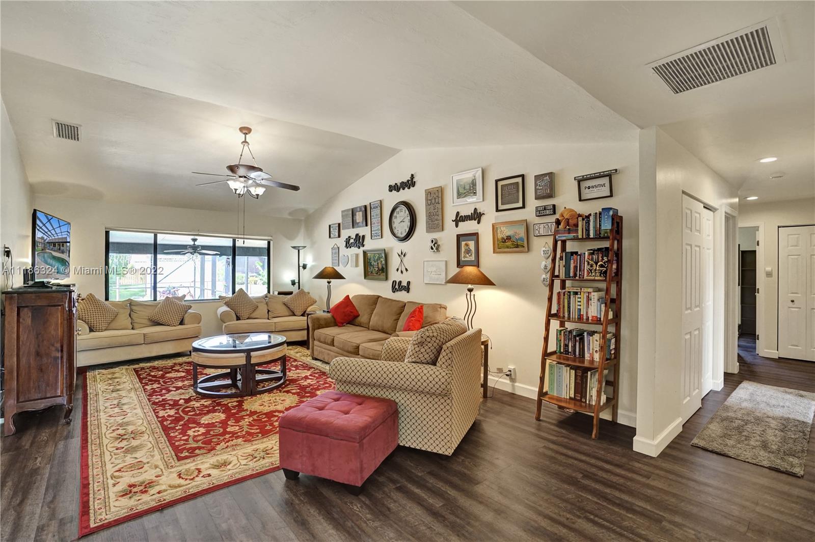 Welcome to this 4-BR/2-Bath impeccably maintained pool home on nearly 1/3 of an acre located in the sought-after equestrian neighborhood of Plantation Acres. Features include vaulted ceilings, an updated kitchen w/new appliances, breakfast area, updated bathrooms, wood laminate flooring throughout, separate formal dining and living room. The primary bedroom suite has a walk-in closet with built-ins. Hurricane shutters throughout, impact garage door, oversized two-car garage w/separate laundry area. Great for entertaining! Plenty of room to enjoy the amazing outdoor space w/expansive covered lanai, travertine patio, screened-in salt-water pool & a huge fenced backyard. Minutes to the Equestrian Center, Volunteer Park, Sawgrass Mills Mall, highways and more! NO HOA! This home is a Must See!