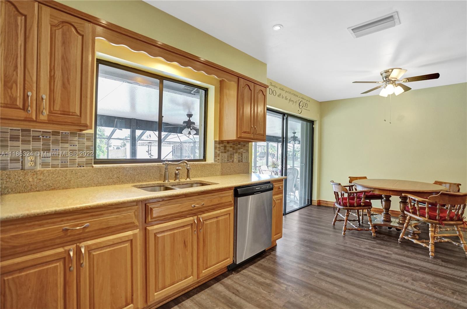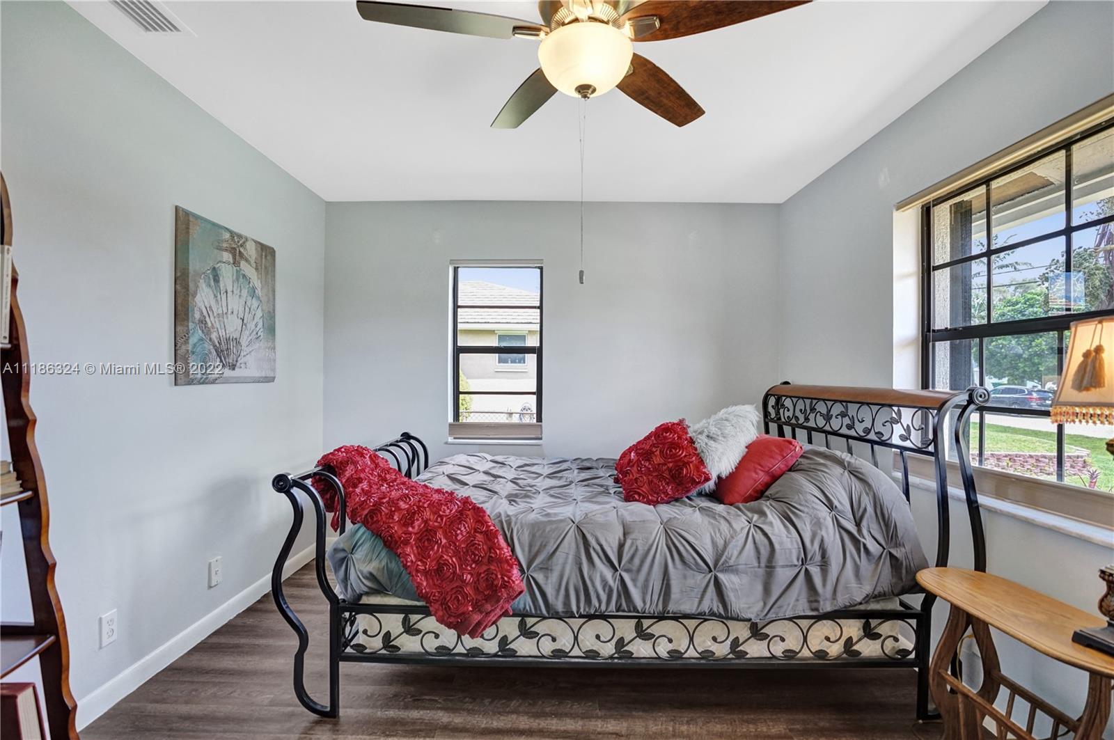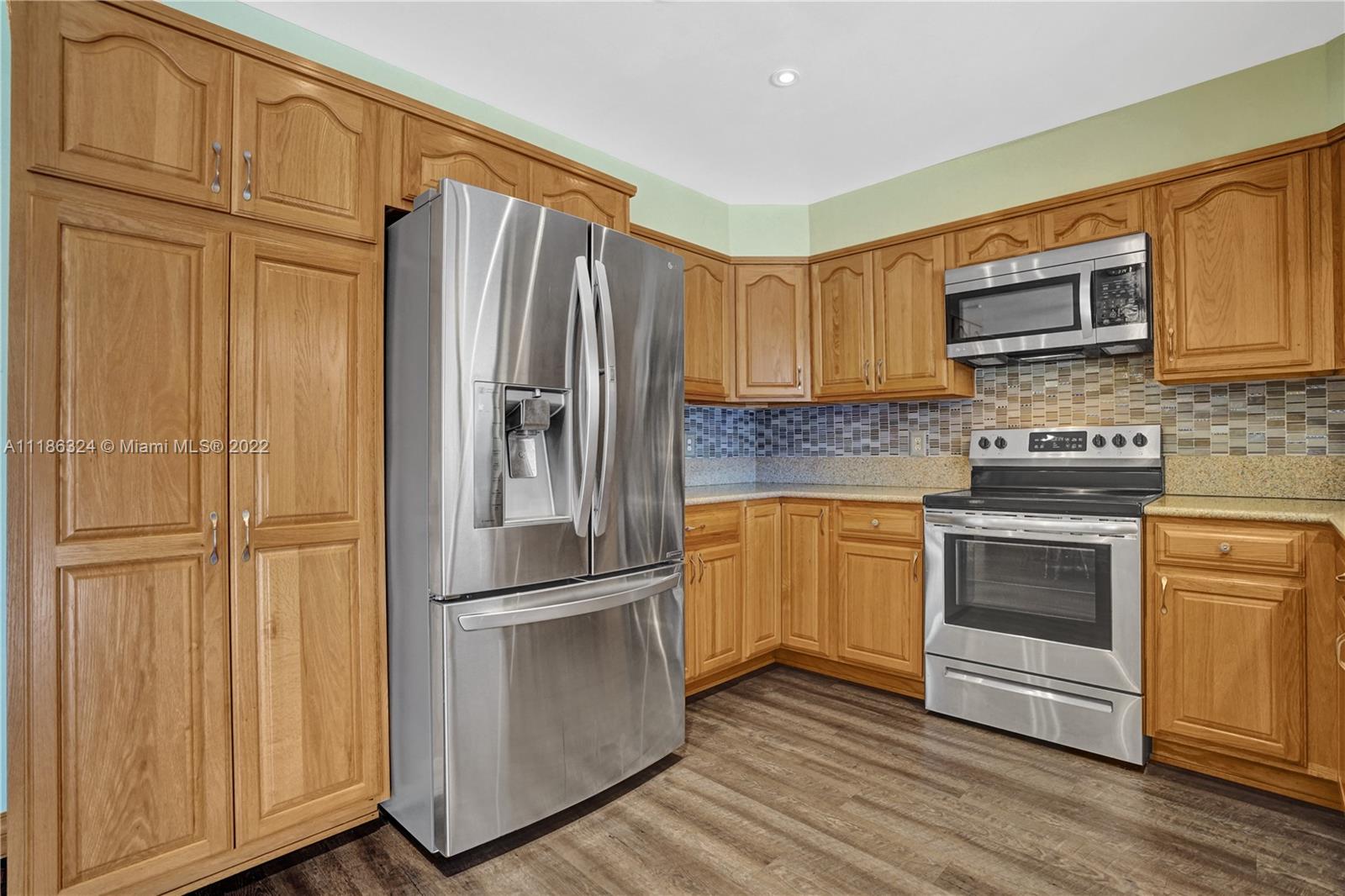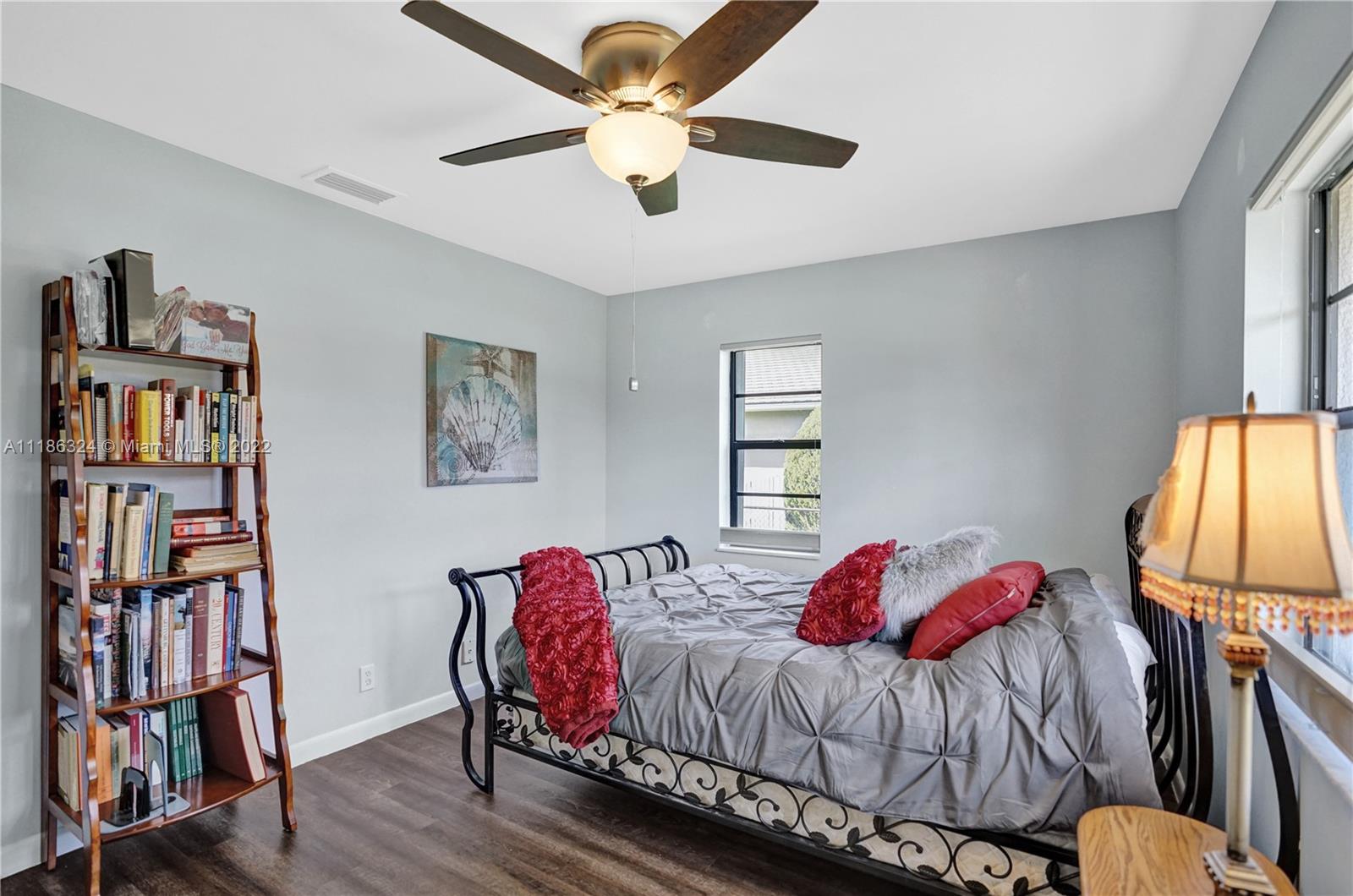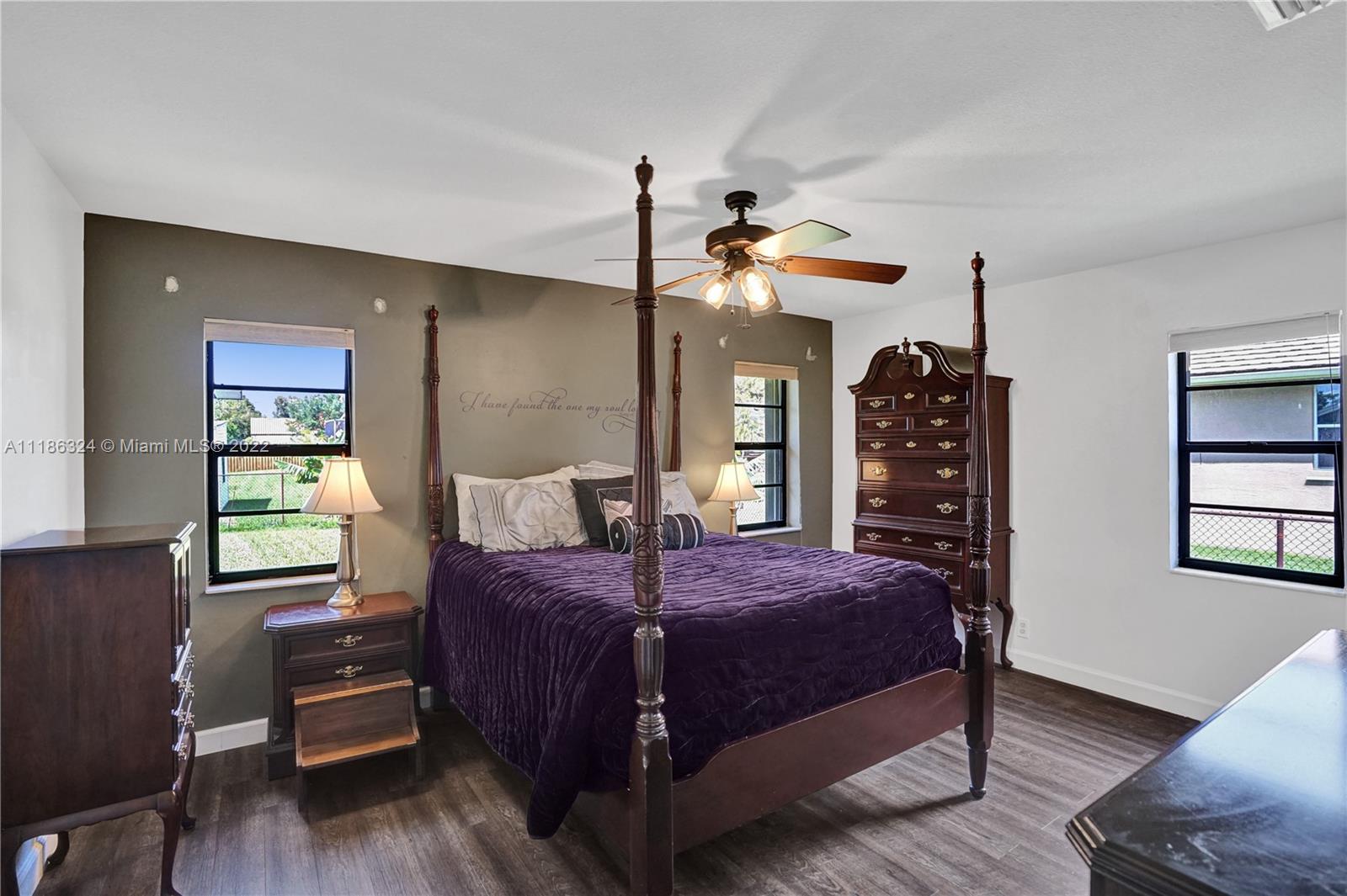 Welcome to this 4-BR/2-Bath impeccably maintained pool home on nearly 1/3 of an acre located in the sought-after equestrian neighborhood of Plantation Acres. Features include vaulted ceilings, an updated kitchen w/new appliances, breakfast area, updated bathrooms, wood laminate flooring throughout, separate formal dining and living room. The primary bedroom suite has a walk-in closet with built-ins. Hurricane shutters throughout, impact garage door, oversized two-car garage w/separate laundry area. Great for entertaining! Plenty of room to enjoy the amazing outdoor space w/expansive covered lanai, travertine patio, screened-in salt-water pool & a huge fenced backyard. Minutes to the Equestrian Center, Volunteer Park, Sawgrass Mills Mall, highways and more! NO HOA! This home is a Must See!