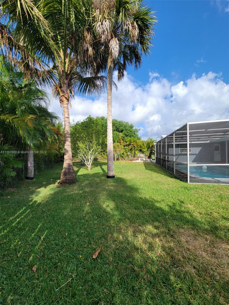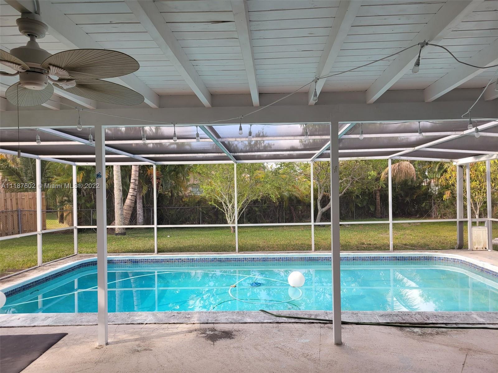 Beautiful house!!! Corner house located on a cul-de-sac with a large lot of 1/3 acre. Spacious, split, open floorplan. Impact windows and shutters for the entire house! Large master with his/her closets. Both bathrooms with dual sinks. 4 Bedroom, 2 bathrooms plus a den/office/5th bedroom; Large enclosed screened patio with a big pool. Well-established neighborhood, great neighbors, located near schools, shopping, and expressways.