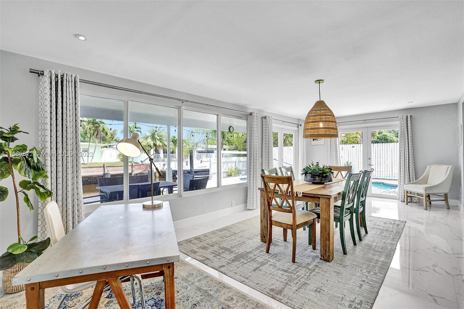 Live where everyone vacations! This stunning Lauderdale Isles home has been operated as a legal vacation rental since 2016 and has been meticulously maintained. Recently remodeled, the 4 bed/3 bath home boasts an open floor plan with vaulted ceilings and a seamless design that truly brings the outdoors in! The kitchen features white shaker cabinets, SS appliances and granite counters. The property is situated on 70 ft of water frontage with direct ocean access and no fixed bridges. Countless renovations in recent years include: new A/C (2019), new impact windows in (2019), new pool heater, salt water system and pool pump (2020), dishwasher and dryer (2020) and new gutters (2020). Multiple offers received - all offers due by April 19th at 6 pm.