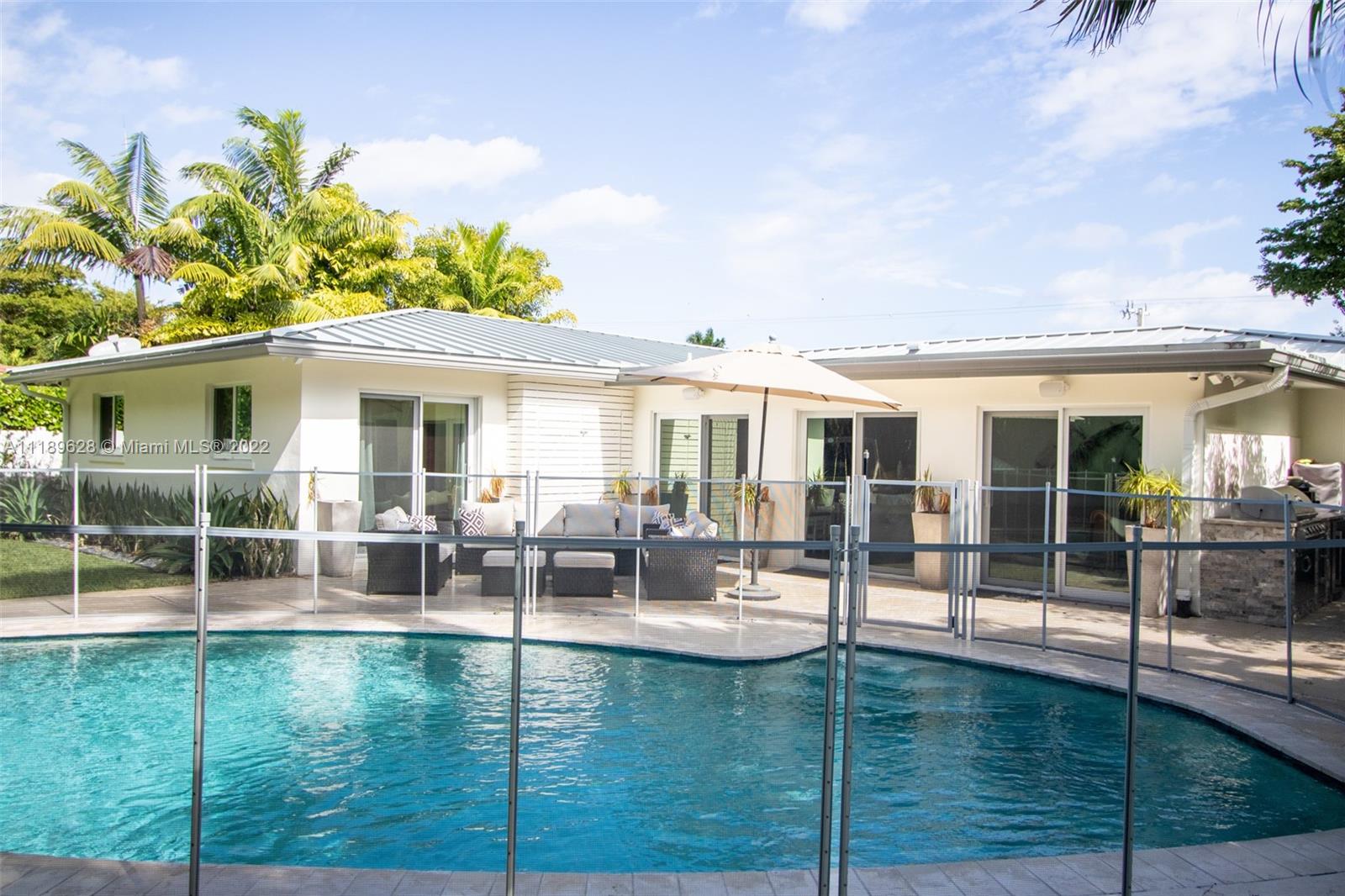 One of the nicest homes available in Harbour Inlet. Totally renovated and sold furnished, this 4 BR/3 BA, 2 car garage single story home offers high quality modern designer finishes. 2019 remodel included new electric, plumbing, underground plumbing, impact glass, roof, HVAC, heated salt water pool, generator and more. The interior features high quality fixtures and finishes including modern kitchen with Jennair appliance package with 48” built in refrigerator, laundry room with 2nd refrigerator, Samsung automation system, Sonos sound and more. Highly desirable Harbour Inlet neighborhood is within close proximity to the widest beach in Fort Lauderdale and within walking distance to restaurants and beach clubs. Minutes to Las Olas/downtown, airport, cruise port and all major roads.