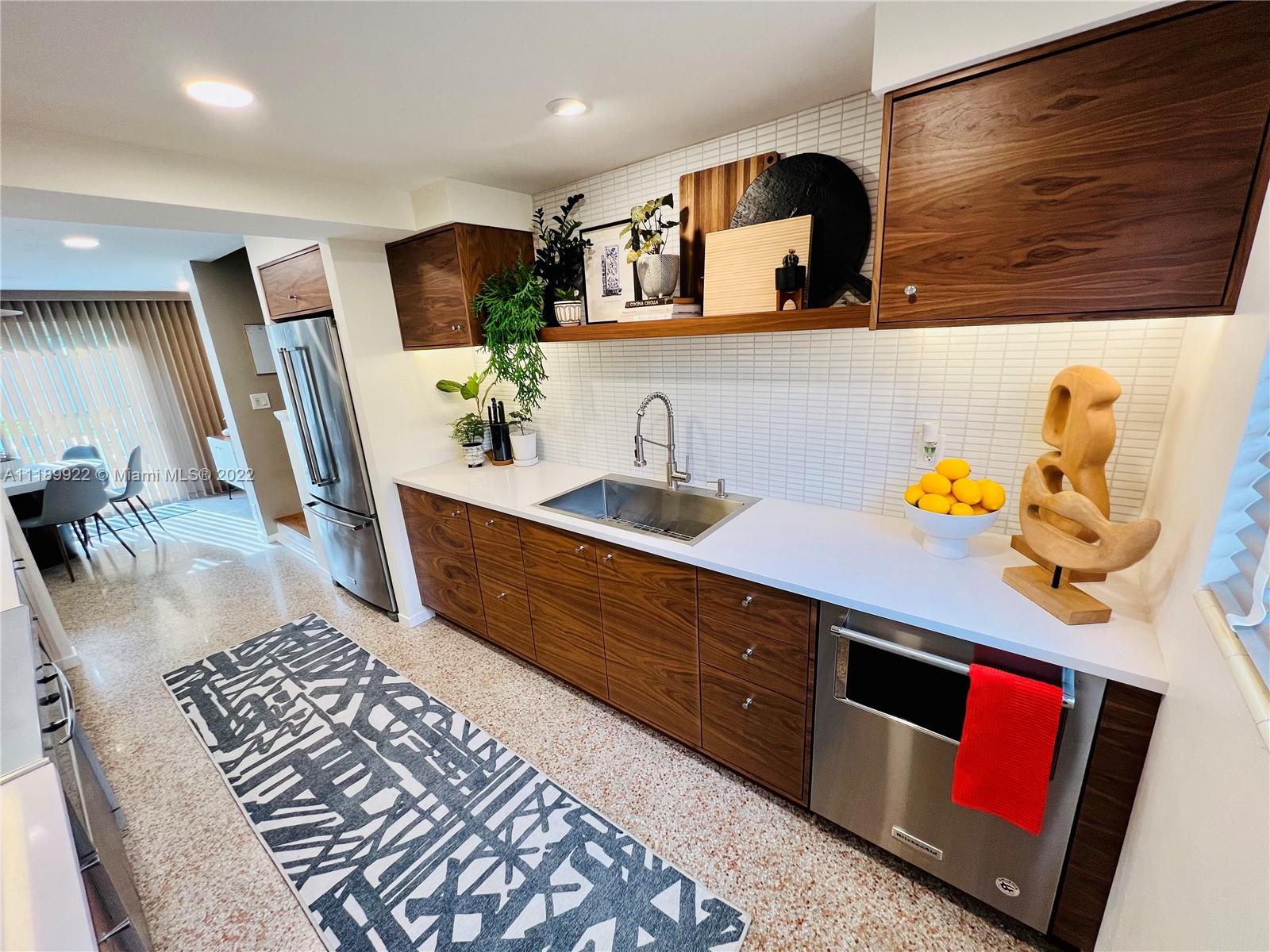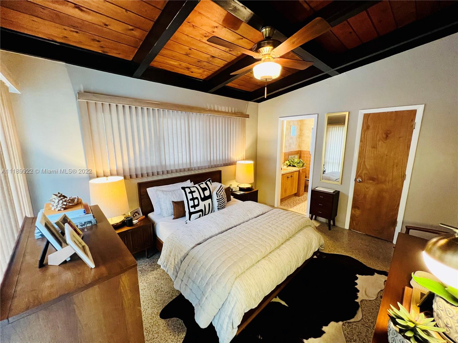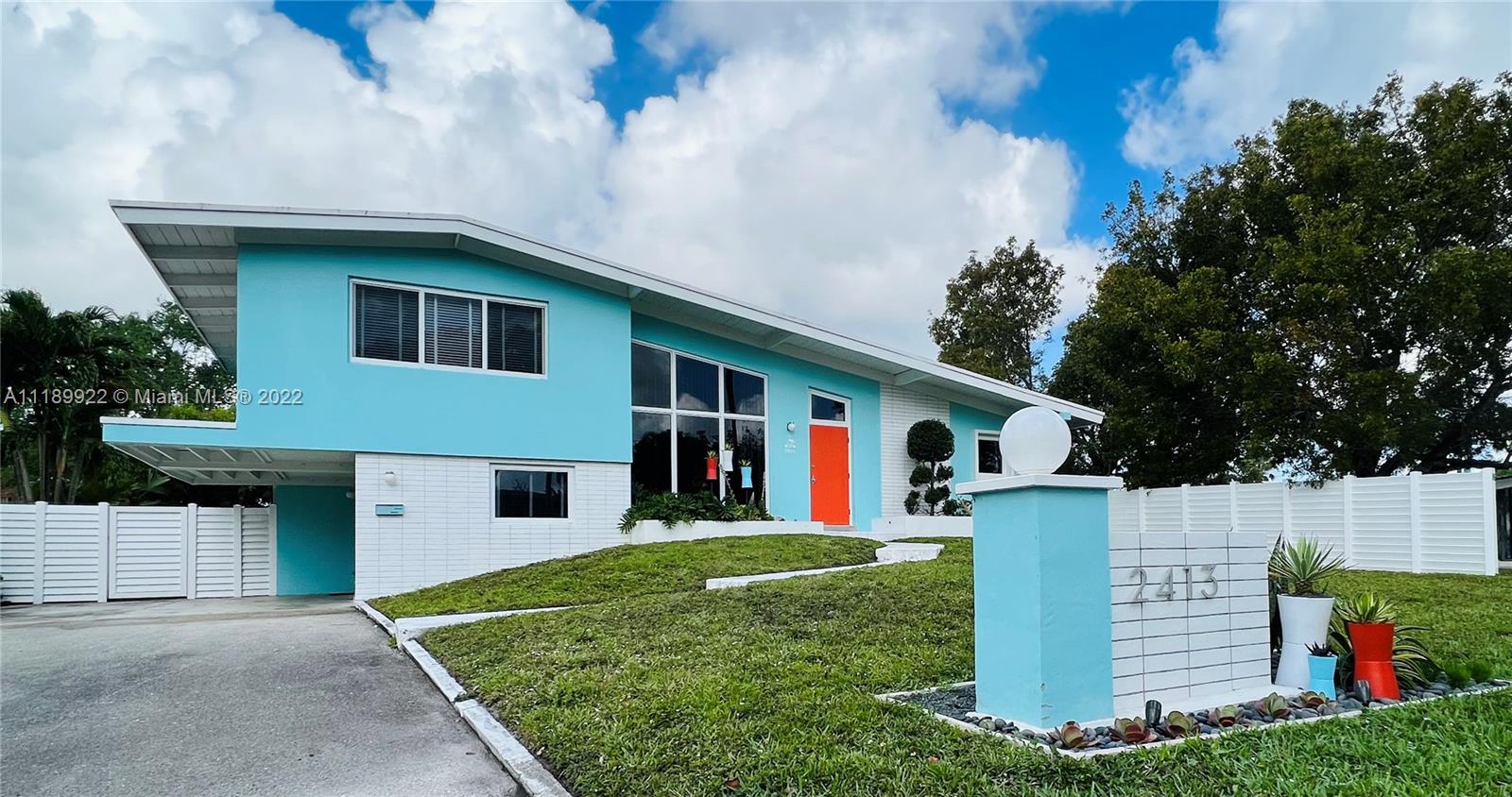 Restored 3/2 mid-century tri-level home, located in sought after neighborhood of Lauderdale Isles. The original character of the home was kept in tact while updating it for use today. Home features open beam-vaulted ceilings throughout, restored terrazzo floors, updated and restored original bathrooms, new dual zone AC/splits, new water heater, updated electrical panel, impact windows, new PVC fence, and integrated alarm system. Great for entertaining, home features a large and open great room with dry bar and mini fridge and a large, newly remodeled kitchen w/ quartz countertops and stainless appliances. Completely fenced in yard with 2 mango trees and located right by the Riverland boat ramp. Features underground electrical, cable, and fiber. A must see home, text for appointment today.