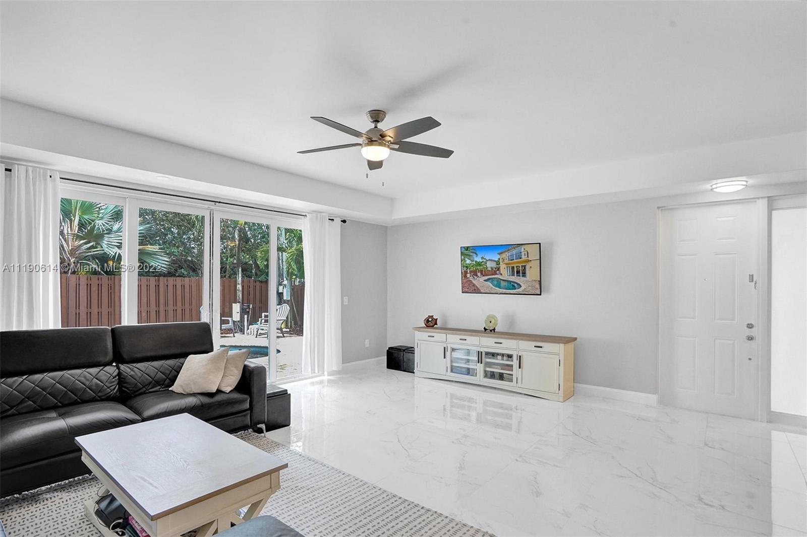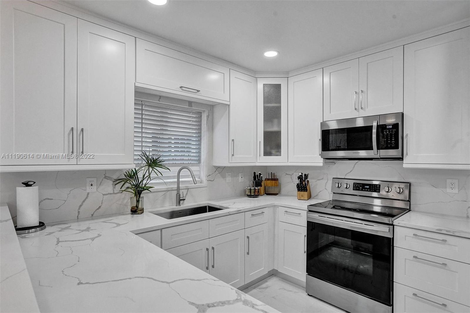 Amazing and rare corner townhouse in Coral Ridge. Completely updated two story Townhouse features 3 bedrooms and 2.5 baths with a private pool and an oversized 2 car garage. First floor consists of a brand new kitchen with quartz countertops and backsplash, half bath, large living room topped off with porcelain floors. All bedrooms are upstairs and have bamboo flooring, master bedroom has his and her closet with a large master bath (shower and a separate tub and dual sinks) with a private balcony overlooking the pool. Tall ceilings and impact windows and doors throughout. Great location with a short distance to the beach, shopping, restaurants and parks. Located in the "A-Rated" Bayview School district. No rent restriction and super low HOA fee ($55/month).