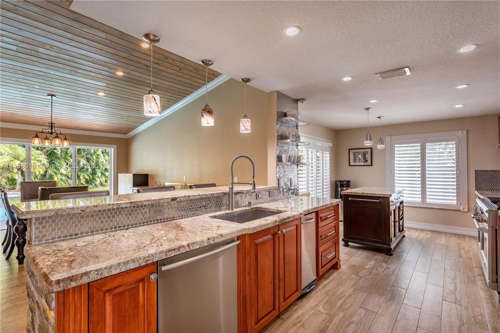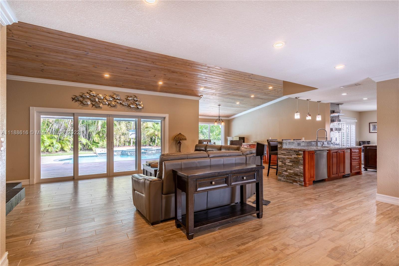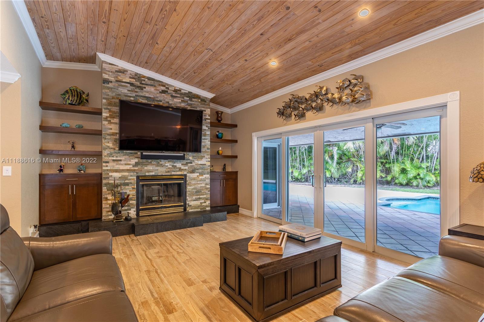 Boaters dream property w/ ocean access, only 1 fixed bridge & NO HOA!!! From the moment you pull up to the home, you will be wowed by the incredible curb appeal. This stunning home has been updated from top to bottom w/ high end finishes & appliances. As you walk inside, your eyes will be drawn to the soaring tongue & groove ceilings, wood burning fireplace & open kitchen. Beautiful wood like porcelain tile throughout the entertaining areas & oversized master bedroom. The tranquil spa like master bath includes steam room, shower & soaking tub. Master suite provides access to your own personal backyard paradise featuring a pool, spa, plenty of room for your boat, RV etc & a beautifully manicured path to your private dock with water, electric, and poles for a lift with a 12 ft spread.