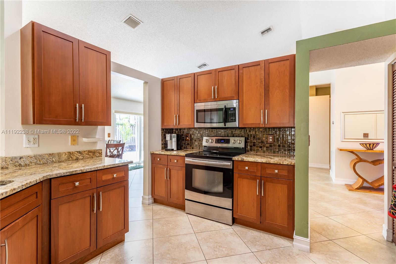 HERE IS YOUR CHANCE! Gorgeous 4 bed 2.5 bath Single Family Home well-maintained and well loved in DESIRABLE Cooper City! Featuring a 2 car garage, high ceilings, beautiful tile flooring throughout, lots of natural light with Full IMPACT WINDOWS AND DOORS, large dining room, family room, and living area. Stunning open, updated kitchen with eat-in bar, granite countertops, and stainless steel appliances! Large fenced in backyard with a gorgeous, brand new 2021 tile patio deck! Close to highways, shopping, restaurants, and A+ school district! LOW HOA. Don't miss your chance!