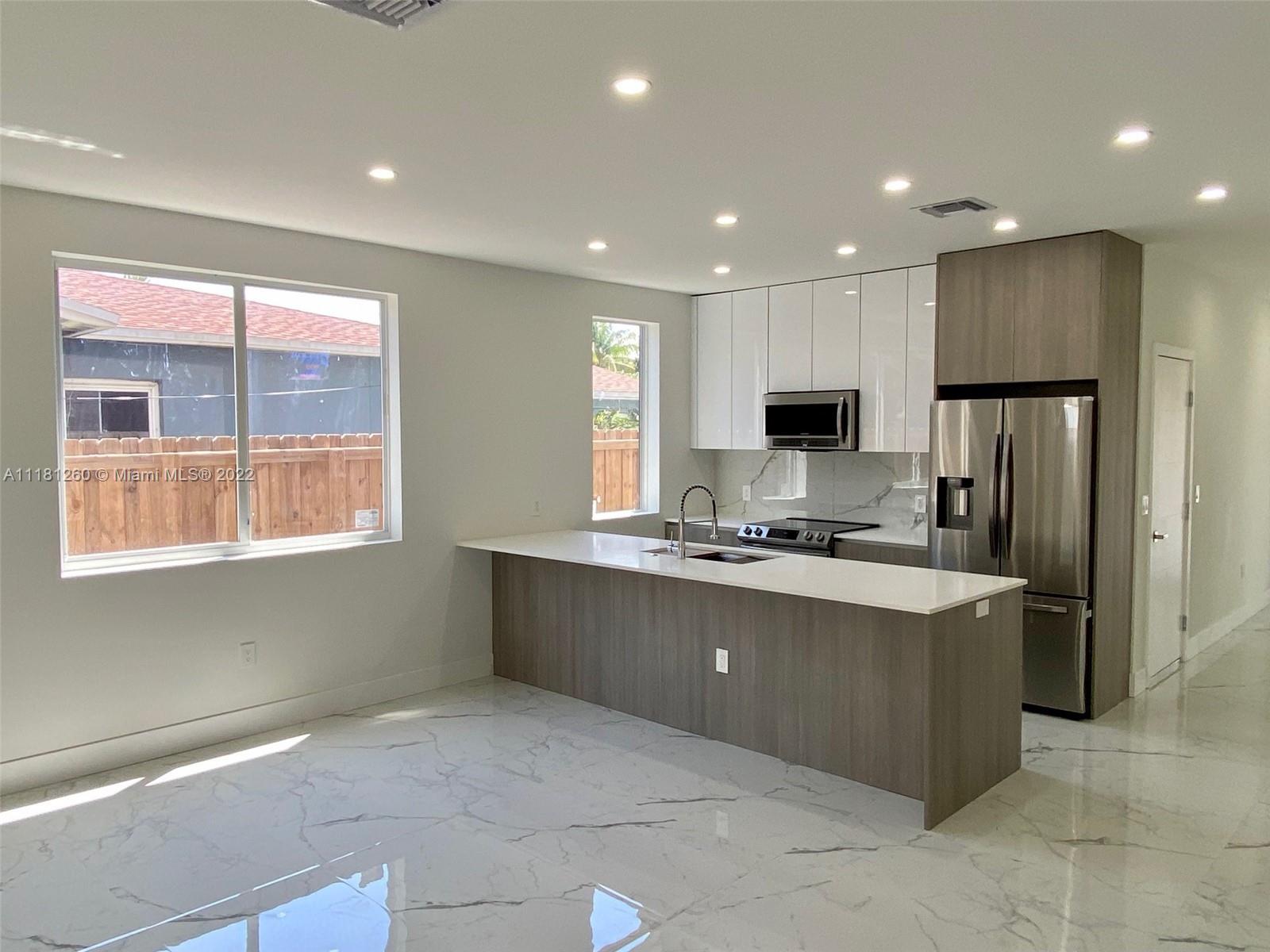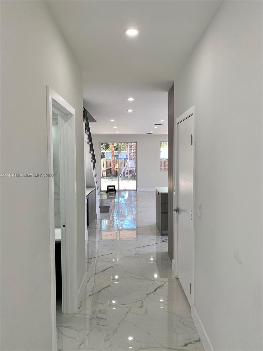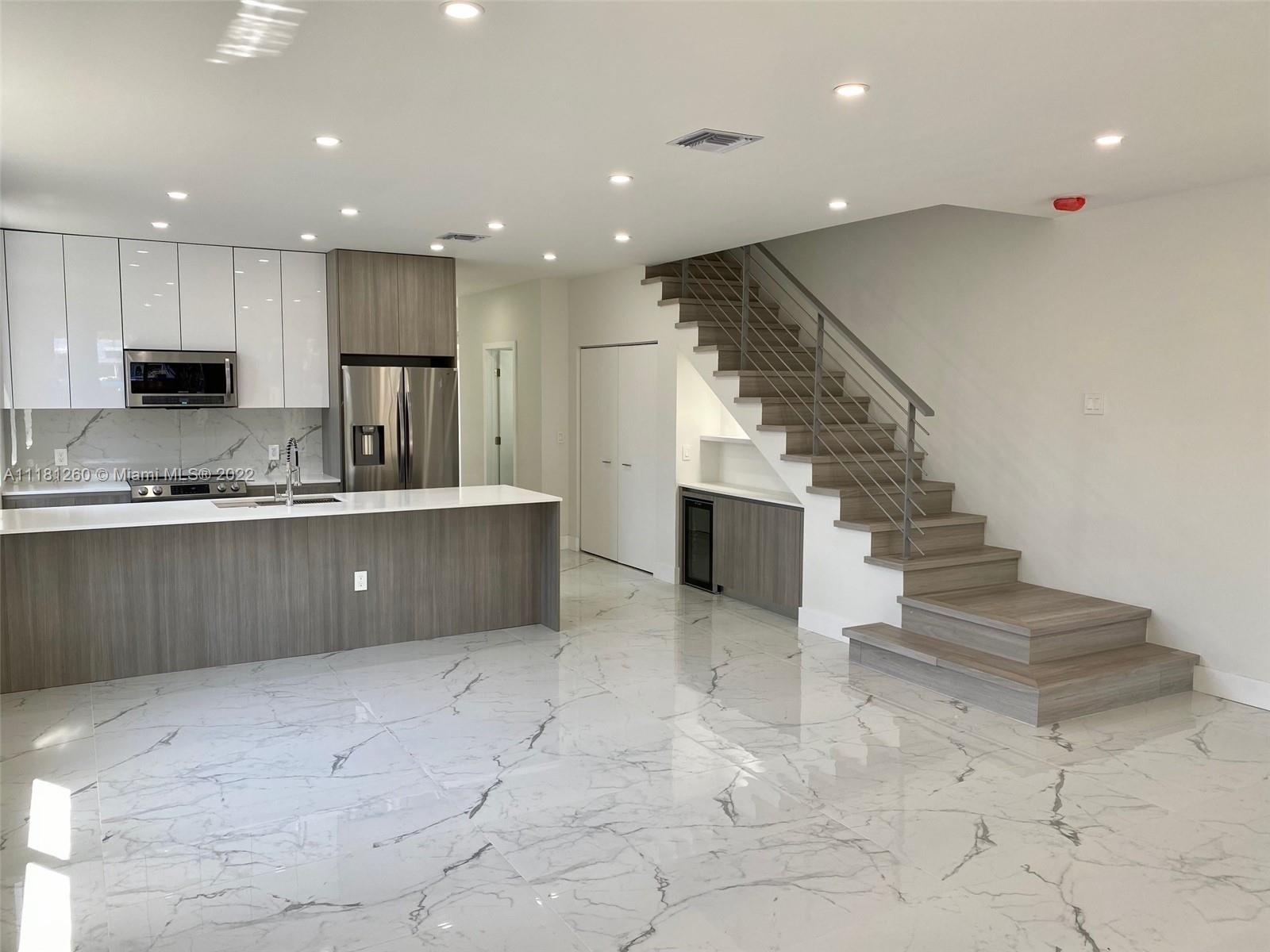 2022 NEW Contemporary Townhouse in Croissant Park, Ft Lauderdale. Modern design planned with all high-end features throughout. Interior: 3 Bedrooms and 2.5 Baths in 2438 sqft total. Elegant 9' high flat ceiling. Open floorplan with spacious kitchen with SS appliances package, quartz counter tops, peninsula and custom designed cabinets. Generous Master with private balcony, ensuite bath and walk-in closet. Porcelain Tile throughout 1st floor and 100% water-resistant PVC flooring on 2nd floors and stairs. Hurricane Impact rolling windows and doors. Laundry closet with full size W and D. Nest thermostat. Front door Ring Video Doorbell. Home Security camera system installed. Exterior with Private POOL and professionally sodded, landscaped and irrigated. No HOA fees. Ready June 2022.