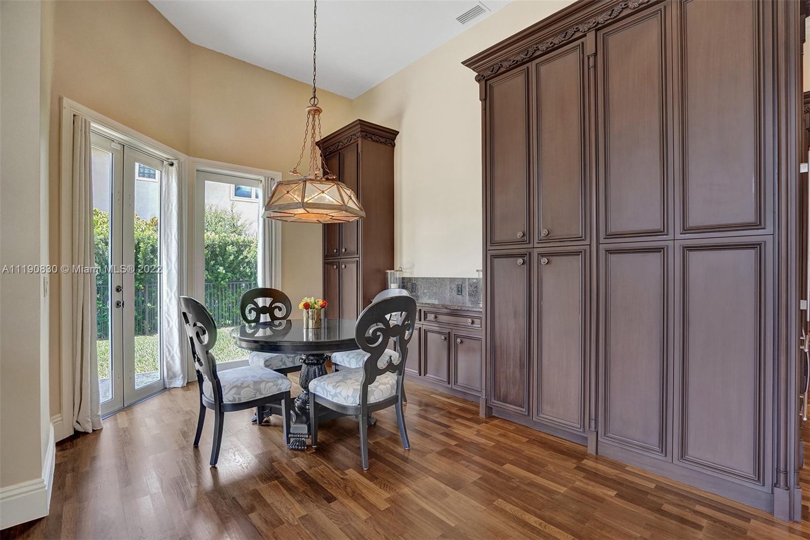 Perfectly placed on royal palm tree-lined cul de sac street in the gated community of Riviera at Weston Hills CC. 4800 sq ft under air, 5 bedrooms, 5.5 renovated baths plus an office. BRAND NEW IMPACT WINDOWS*NEWER ROOF*Real wood floors throughout living areas*volume ceilings*extensive crown moldings*exquisite custom light fixtures throughout*Plantation shutters. Gorgeous unobstructed water views. Renovated kitchen*custom wood cabinetry, center island, granite countertops, Stainless steel appliances, Double Subzero Refrigerator, double oven w/ warming drawer, wine cooler, top-of-the-line appliances, breakfast area. Master suite w/sitting area, his/hers closets, breathtaking, luxurious marble bath w/ vessel tub. Grand covered patio overlooking pool, lake w/lush landscaping. Fully fenced