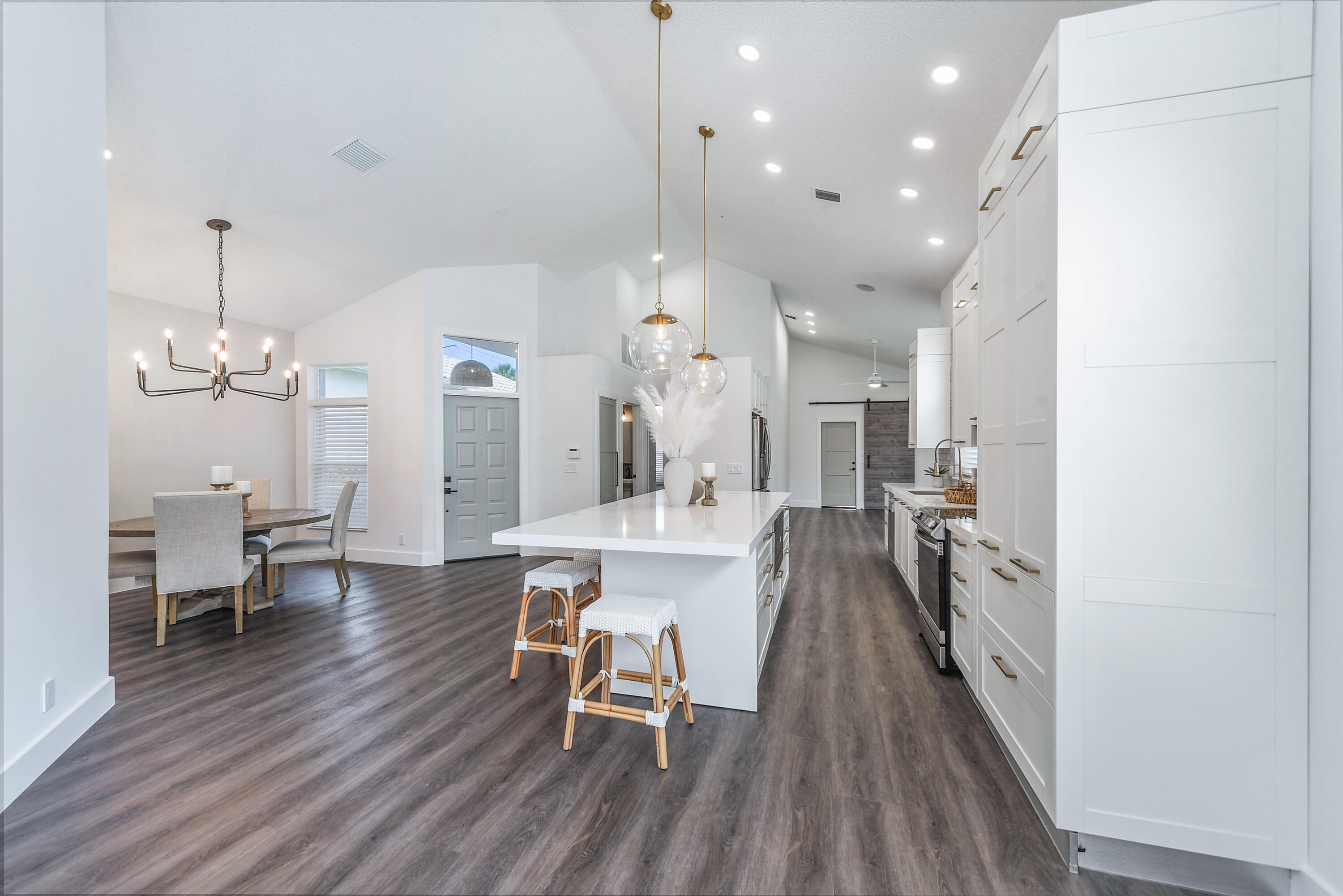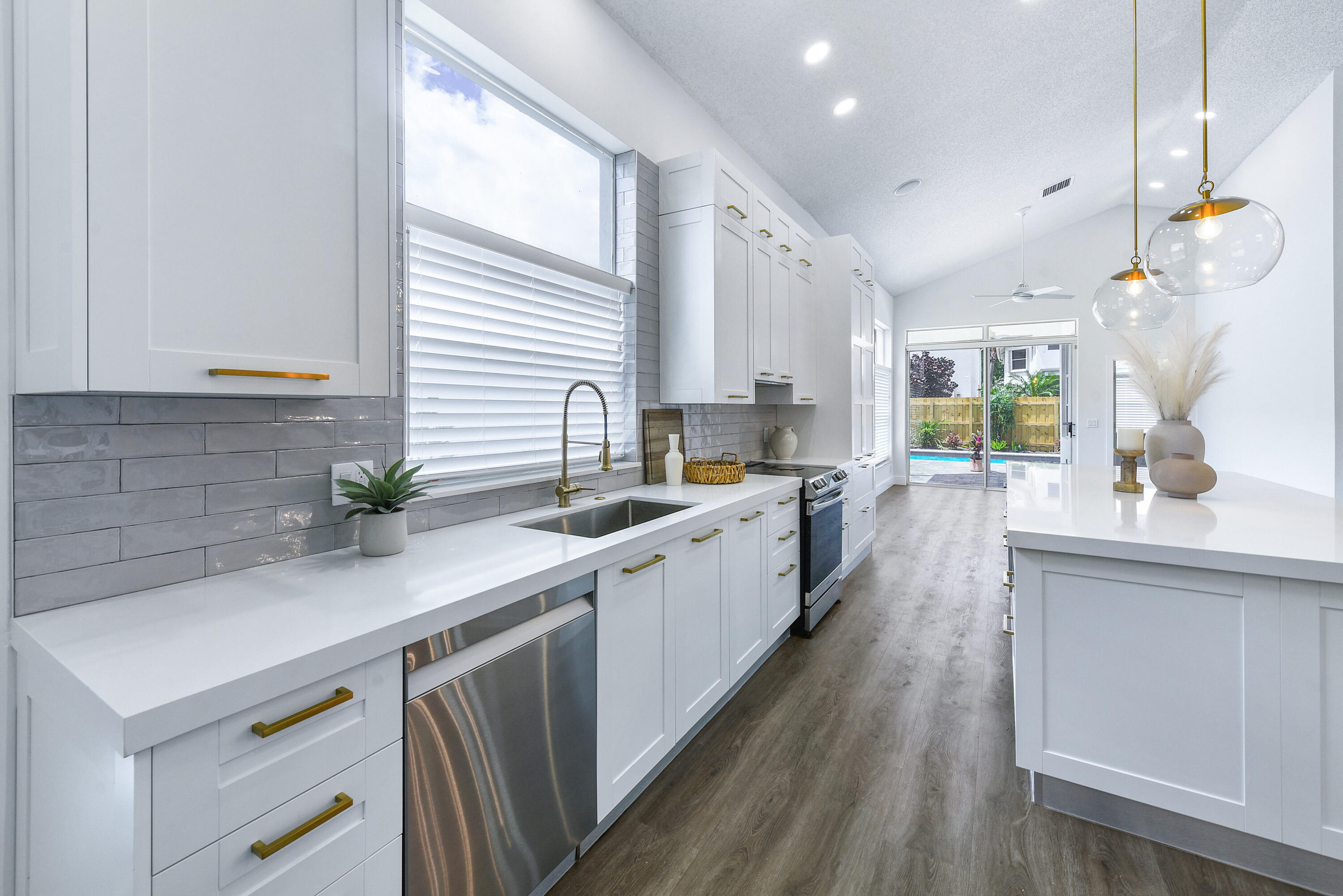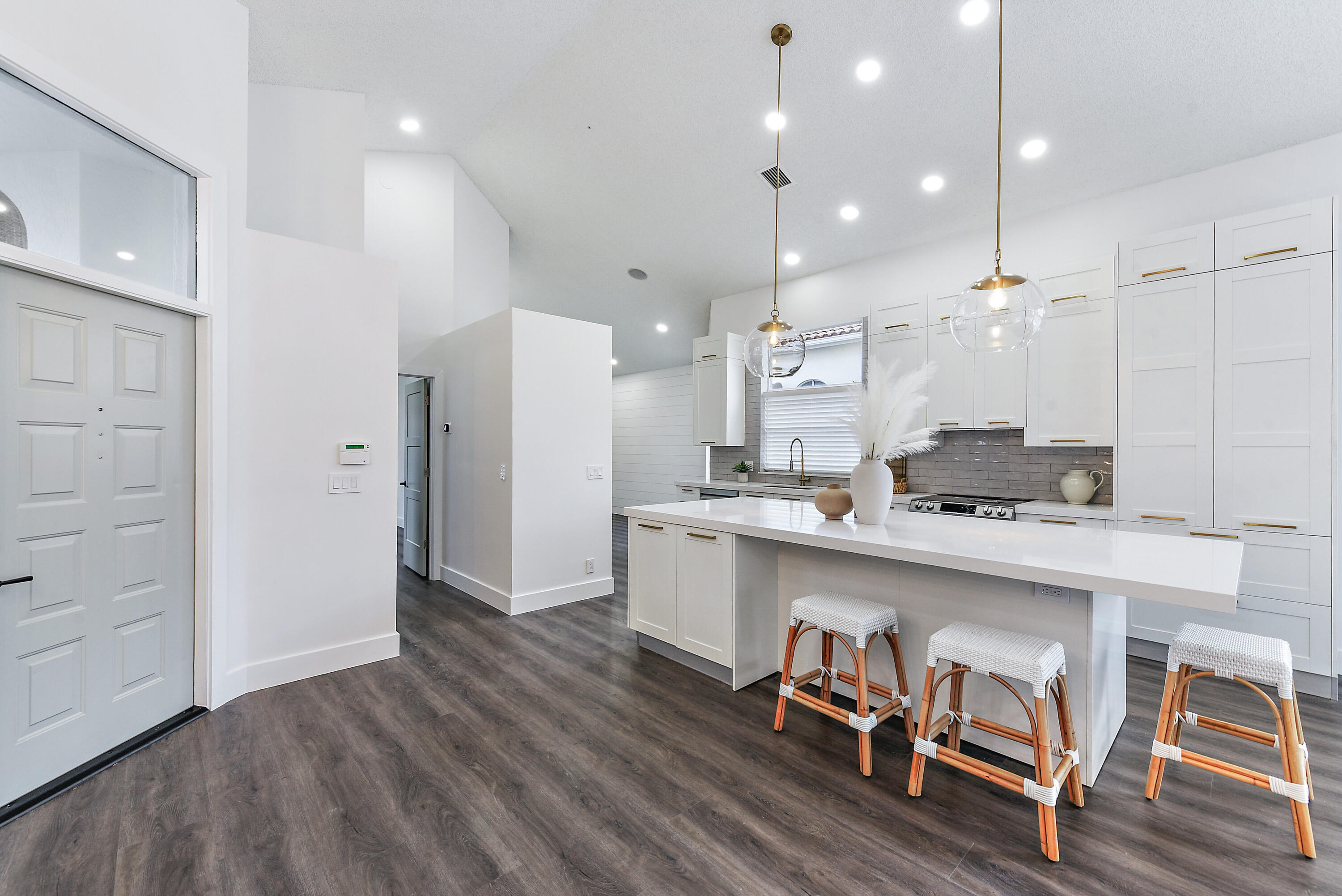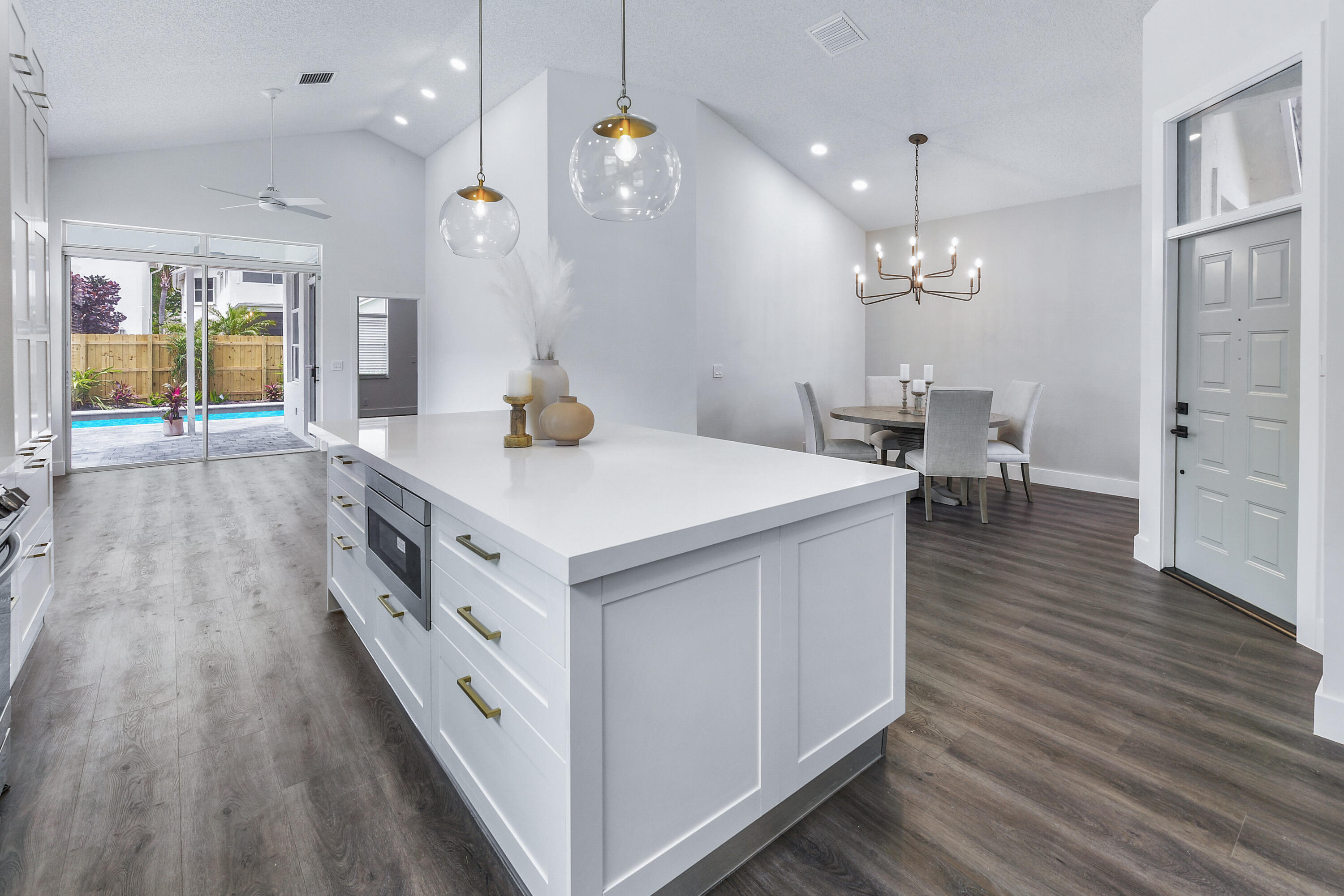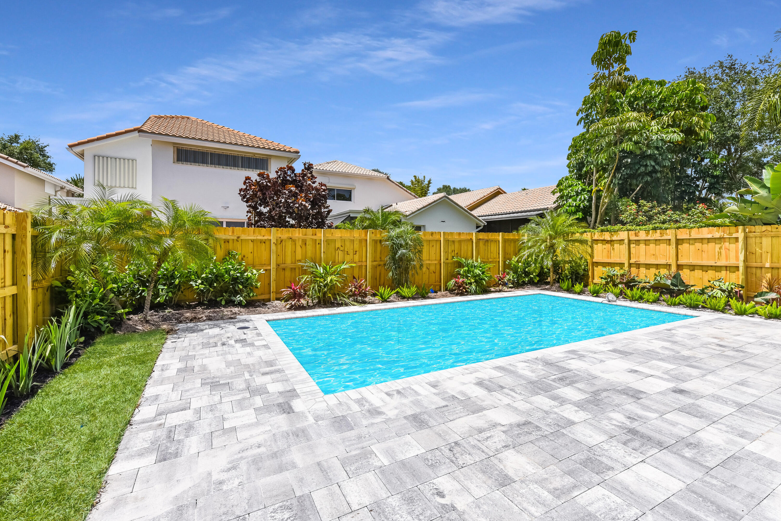 Welcome home! Enjoy country club style living in this lovely renovated 2 bedroom, 2.5 bathroom 1 story home in the premier award winning gated community of Broken Sound! Completely renovated interior - high end - with clean & neutral tones. A spacious new open concept kitchen with white shaker cabinets, extra-large island, Quartz countertops & stainless steel appliances spills into a spacious, light and bright family/living & dining room, easy for entertaining and family living. Volume ceilings throughout! Beautifully done all new stone and tile bathrooms. Large living room and master bedroom windows overlook fenced in private back yard with brand new tranquil pool, landscaping & irrigation, ready for you to move in!