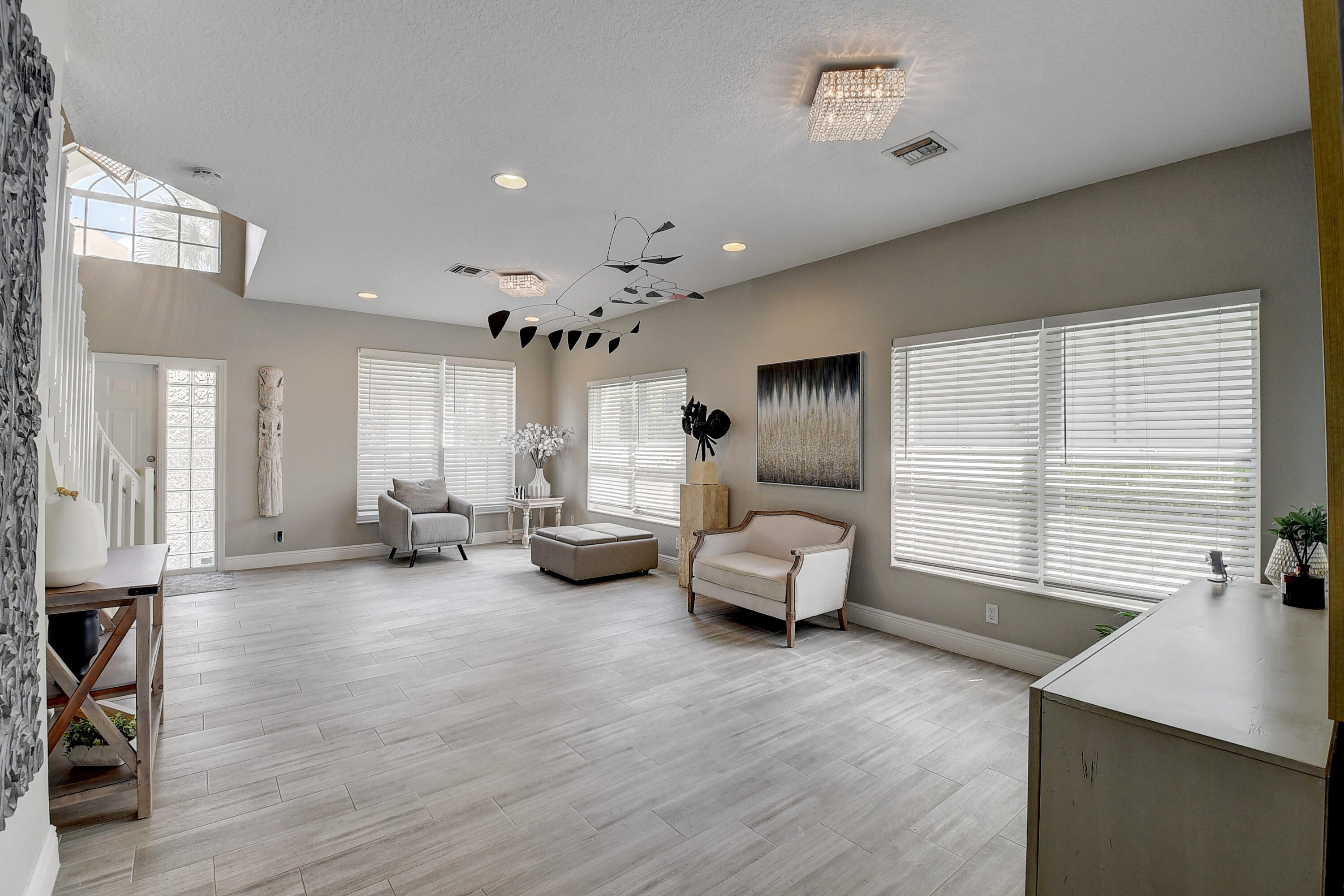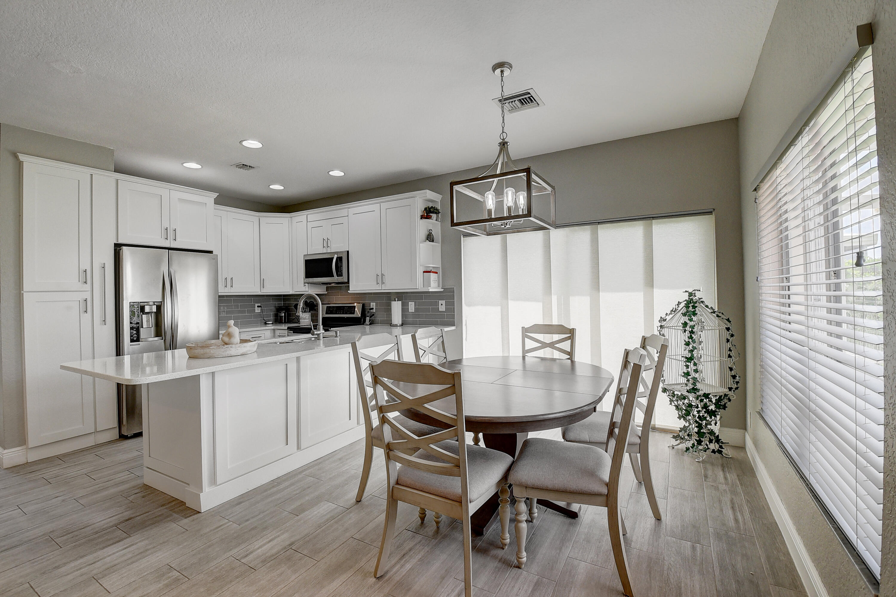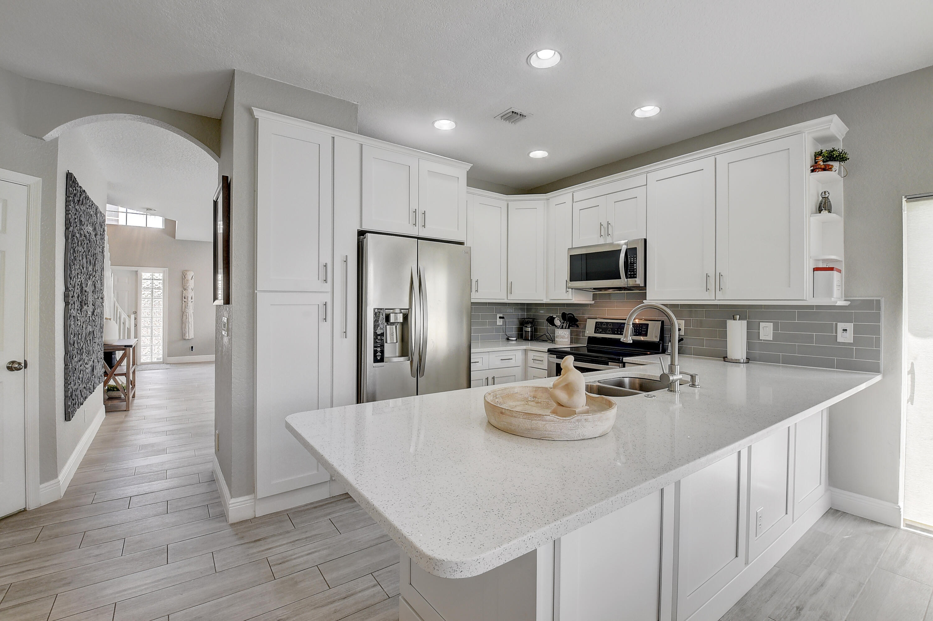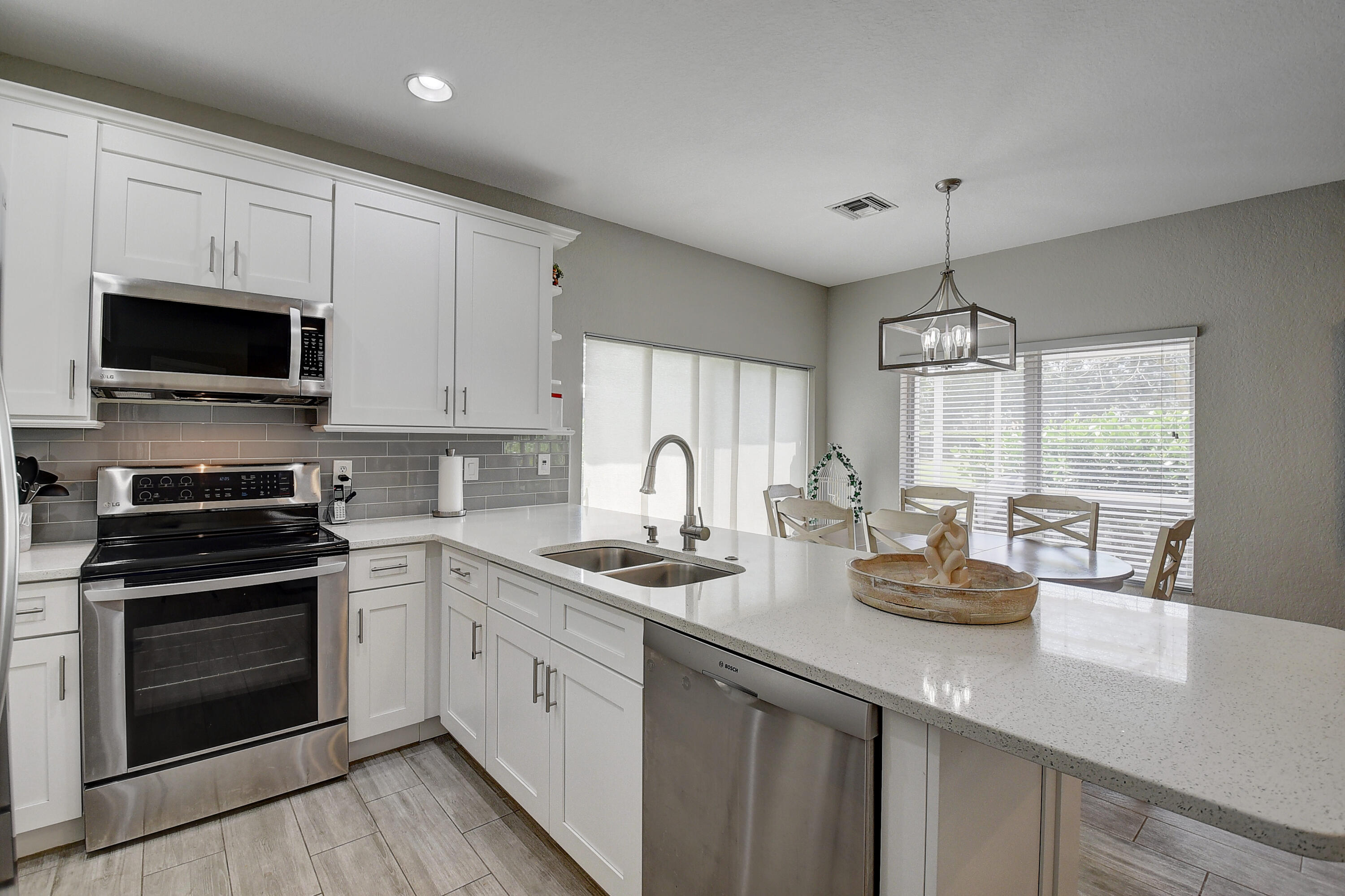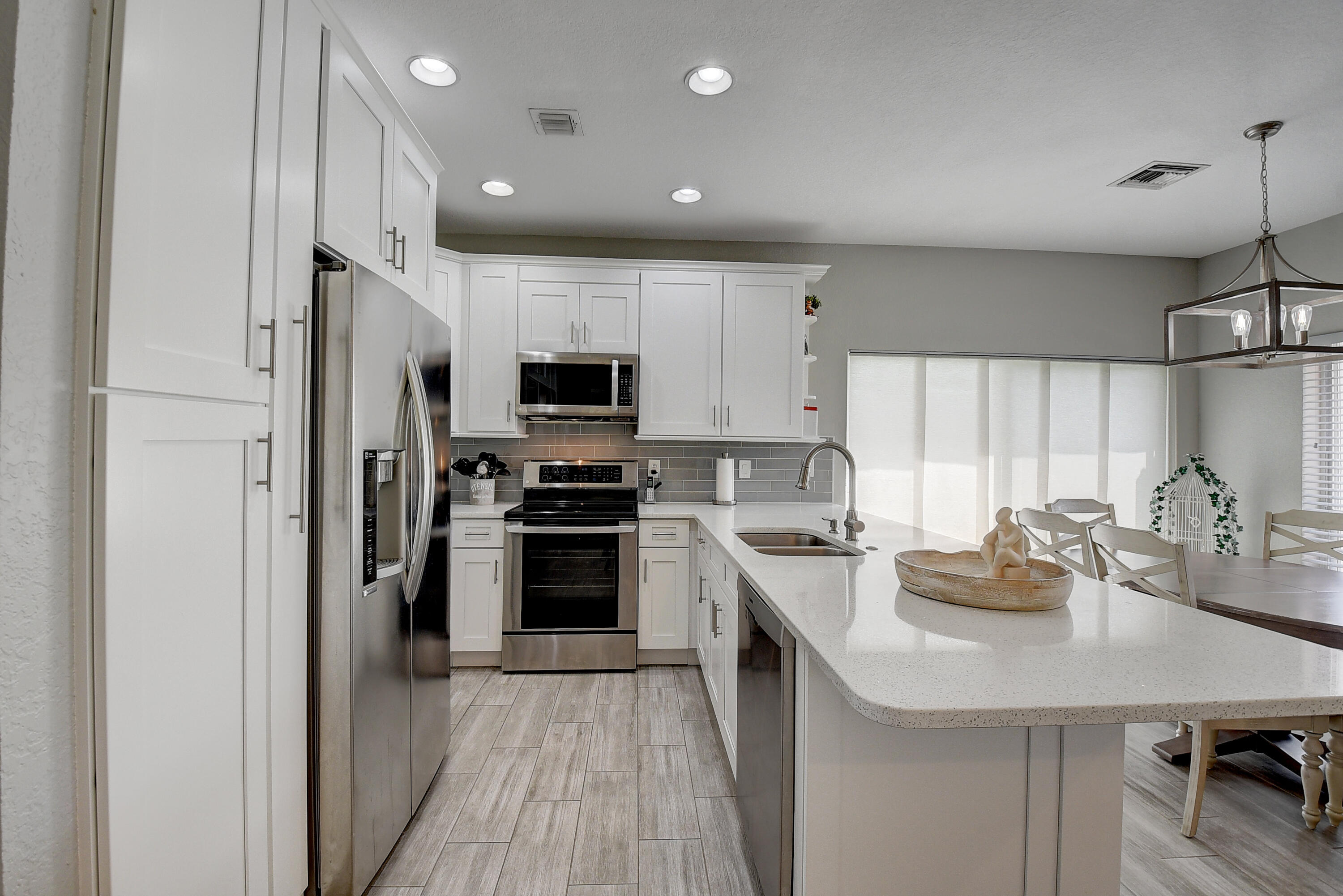 Move right into this fully updated single family home in the gated community of Boca Pointe. Immaculate and contemporary 4 BR, 2.5 BTH property with porcelain tiled floors throughout living areas. White shaker kitchen cabinets, quartz counter tops, stainless steel appliances with tiled backsplash that opens into the family room. Newer roof, a/c and hurricane shutters. Enjoy your covered lanai overlooking the golf course. No mandatory membership required.