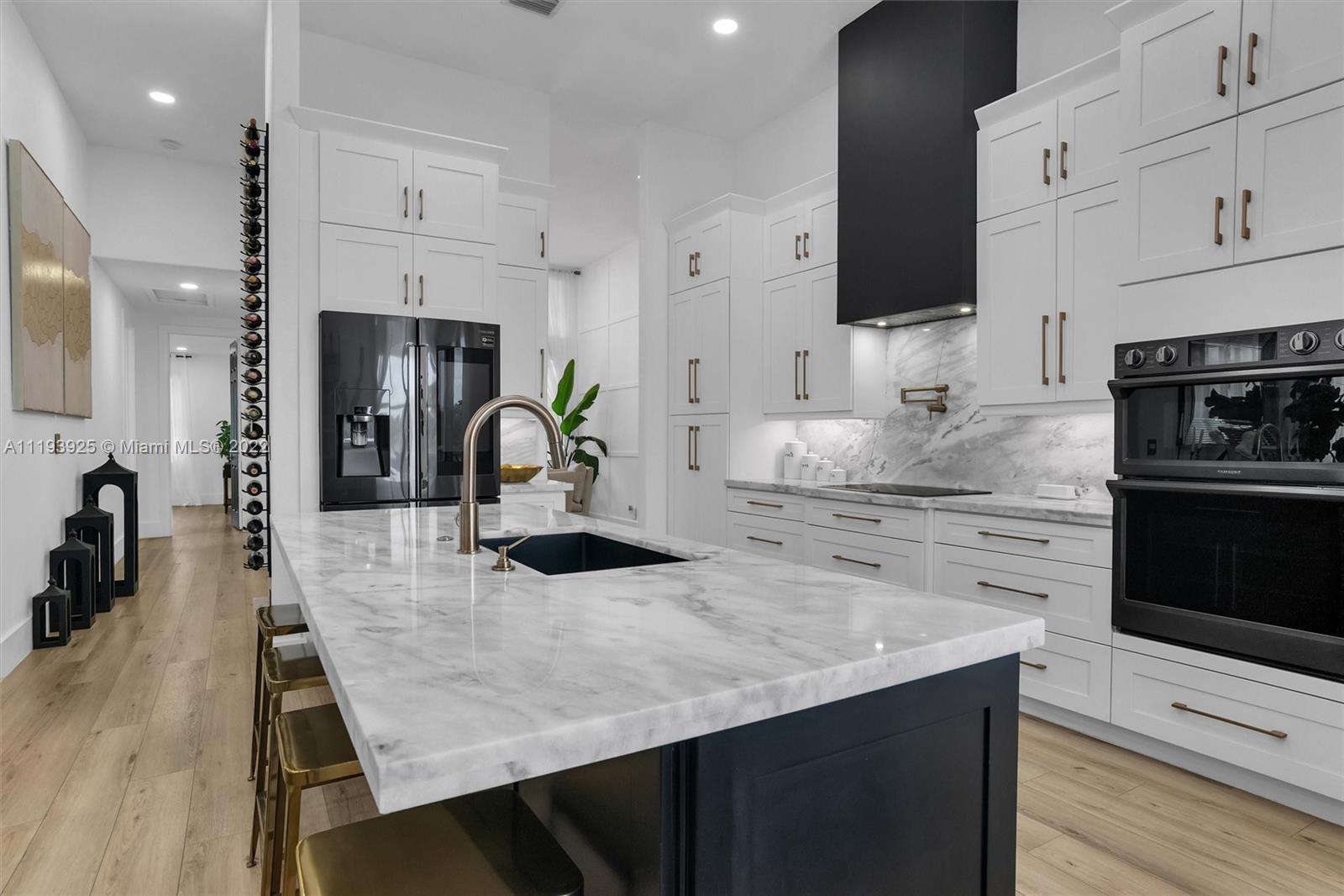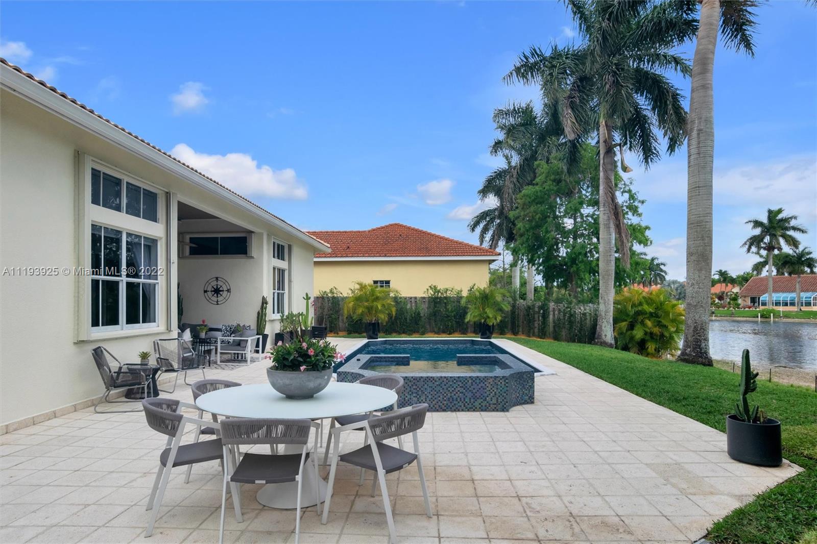 Welcome home just bring your bags. This single story waterfront home has 3245 total SQFT The friendly split floor plan is originally 4bed and 3baths but was converted into 3 oversized bedrooms done with the developer. You will love the open concept with 12ft ceilings 8ft doors and lots of natural light This home includes designer finishes throughout not sparing any details with wifi smart appliances a custom hood and marble countertops. An inviting 15x30 pool and 10 seated spa was recently remodeled in a deep mediterranean blue with reflective tiles. Your paradise backyard includes a covered lanai and a 26x63 patio with plenty of seating areas overlooking the expansive water view and access to the cabana bath The lot size still offers a surplus of green space for the dogs and kids to play.