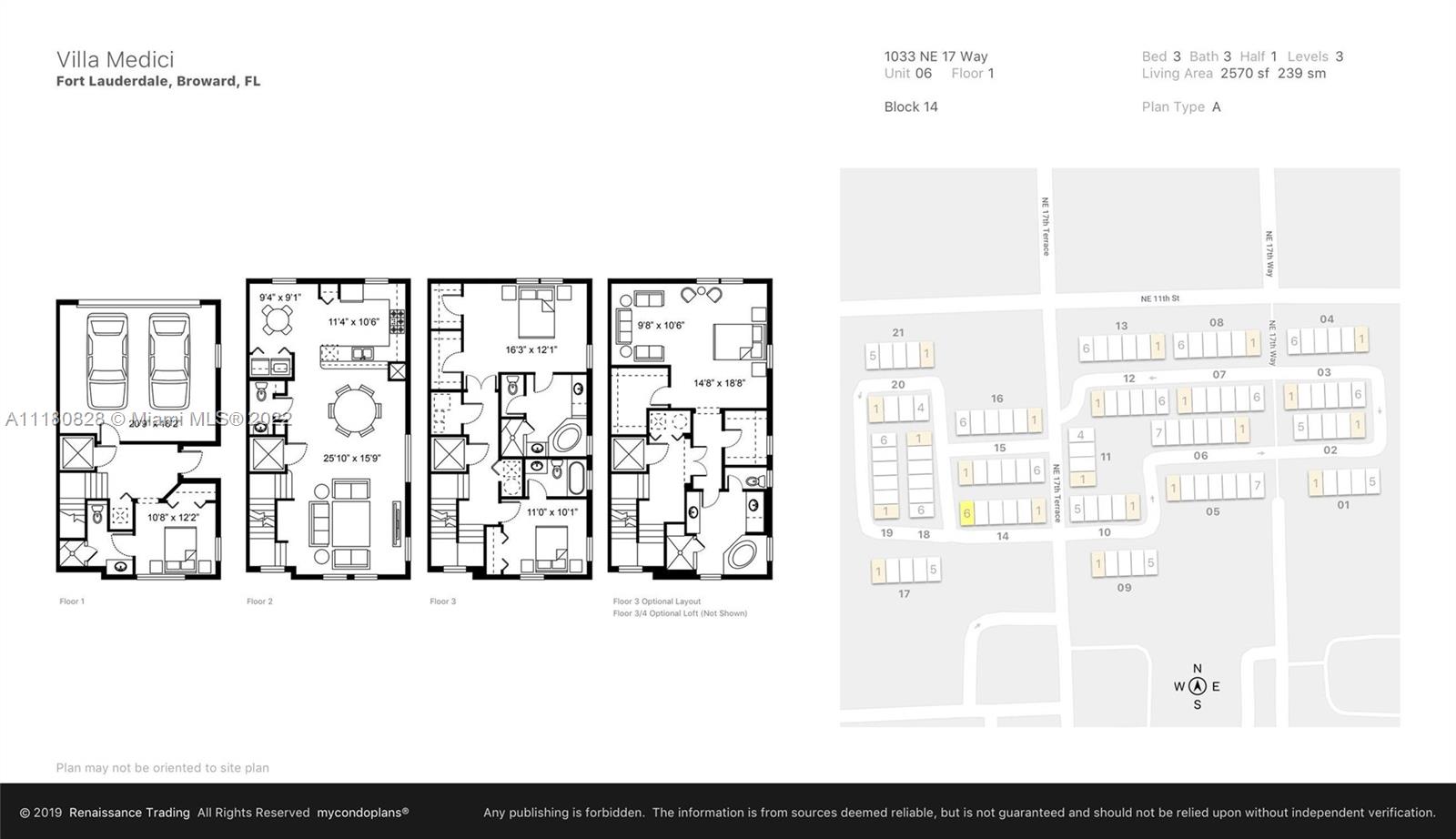 Lovely 3 Bed/3,5 Bath Townhome with amazing natural light. The largest model in Villa Medici (2570 sq. ft.) Move-In Ready. Spectacular Sunset/Sunrise views from 2 spacious Terrasses on the 4th floor. The spacious eat-in kitchen features high-end appliances, a granite countertop, and, has an Open View of the Family room/Dining area. 2 New A/C units (3/2022), Impact windows, 2 car garage is attached. Well-maintained gated community with pool. Very convenient location in a Center of Ft. Lauderdale, 5 min to the Galleria Mall, Beach, easy access to FLL Airport/Sea Port.